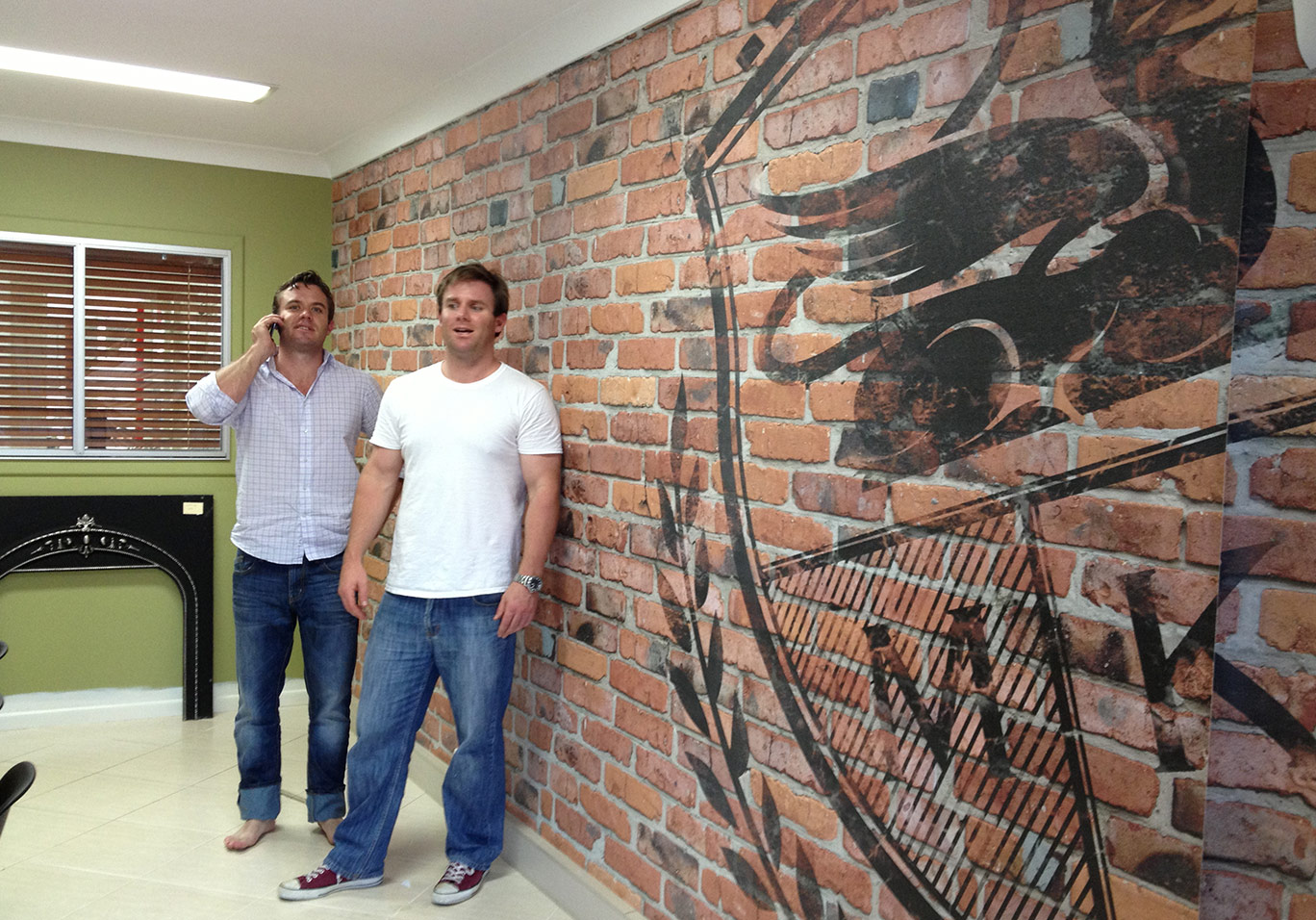 The production aspect of the business saw an upgrade, too – they purchased an automatic Fotoba trimmer, which would trim the wallpaper very accurately down the sides, creating butt joins. Gone were the days of double-cut installs for their wallpaper, it was a simple as paste, place, go! Together, Hunter and the boys constructed a massive 40 foot table, on which they hand rolled each wallpaper roll and packaged them (professionally, with a logo on the box and everything!) before dropping them off at the local depot for delivery.