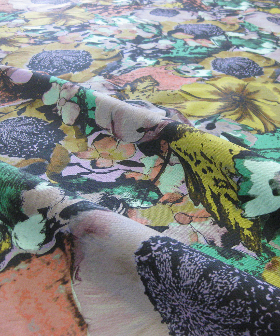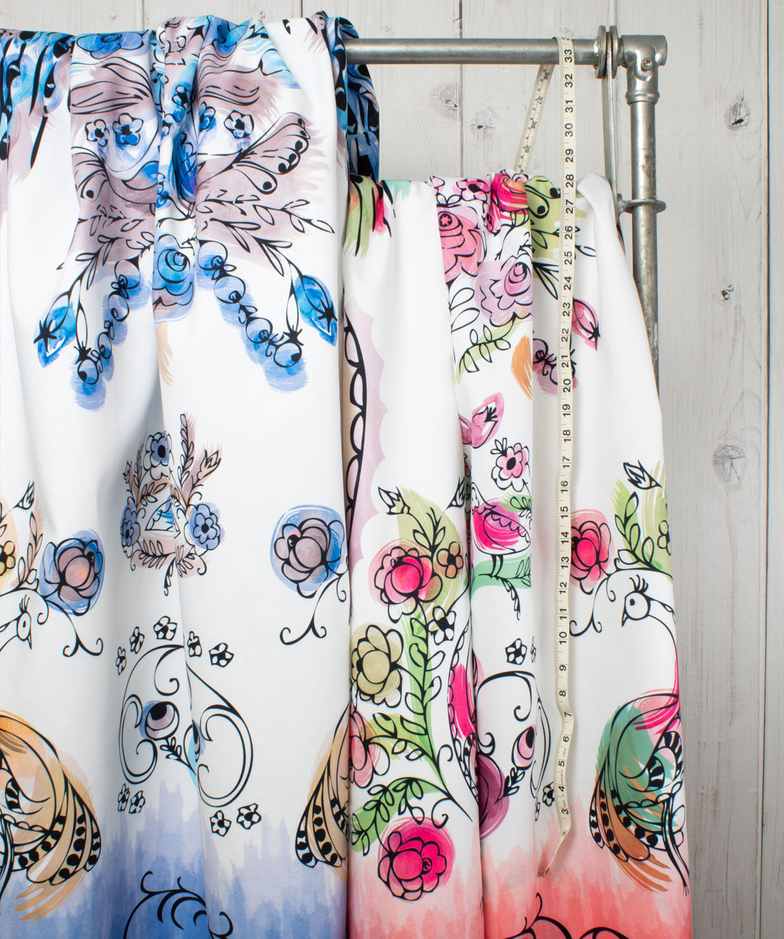 Erges is very light-wight and translucent. It has an elegant texture and is perfect for sheer applications. This fabric has a beautiful natural cotton feel and when it’s printed on, can create an elegant soft drape. Another interesting aspect of this sheer fabric is that placing the print on top of various colors can completely change the color tone of the print. It’s quite fascinating!