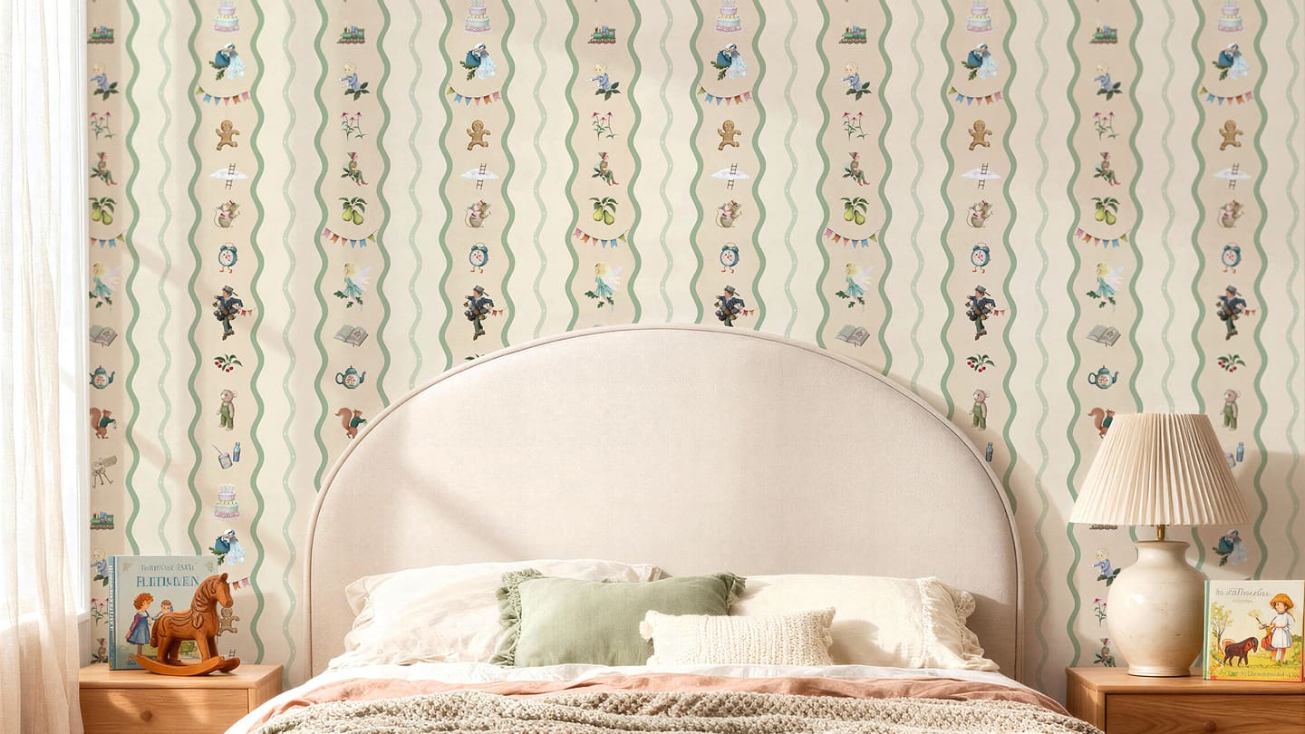Bringing these iconic tales to life, each design is filled with whimsical characters, charming details and enchanted landscapes, illustrated in Fleur Harris’s signature storybook style. From richly detailed hero prints to charming conversational patterns and playful coordinating designs, the collection invites curiosity, wonder and imagination into every space.