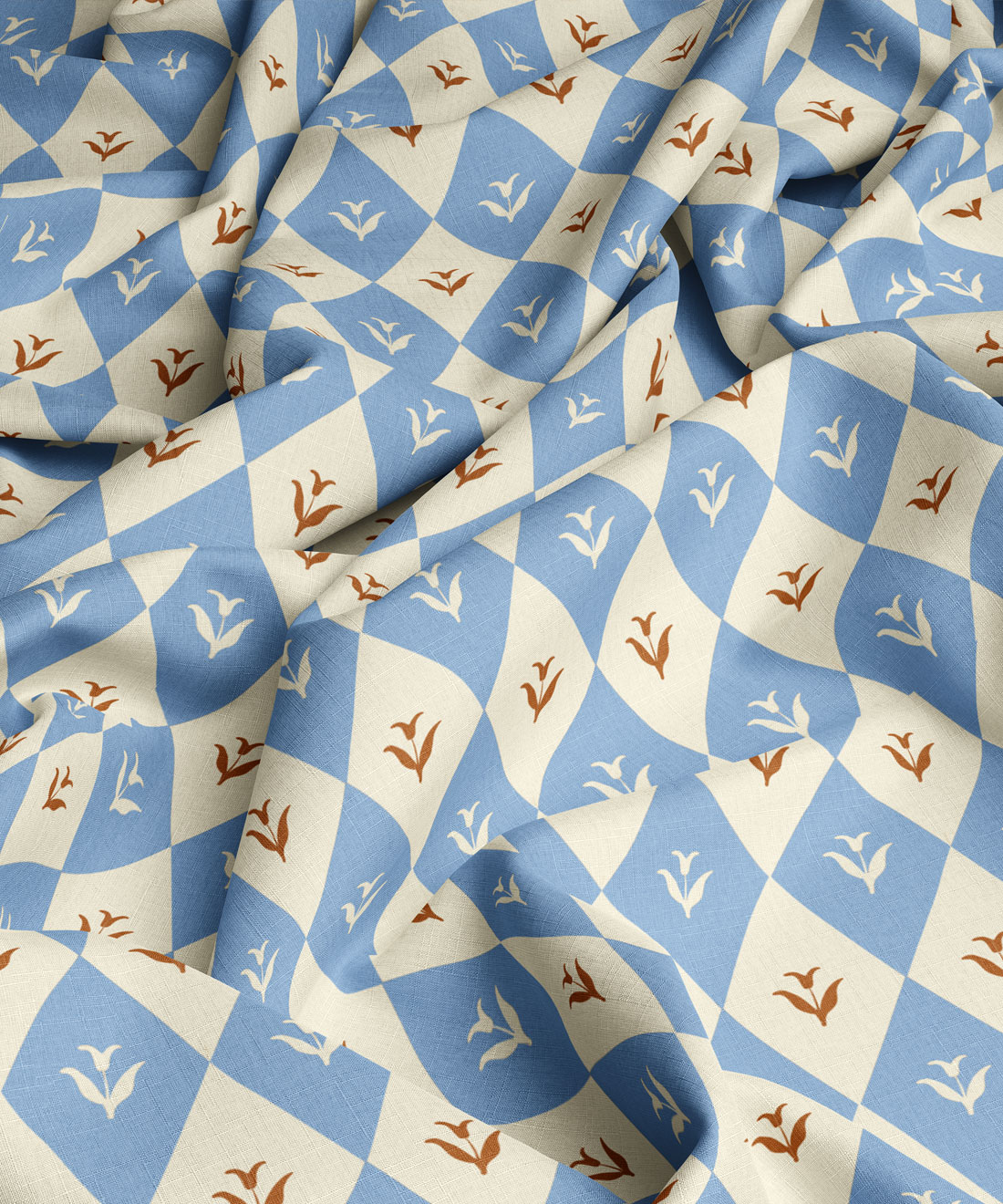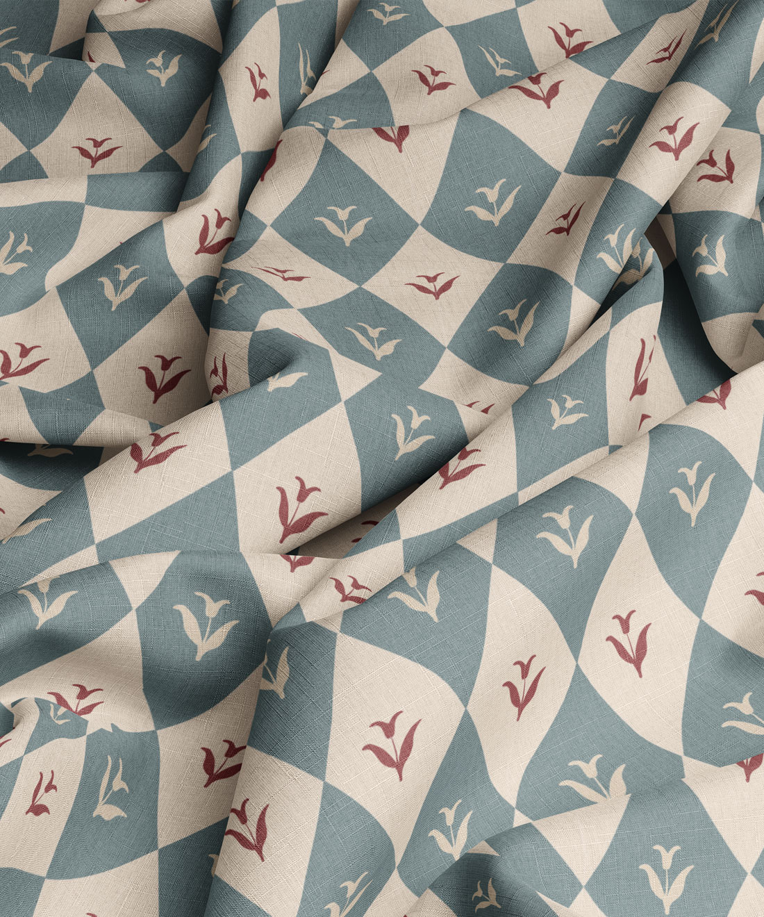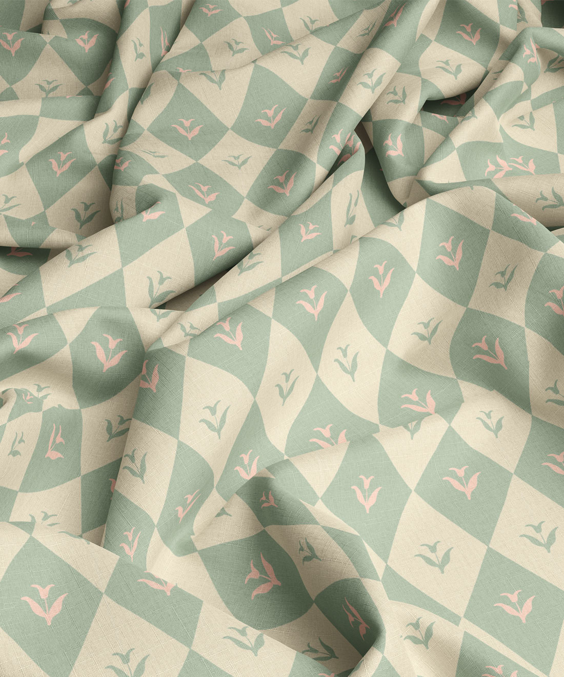 A love letter to pattern-on-pattern enthusiasts, Argyle Bloom mixes diamond grids with painterly florals for a look that’s nostalgic, playful, and just a little eccentric. The design brings texture to life, with every petal and check blending softness and geometry in equal measure. Perfect for cushions or curtains that need a touch of personality — she’s the fabric equivalent of your favorite eccentric aunt who always smells faintly of peonies and perfume.