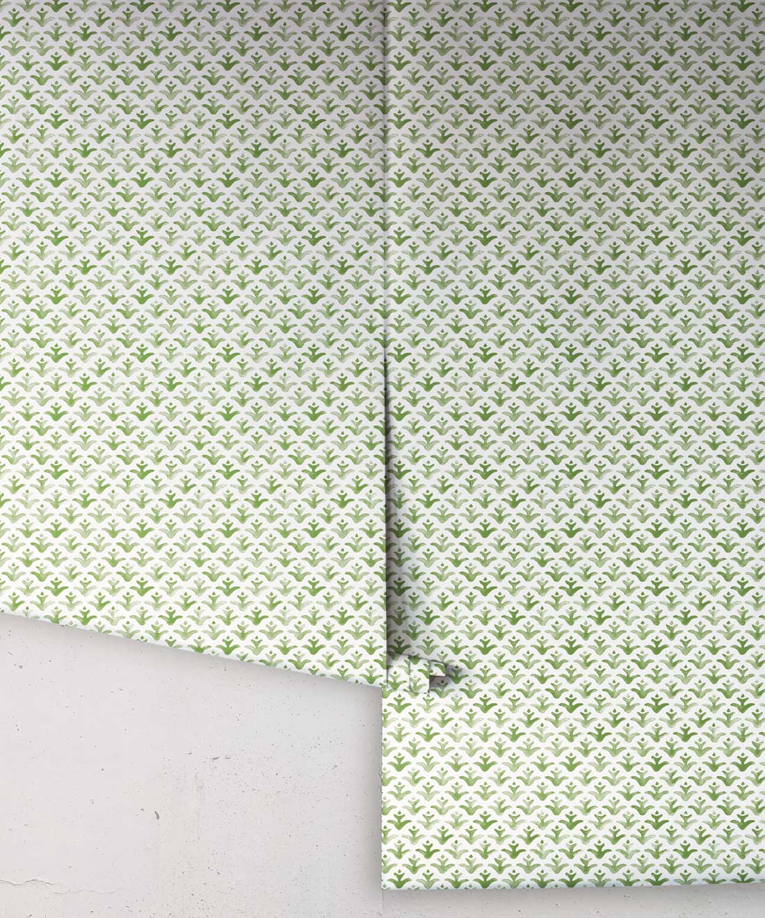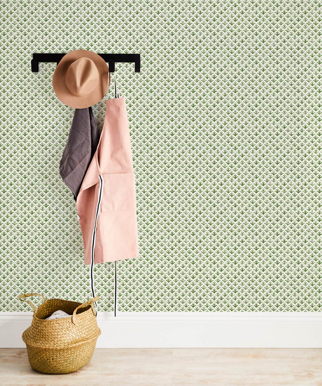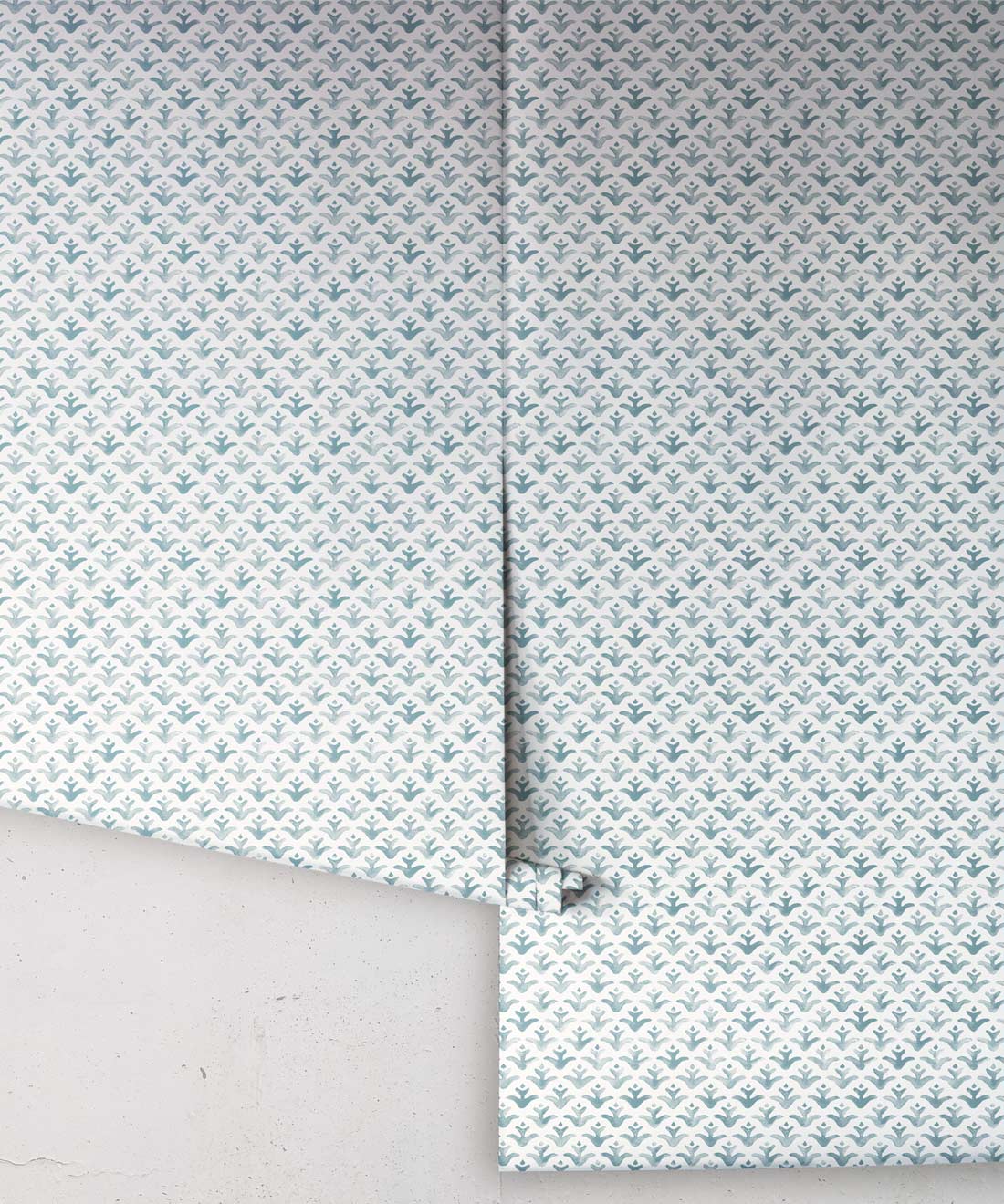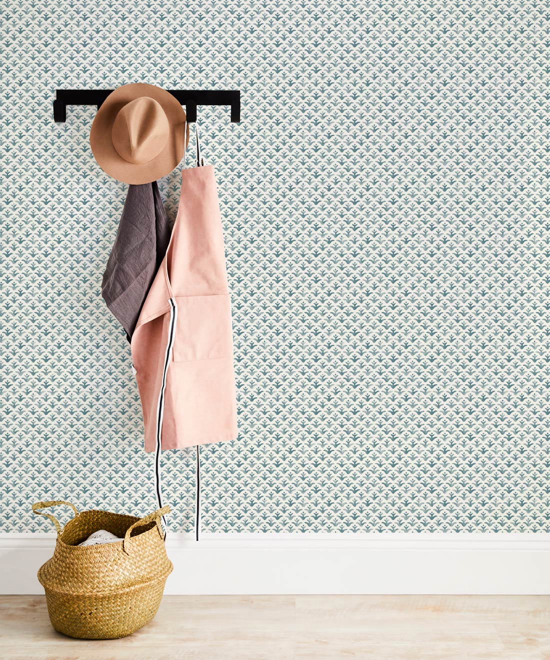 Astor Wallpaper is a delicate contemporary motif hand-painted in watercolors to give it a lovely mottled effect. Inspiration came from classic Indian woodblock designs. Perfect in a contemporary or traditional setting, it looks great in bedrooms, hallways and powder rooms. It is available in 3 colorways.
