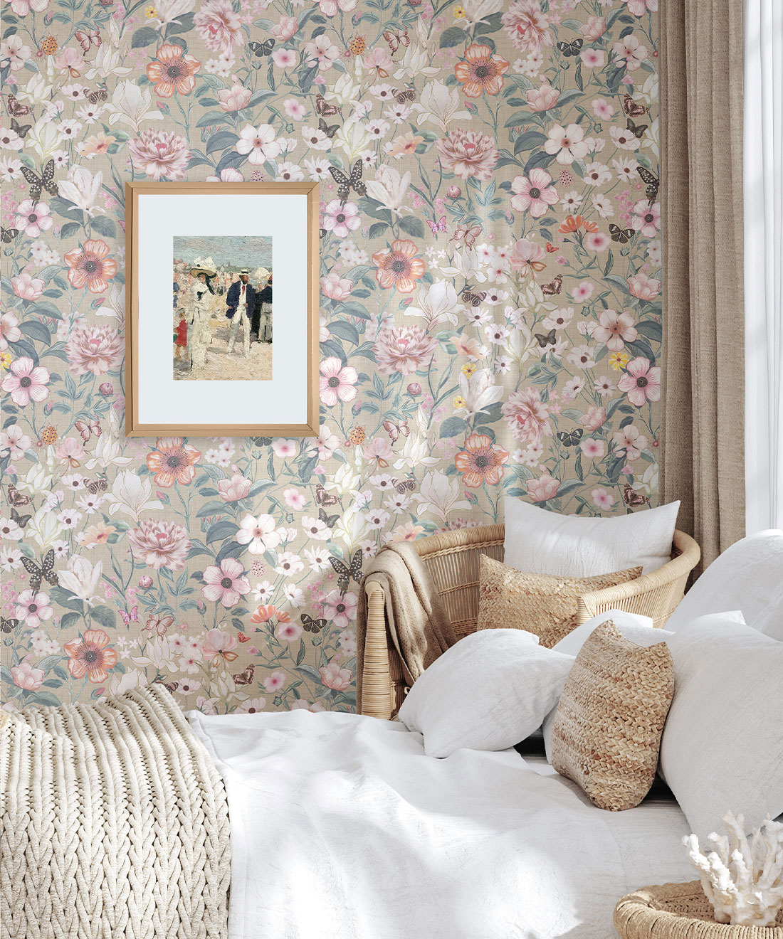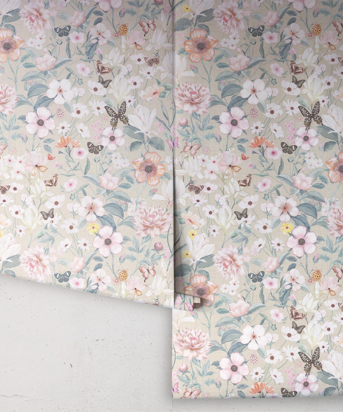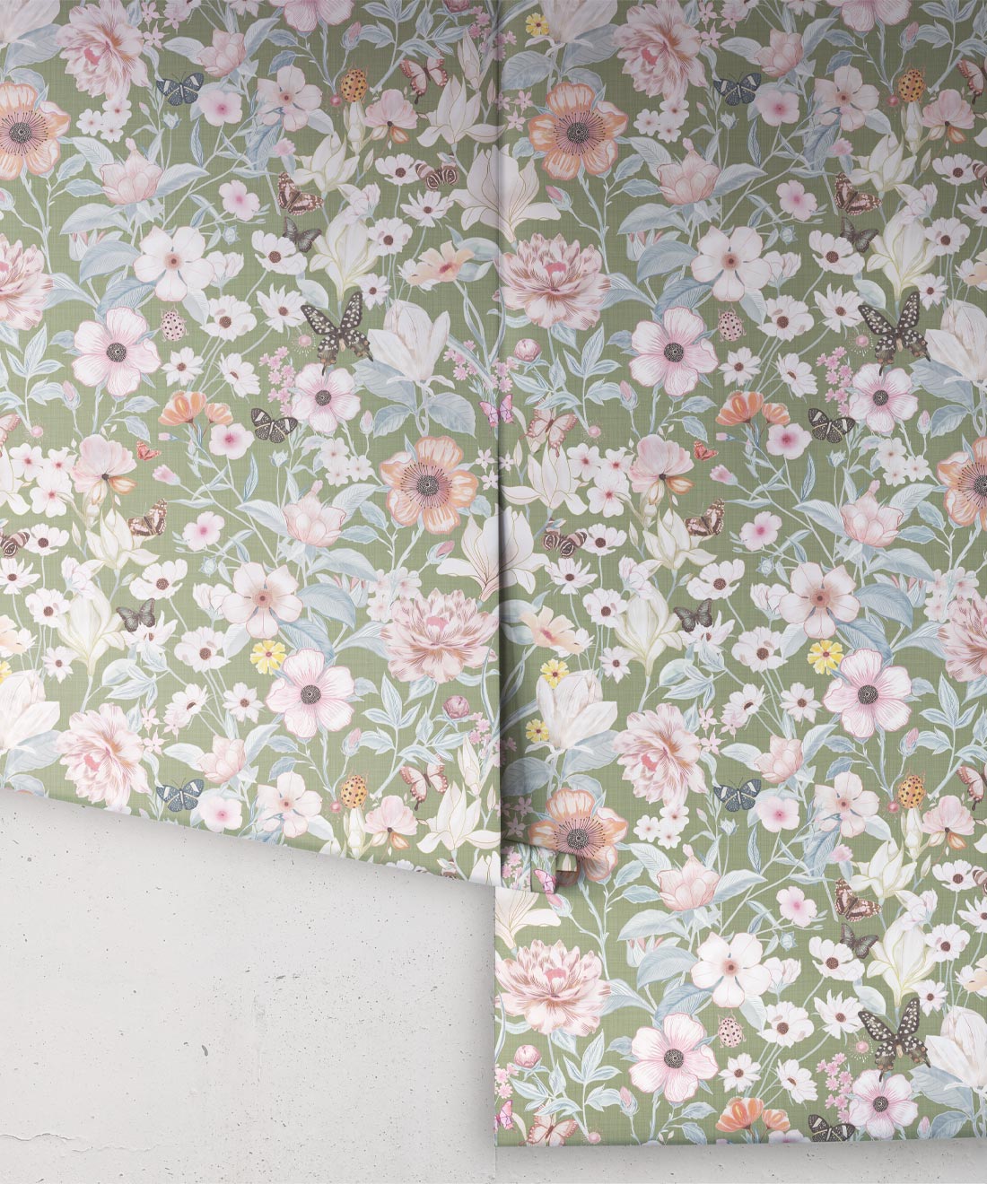 The Barney Vintage wallpaper emerged gracefully as a poignant ode to designer Allison Andrea-Maestas’ Irish-Australian Grandfather, ‘Barney’ Sheedy. The companion piece to Barney Fields and Barney Joy, these designs capture Barney’s lifelong devotion to cultivating the earth, gardening for beauty and sustenance and a deep affinity for all things botanical.