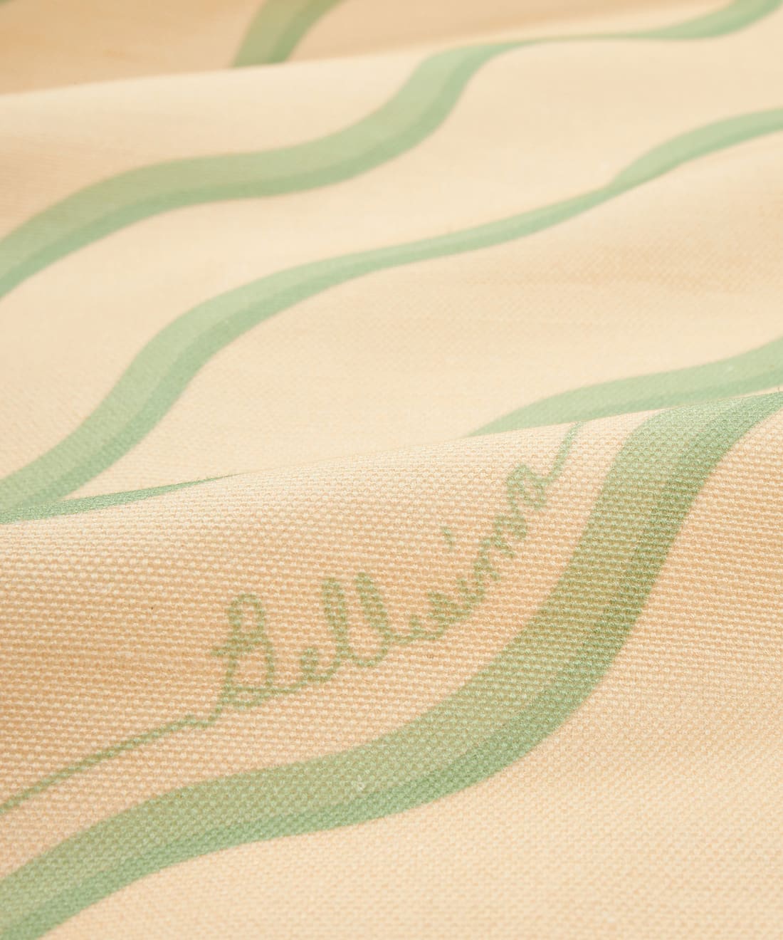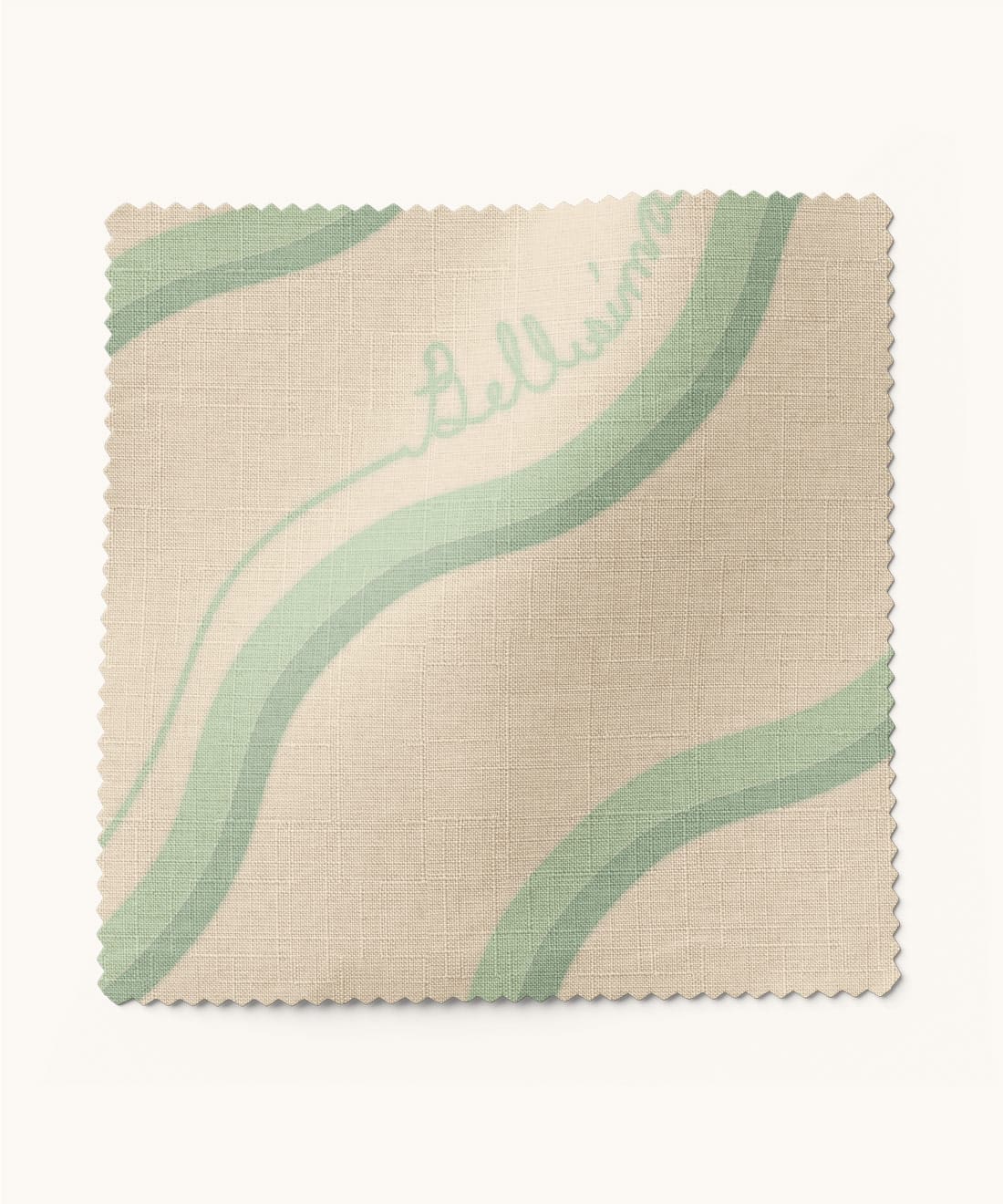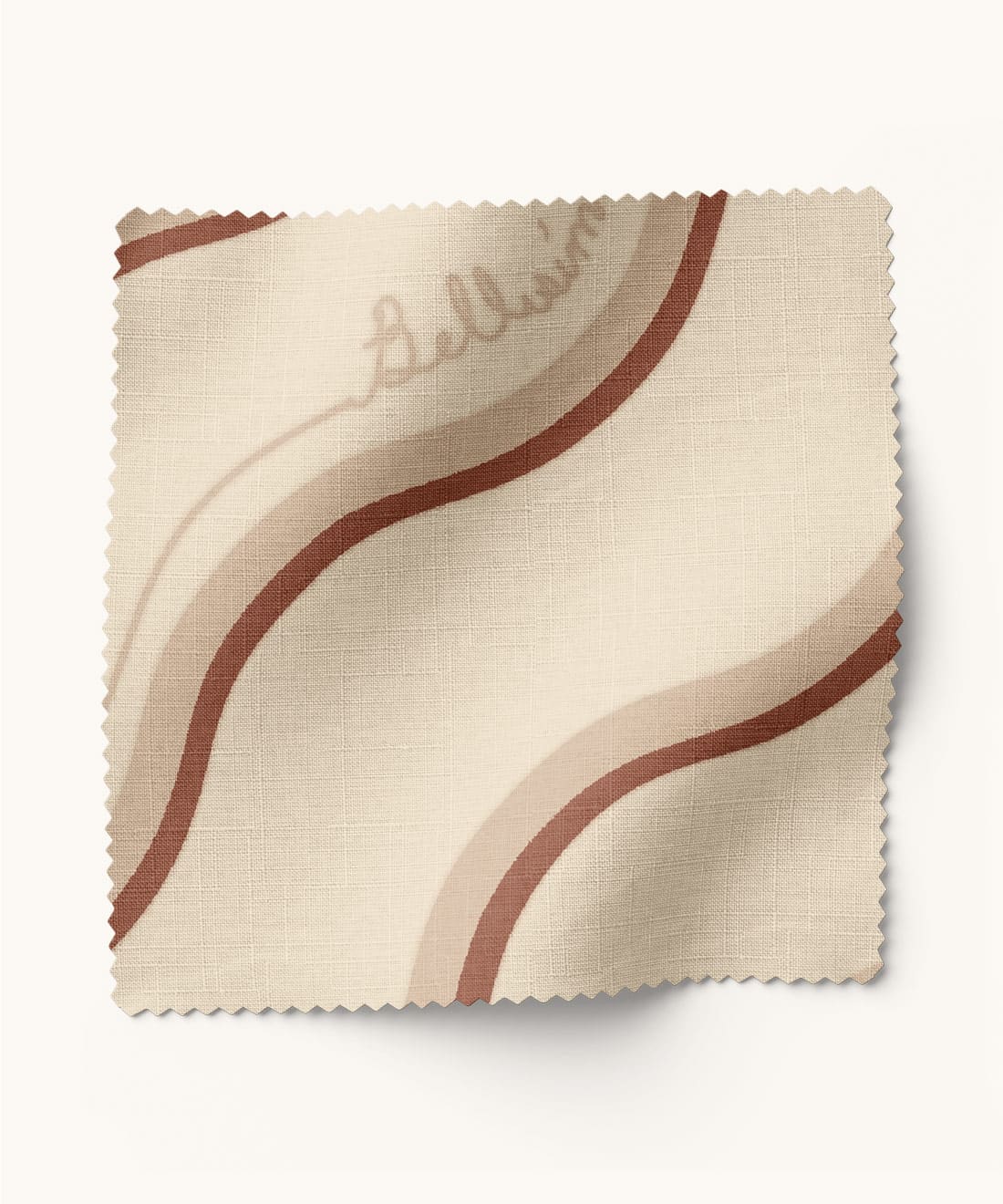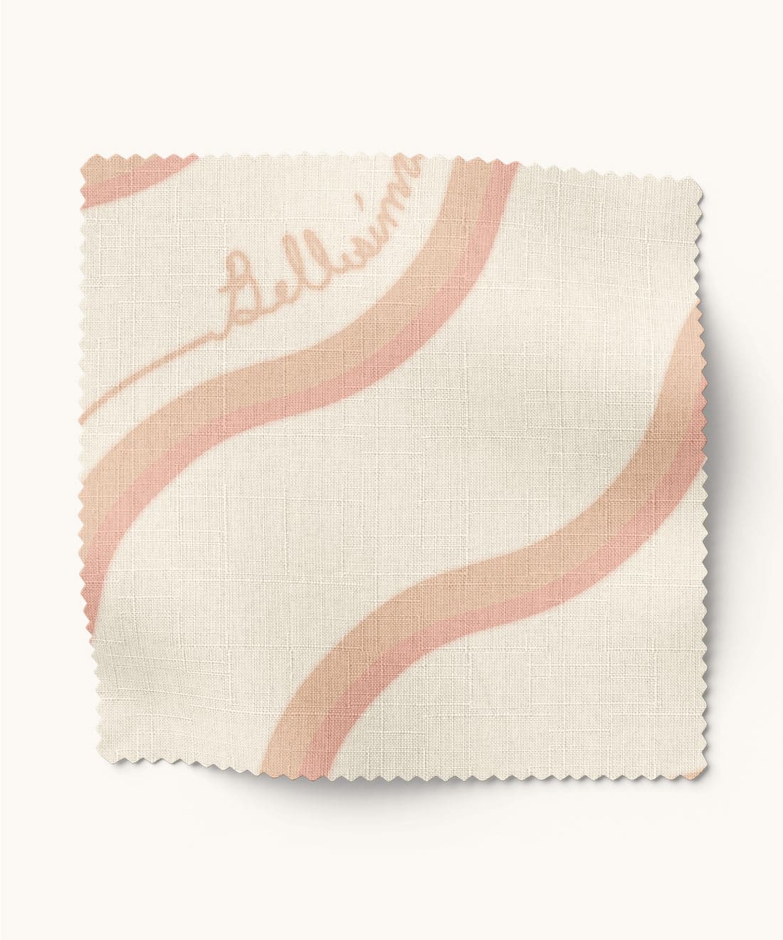 Graceful curves meet playful nostalgia in Bellisima, inspired by the iconic Murano mushroom lamp. Soft shadows and pearly contours glide across the fabric with quiet glamour and a hint of whimsy. Hidden within the design is a hand-scrawled Bellisima by Whinnie’s dad, a personal flourish that makes this fabric feel truly special.
