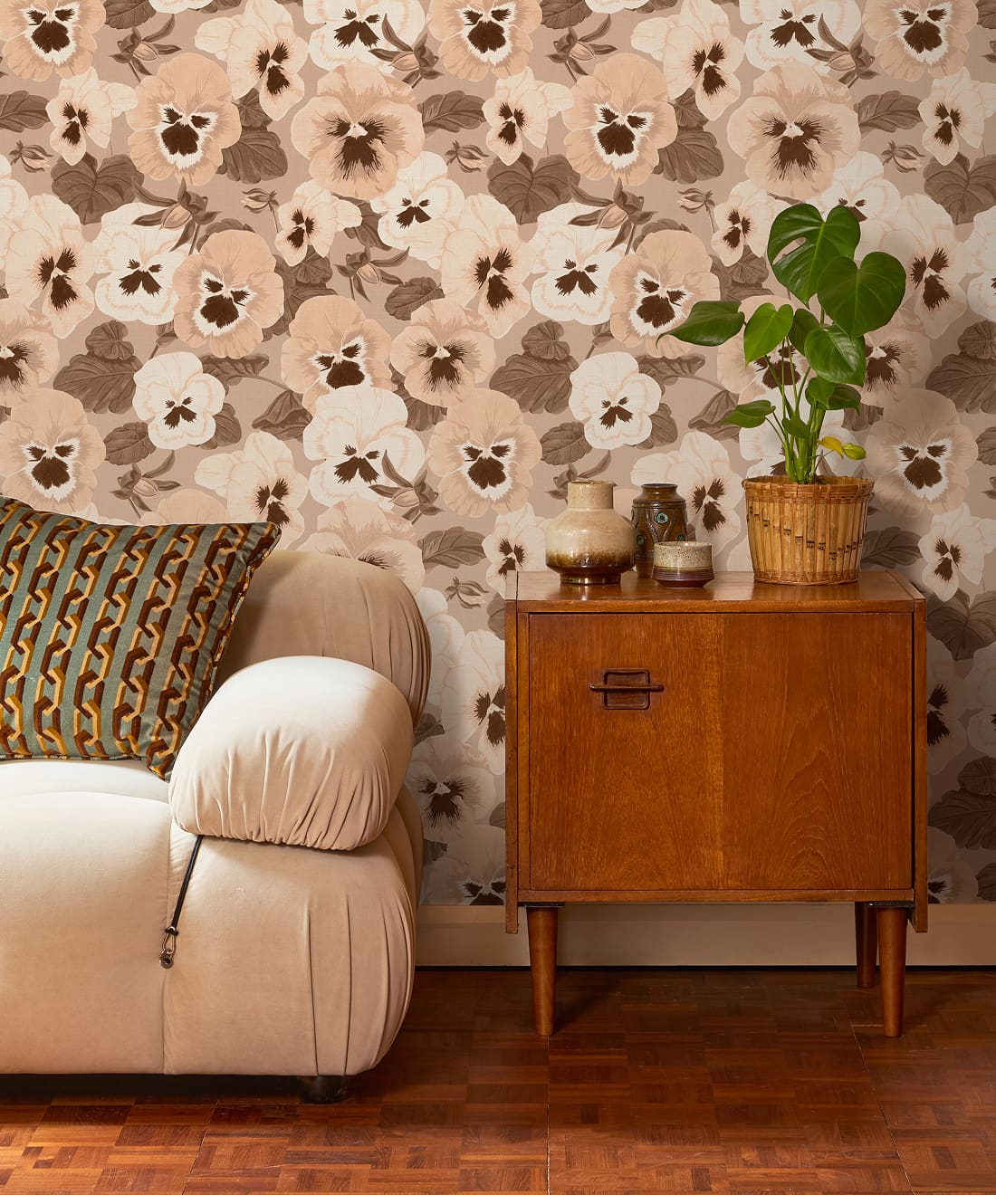 Big Pansy is bold expressive and unapologetic. Oversized hand-painted petals burst with colour and confidence, making this fabric ideal for statement upholstery cushions or interiors that believe florals should never whisper.