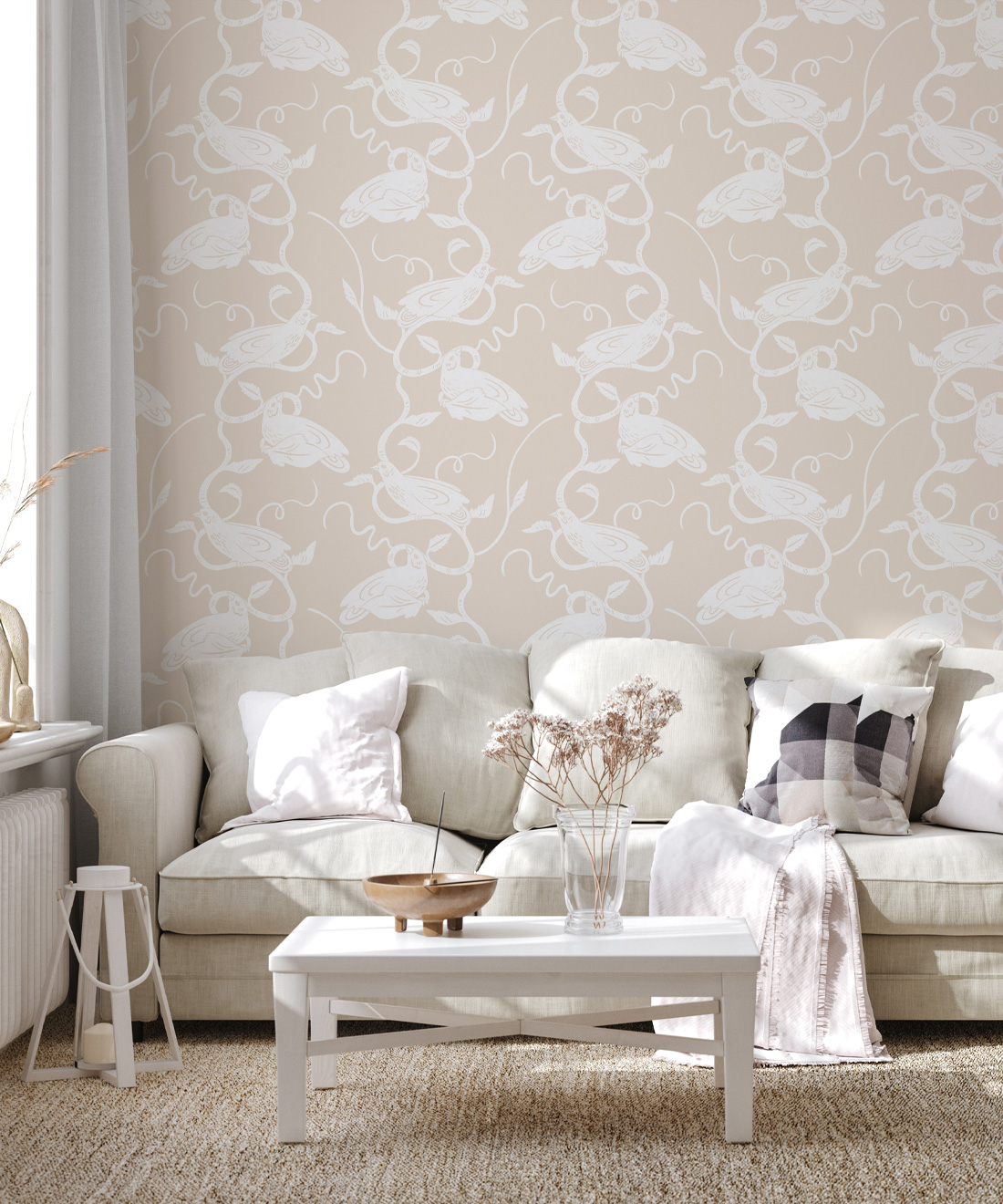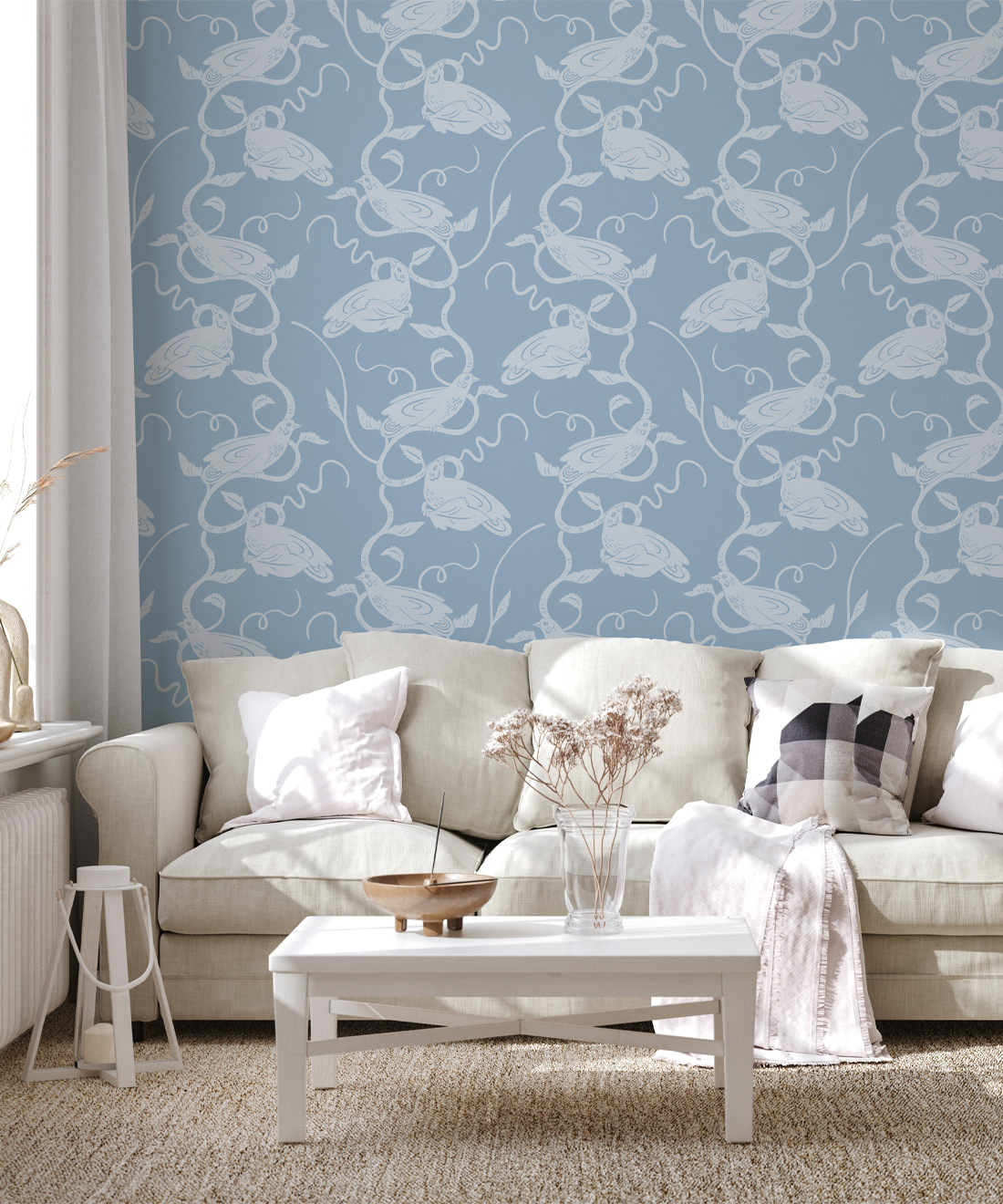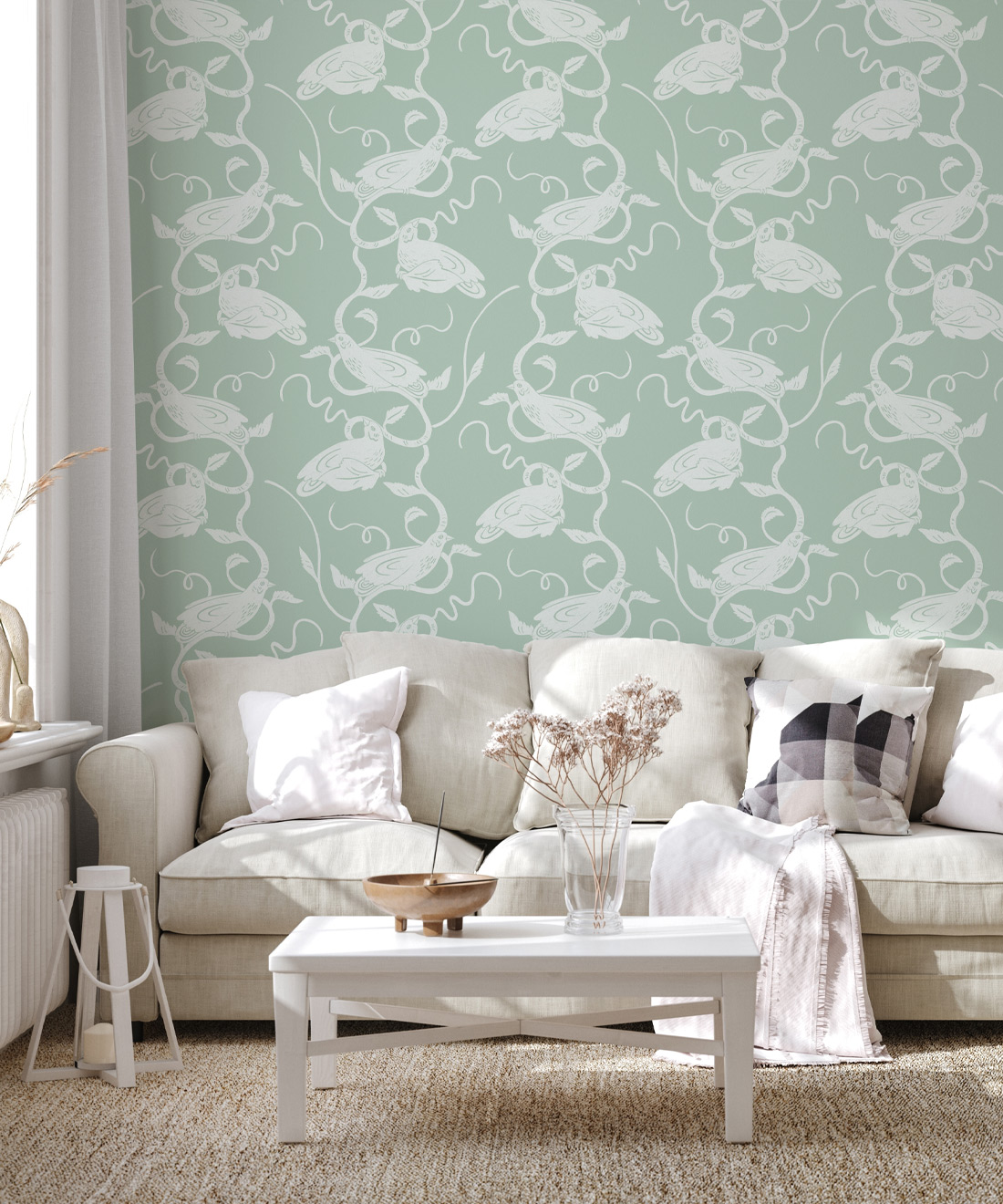 The Birds on Vines wallpaper from Wallpaper Republic features a delightful collection of birds nestling on intertwining vines. Artist Allira Tee has created this harmonious and soothing design in a range of muted and calming colors. Elegant in its simplicity, this design will blend seamlessly into a multitude of interiors and suit a variety of decor styles. Part of the Ethereal collection, this design draws inspiration from the simple beauty of the natural world.