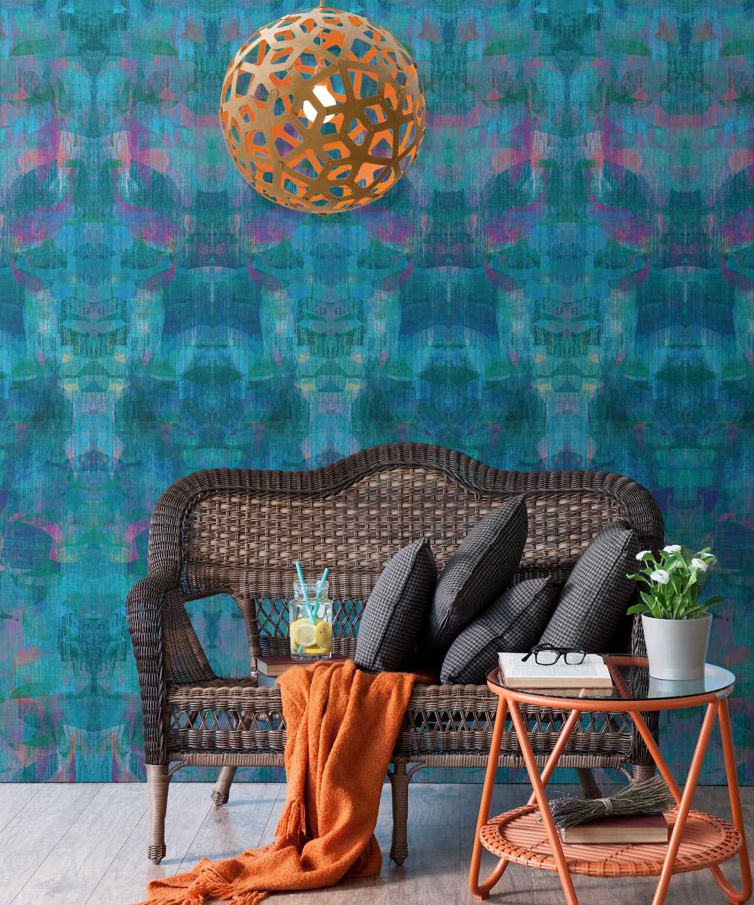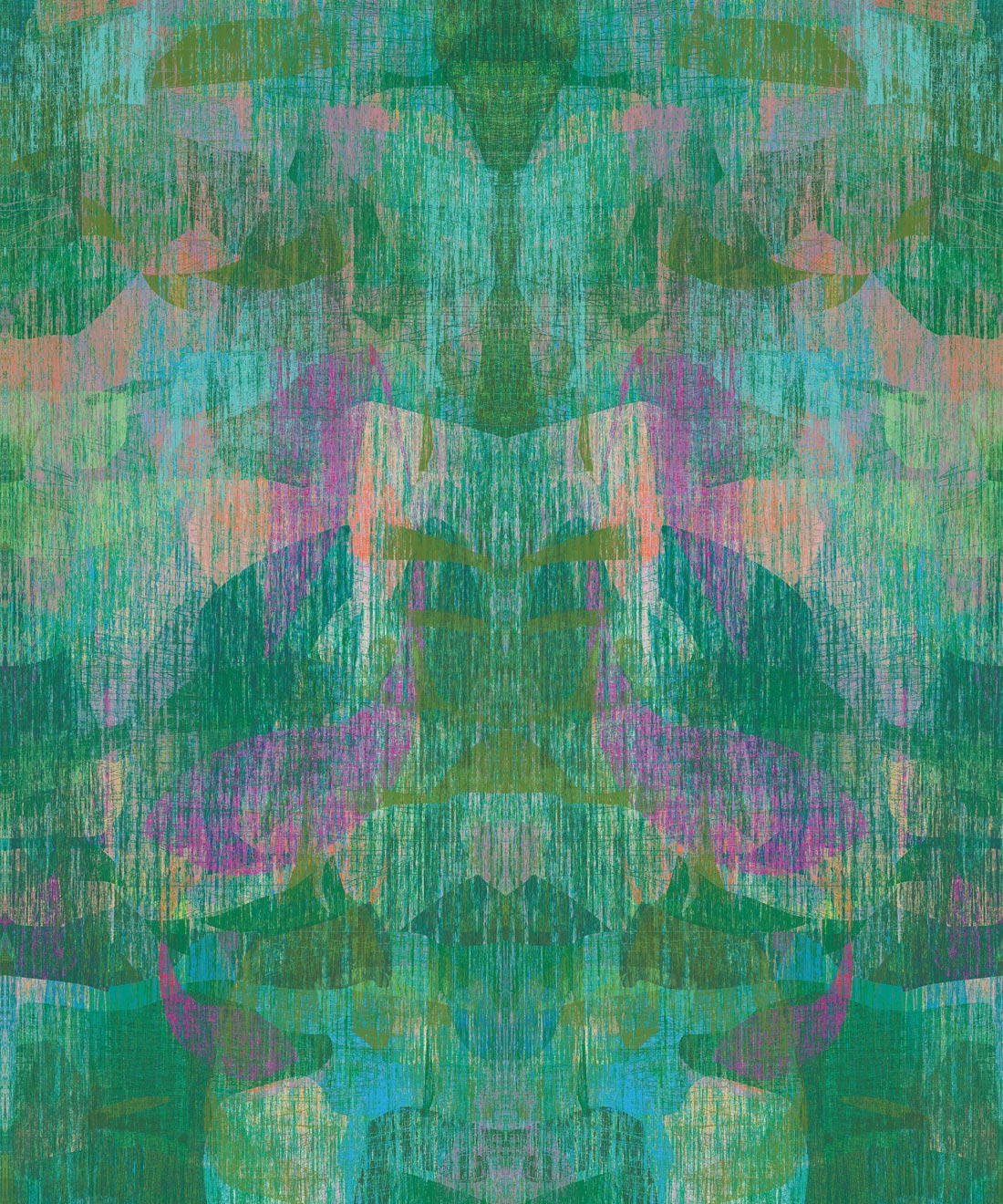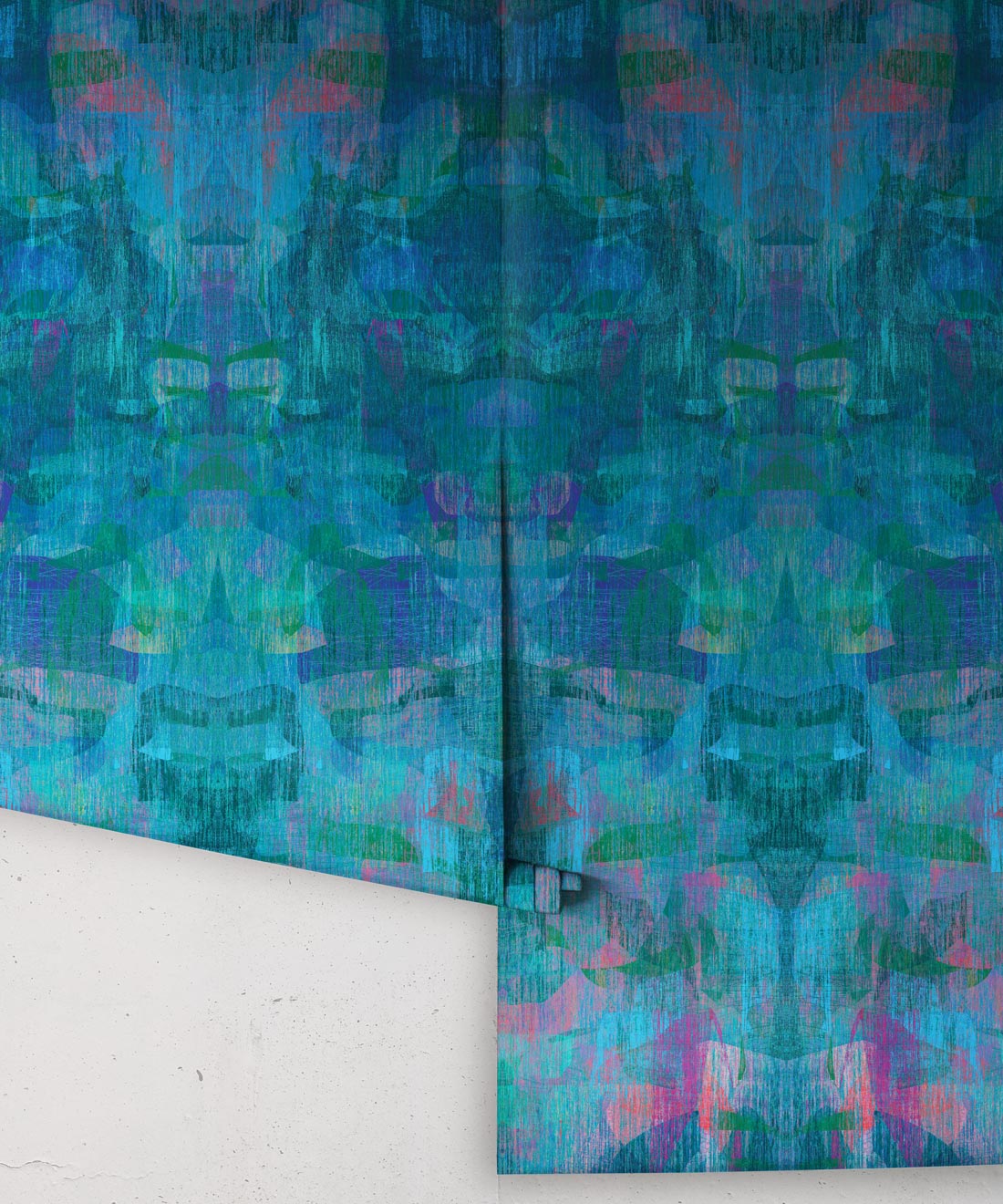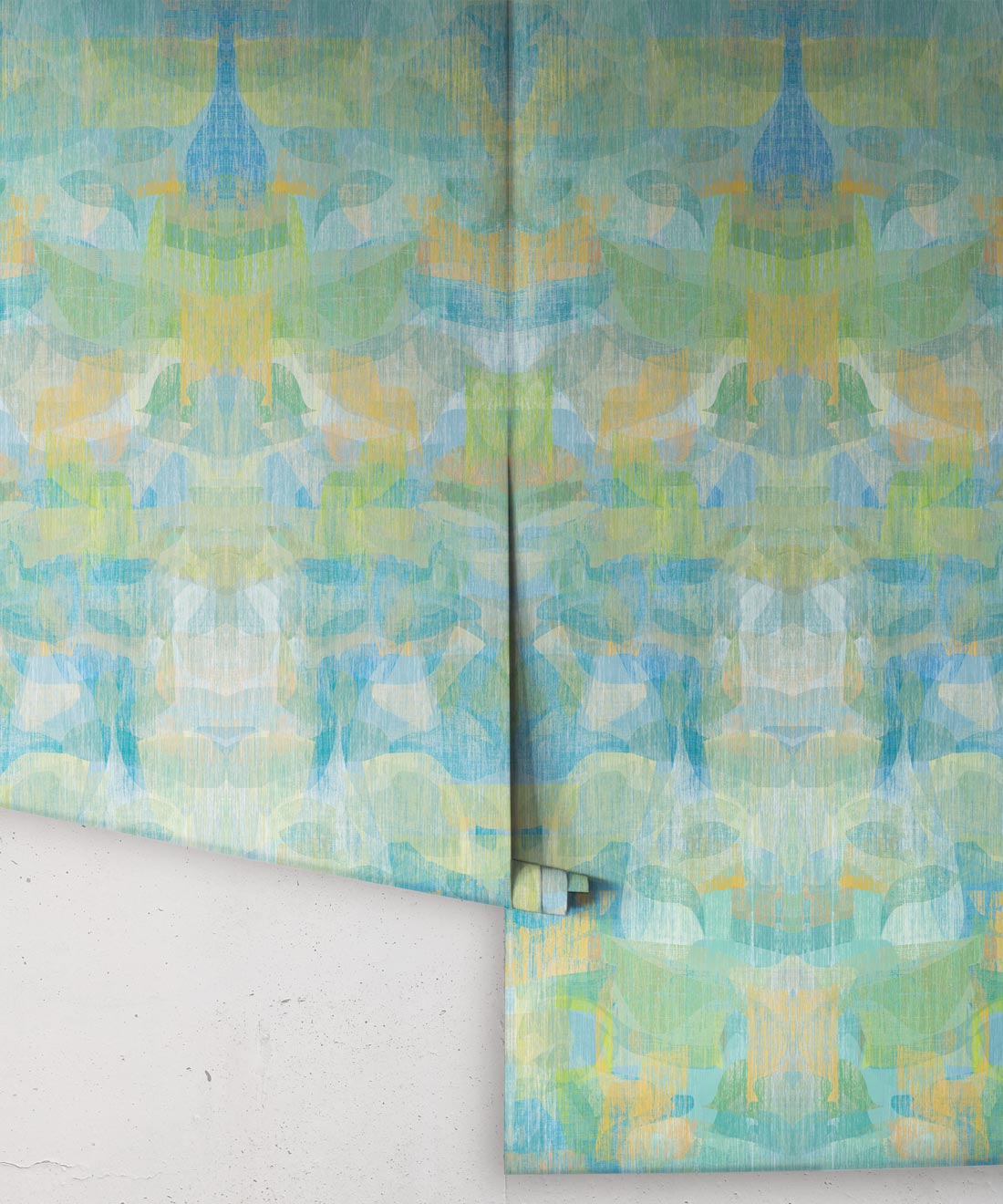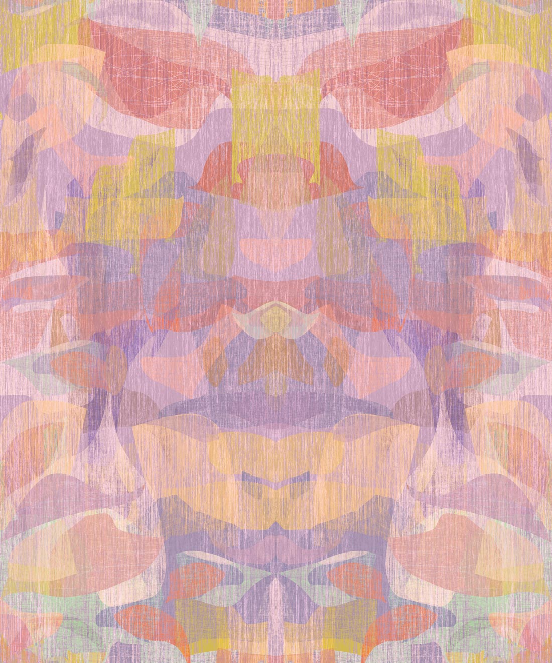 Camoufleur has a soft, abstract and almost iridescent quality that draws inspiration from plants and colors of the natural world. It is perfect for a colorful feature wall and adapts to a variety of styles. This energetic wallpaper vibrates with color and light with abstract shapes that allude to the dynamic energy of nature, with a cool twist of retro.