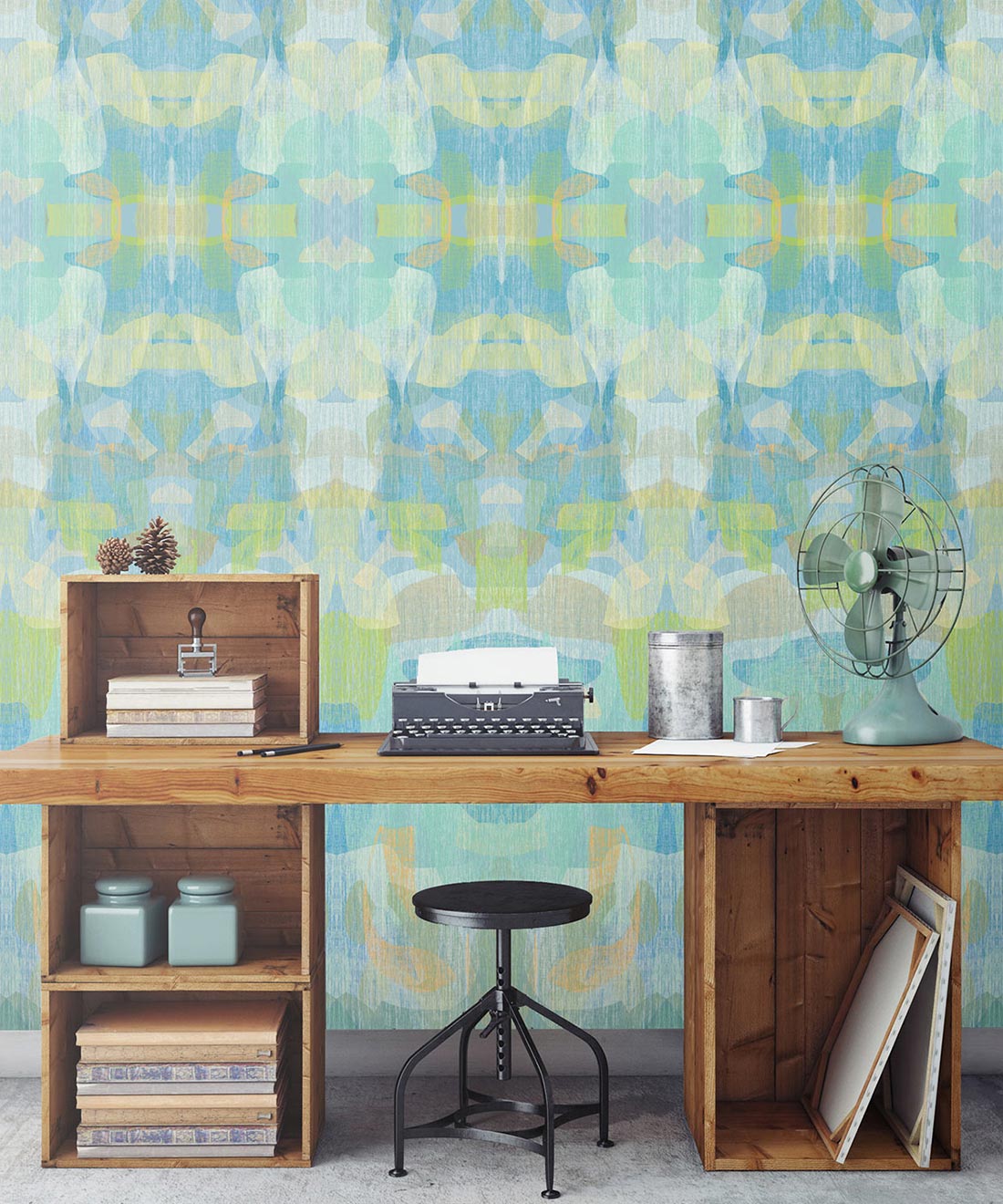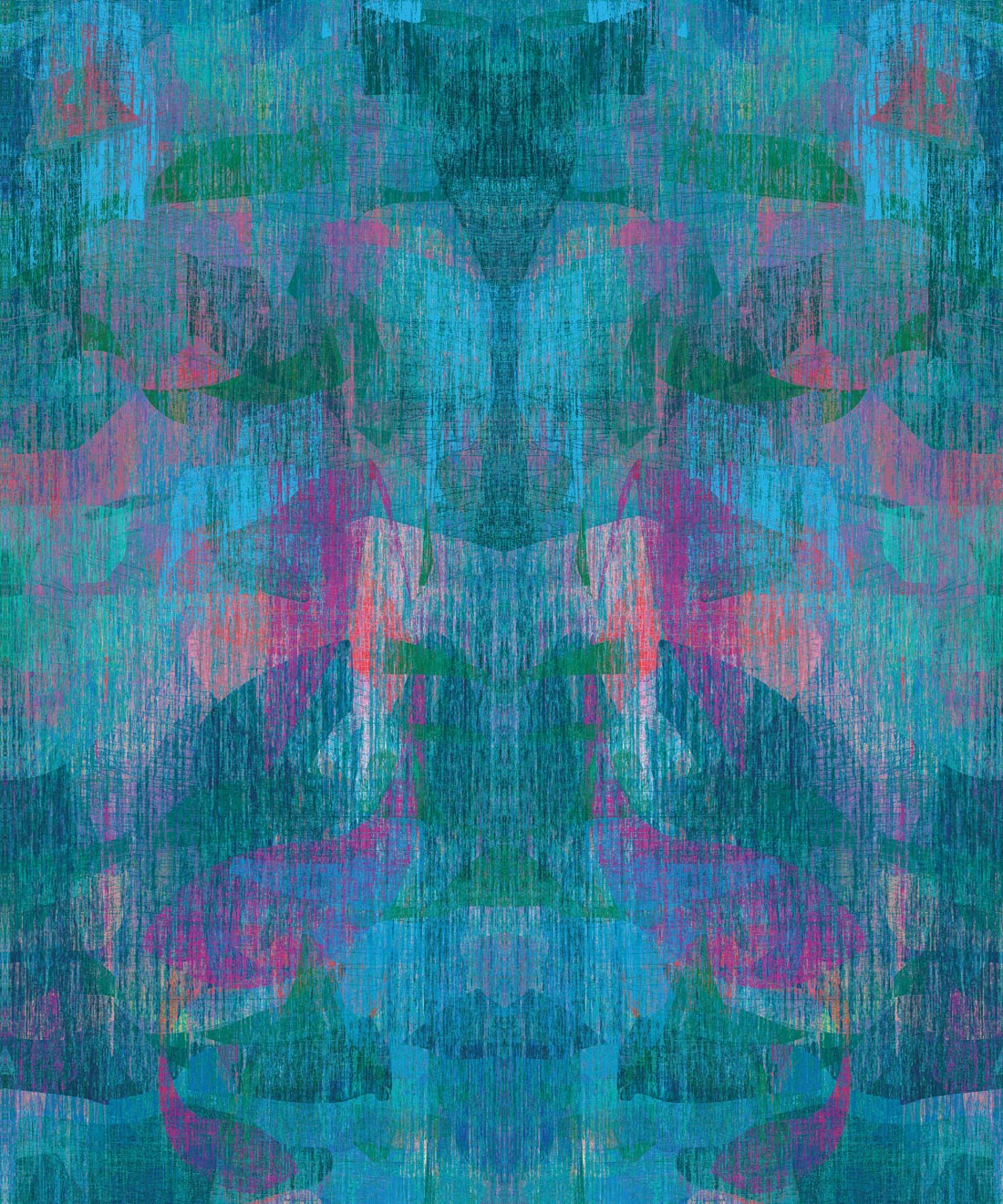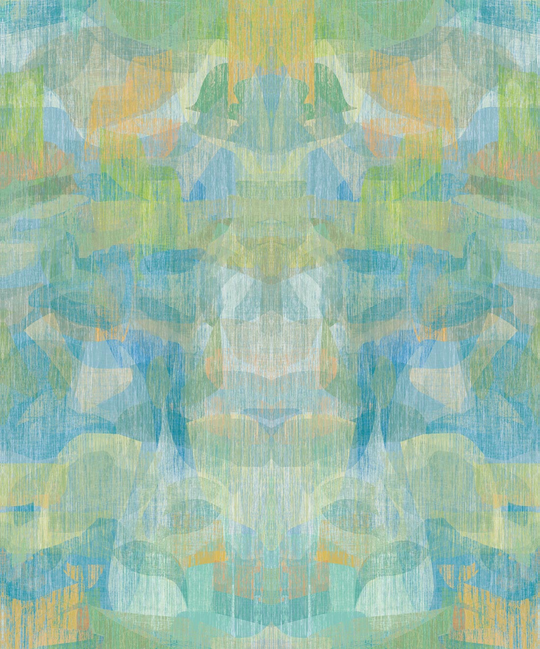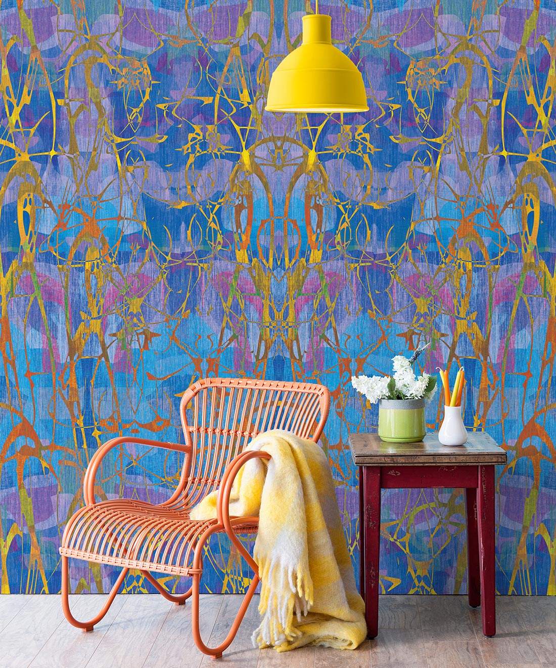 Camoufleur has a soft, abstract and almost iridescent quality that draws inspiration from plants and colors of the natural world. It is perfect for a colorful feature wall and adapts to a variety of styles. This energetic wallpaper vibrates with color and light with abstract shapes that allude to the dynamic energy of nature, with a cool twist of retro.