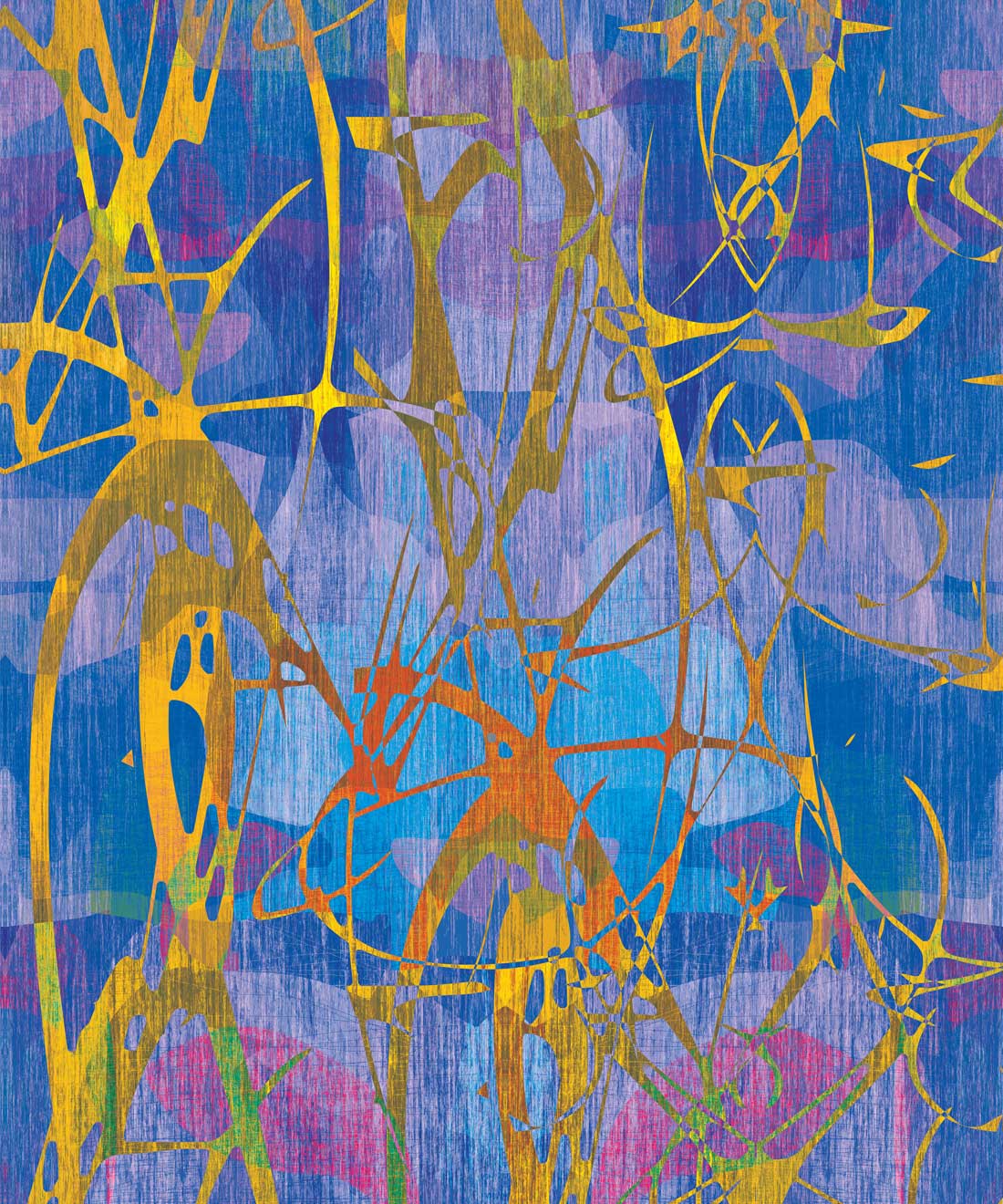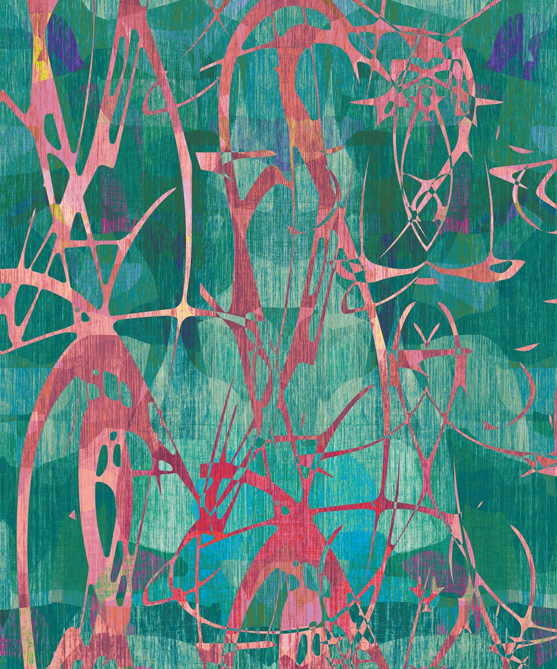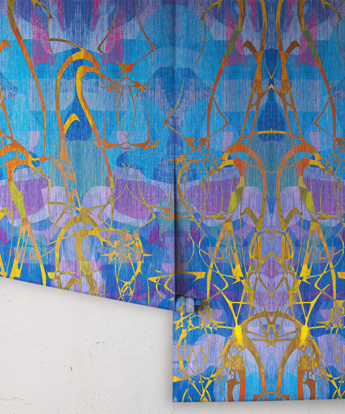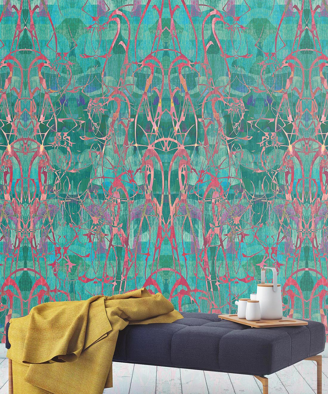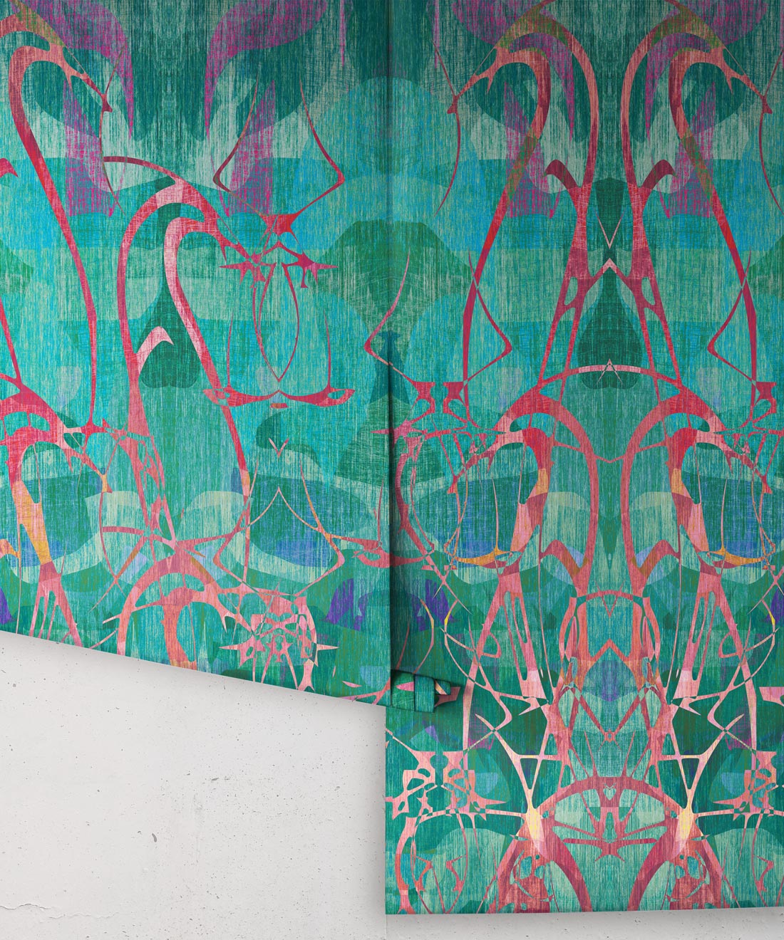 Camoufleur has a soft, abstract and almost iridescent quality that draws inspiration from plants and colors of the natural world. It is perfect for a colorful feature wall and adapts to a variety of styles. This energetic wallpaper vibrates with color and light with abstract shapes that allude to the dynamic energy of nature, with a cool twist of retro.