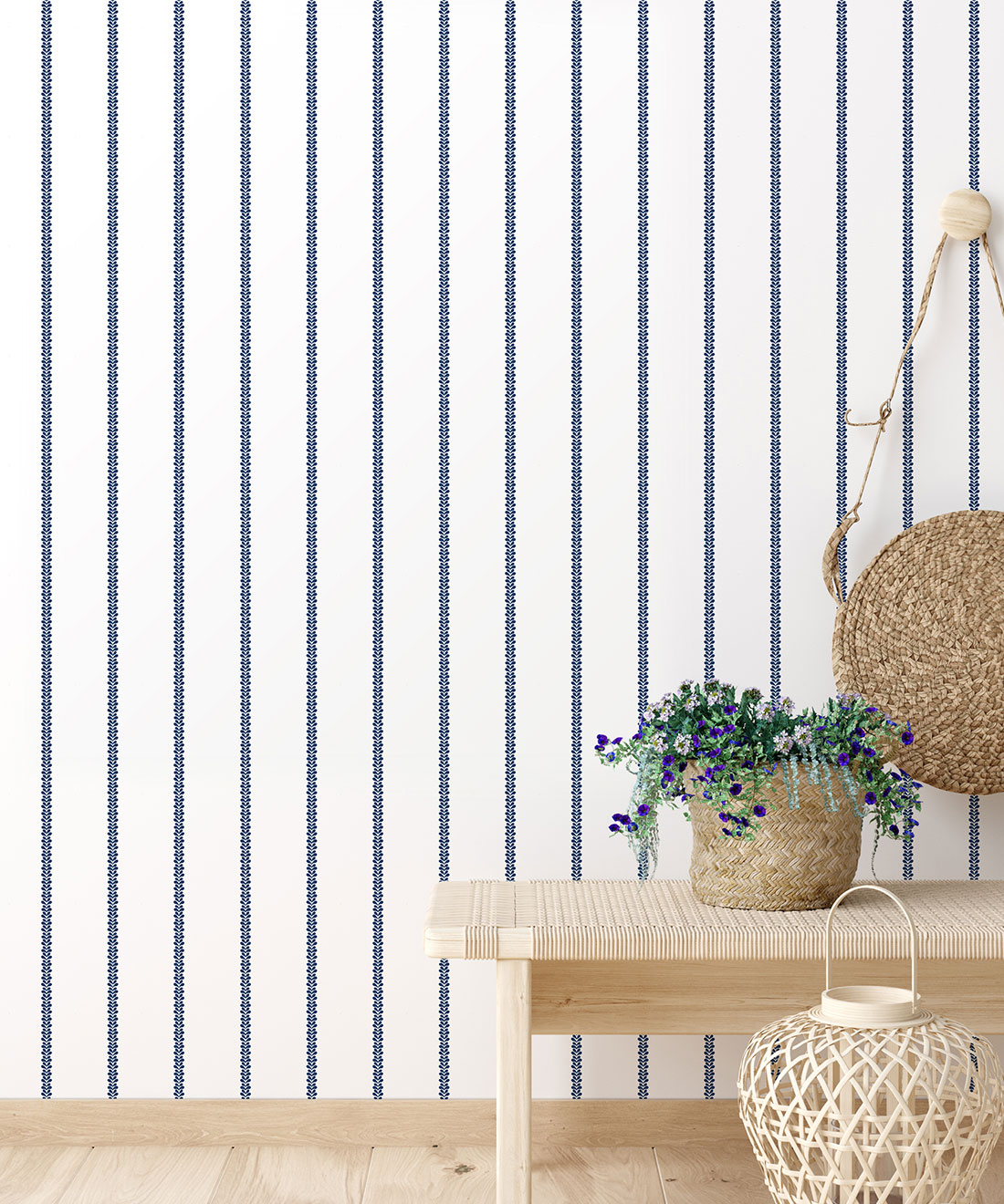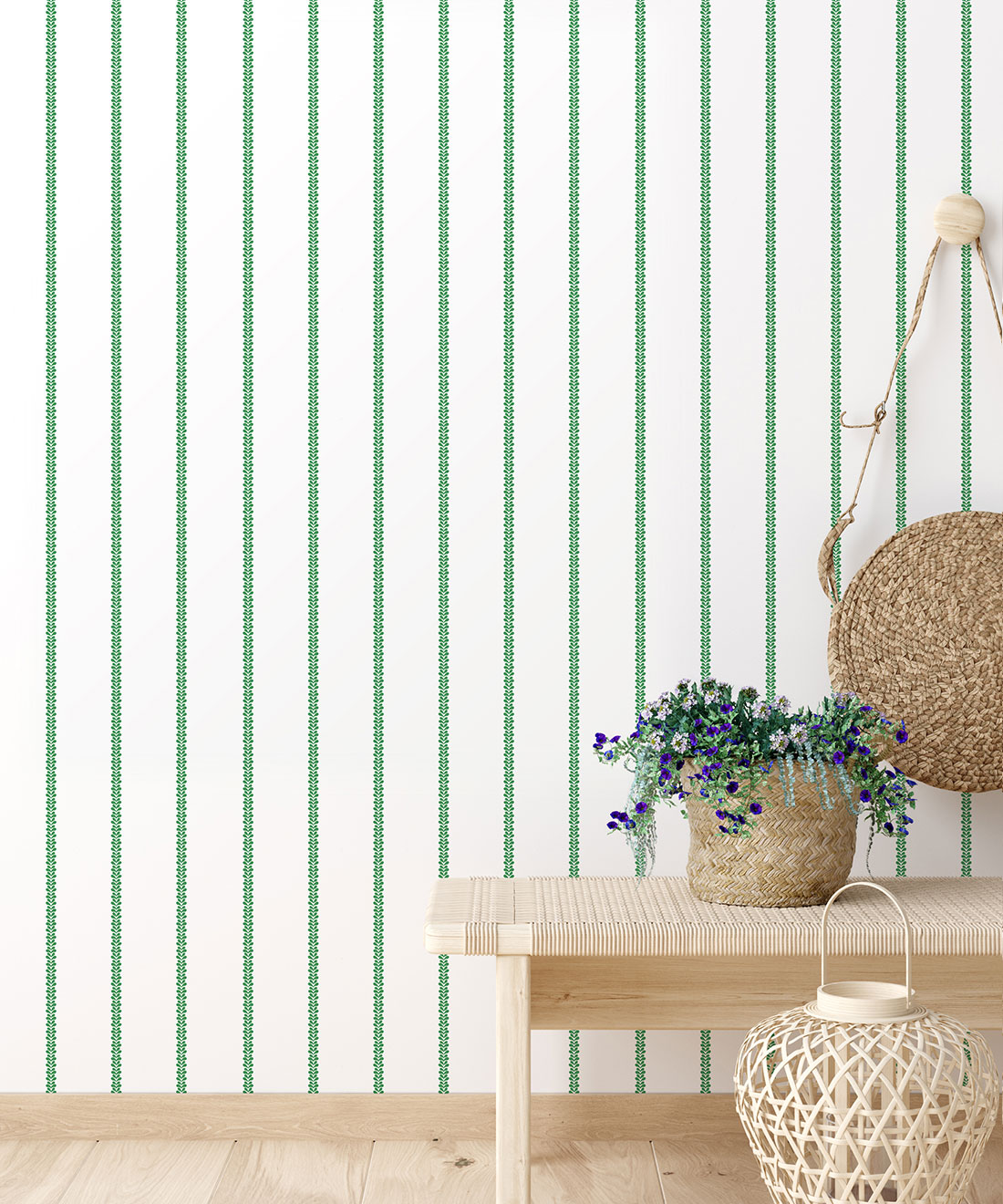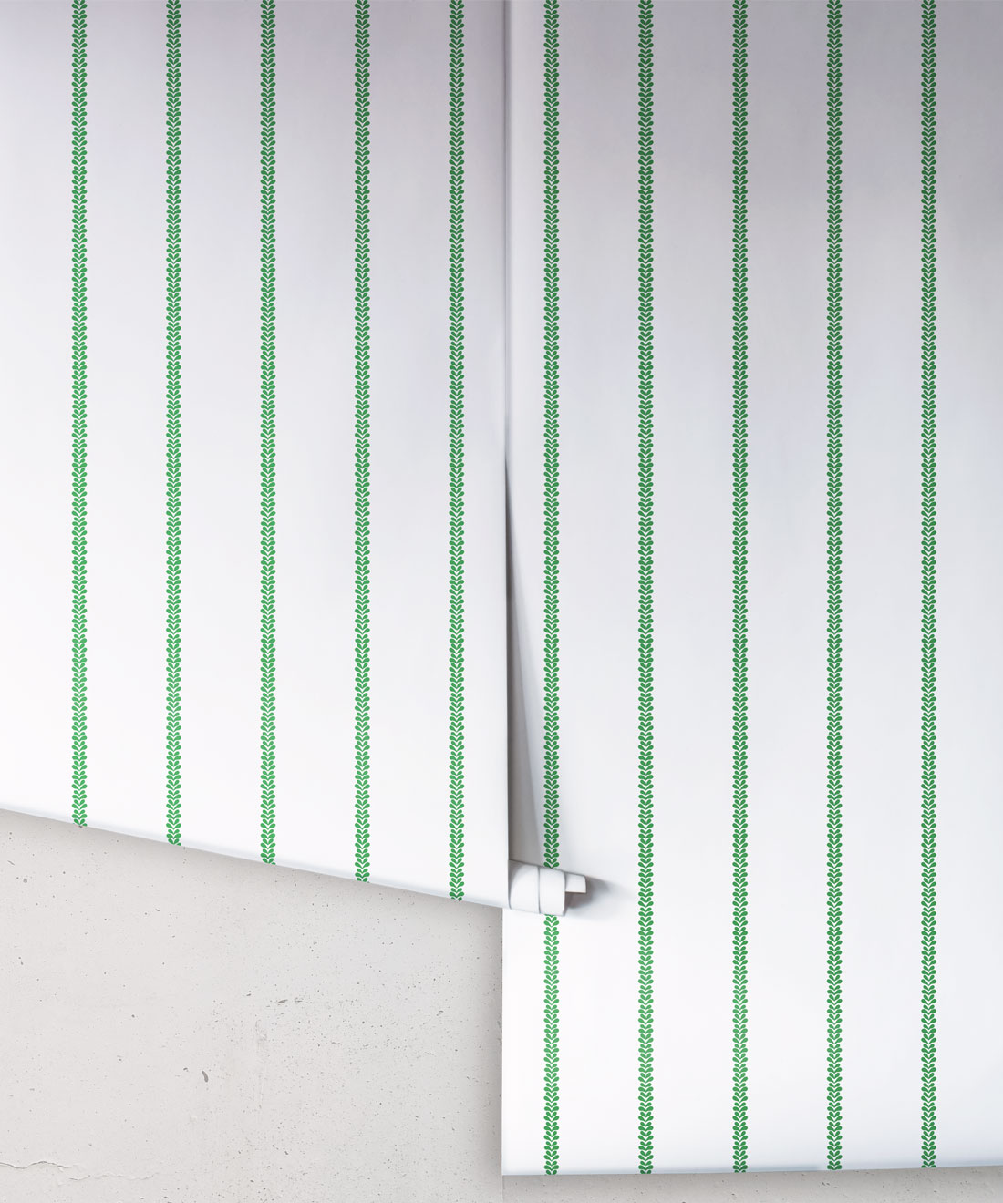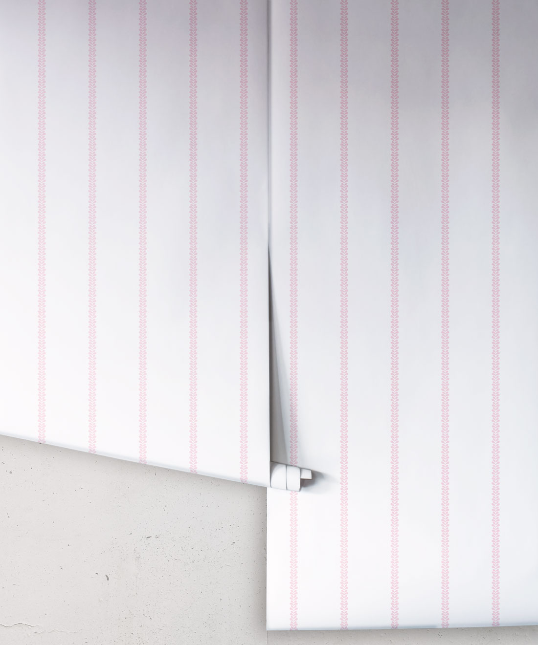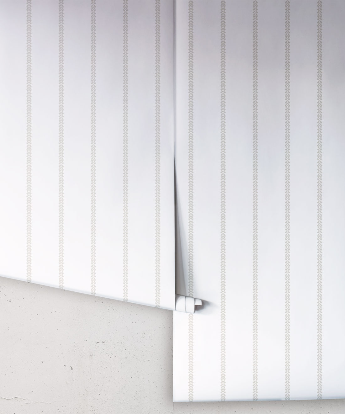 Chemin is ready to lead you up the garden path ! A delicious little squiggle design masquerading as an ornate stripe wallpaper – its gentleness will settle easily into any scheme and is a perfect backdrop for treasured art and keepsakes. It will truly be the unsung hero in any room.