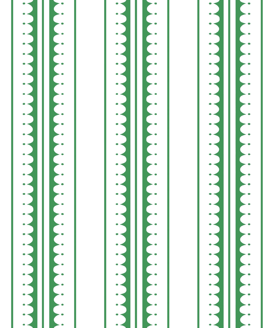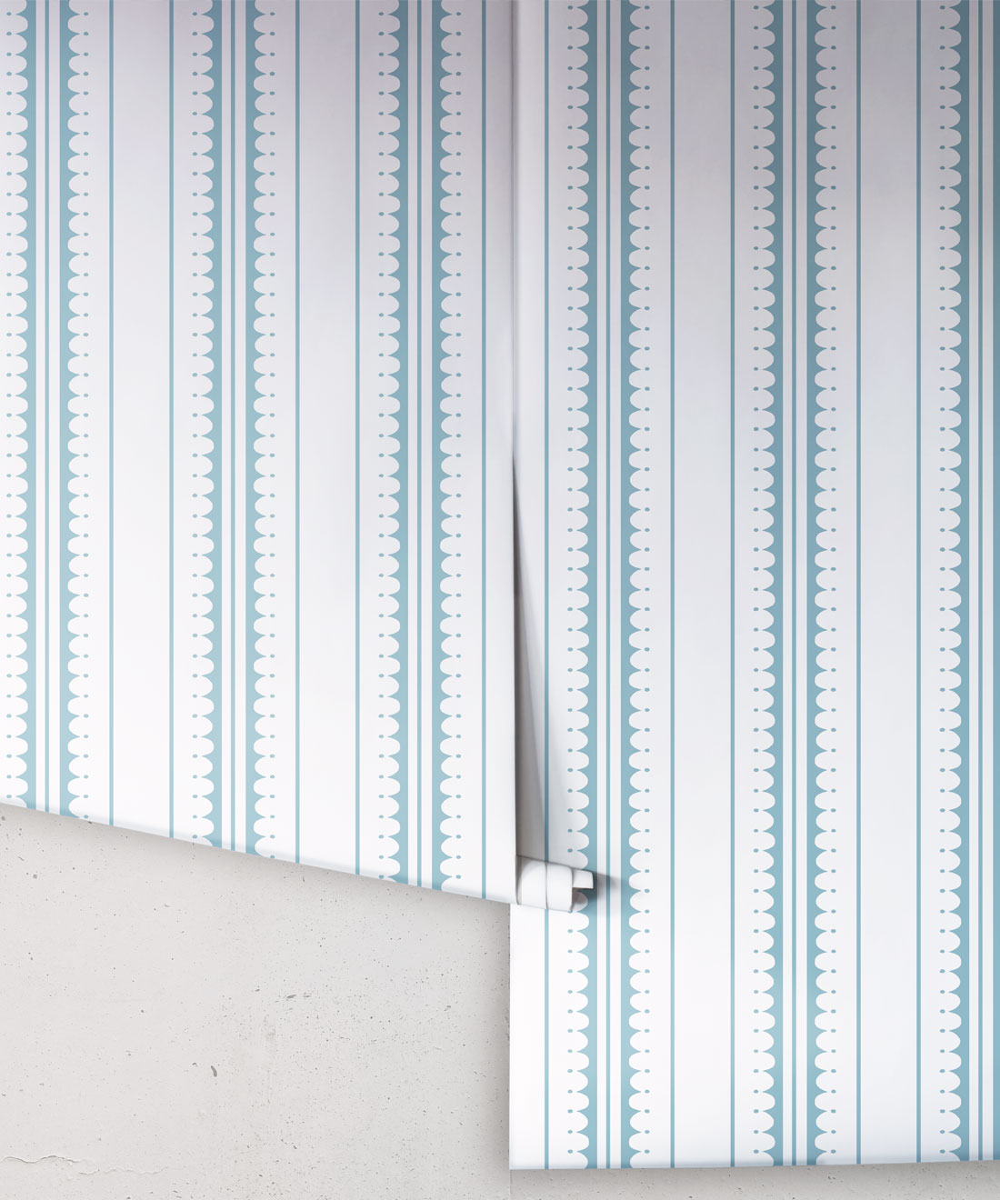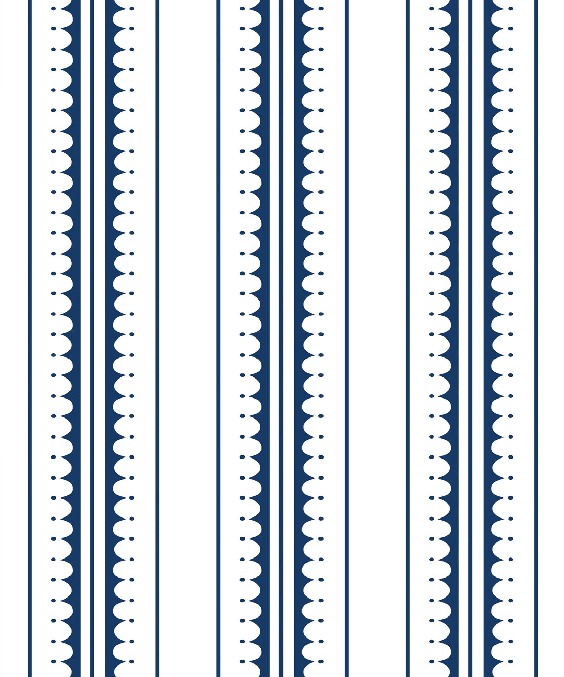 Coquille Wallpaper is the kissing cousin of La Grand Coquille Wallpaper. A simpler but no less charming scallop wallpaper ready to decorate every room in your home. A perfect way to add detail, structure and whimsy to any scenario with this clever combination of scallop and stripe – impossible not to love!