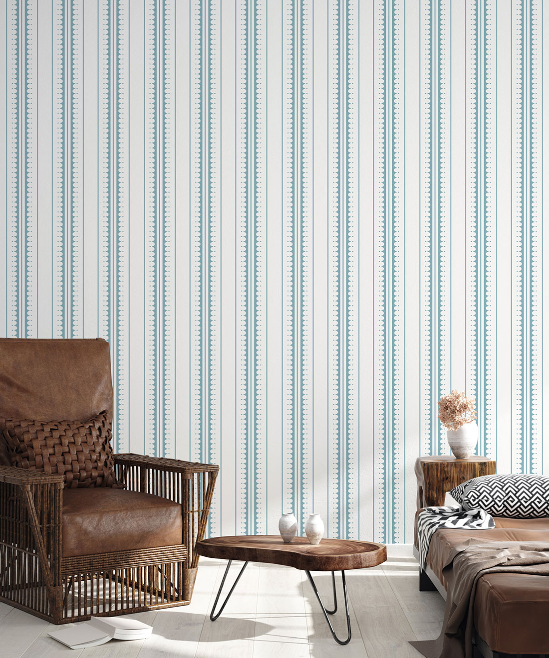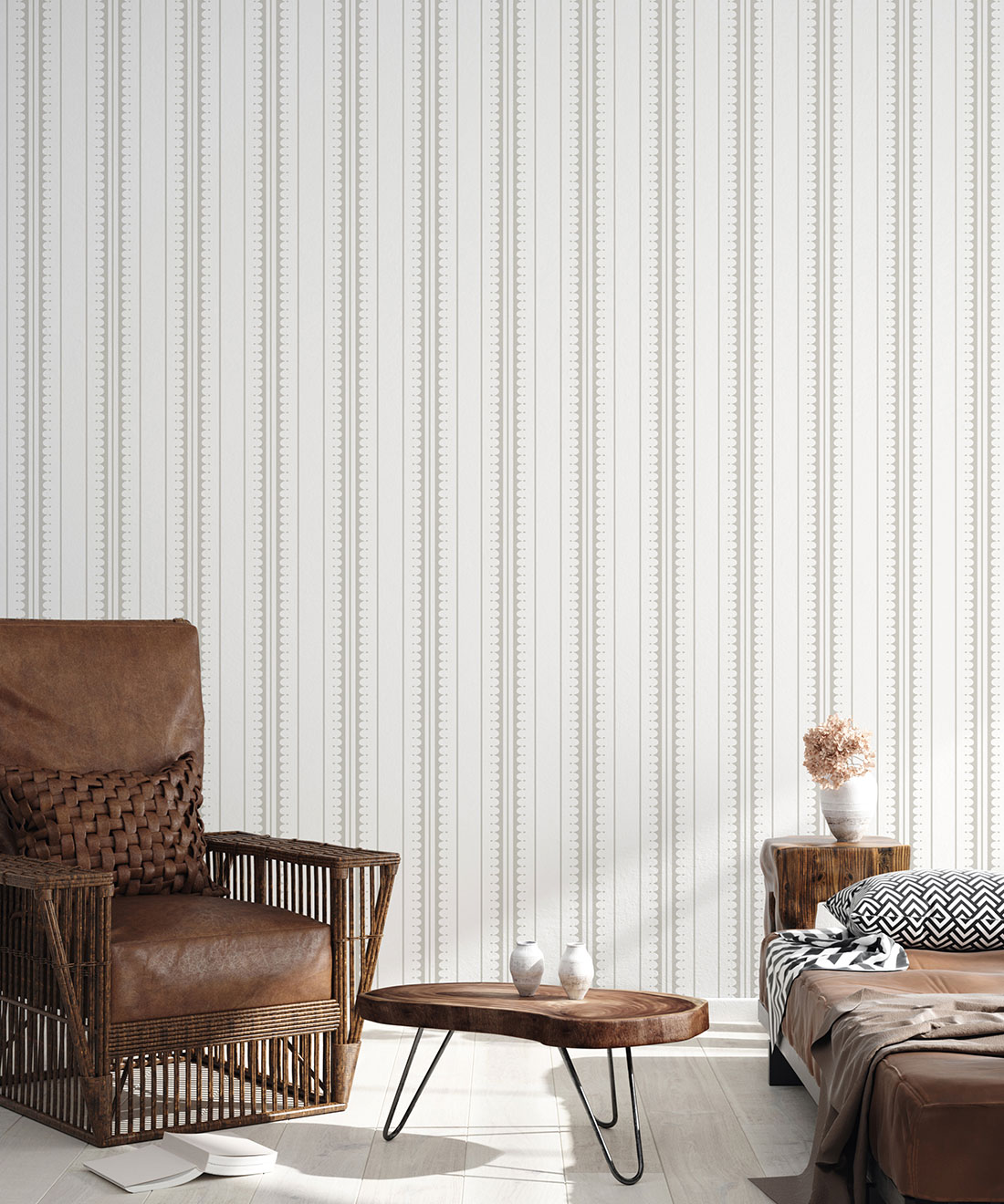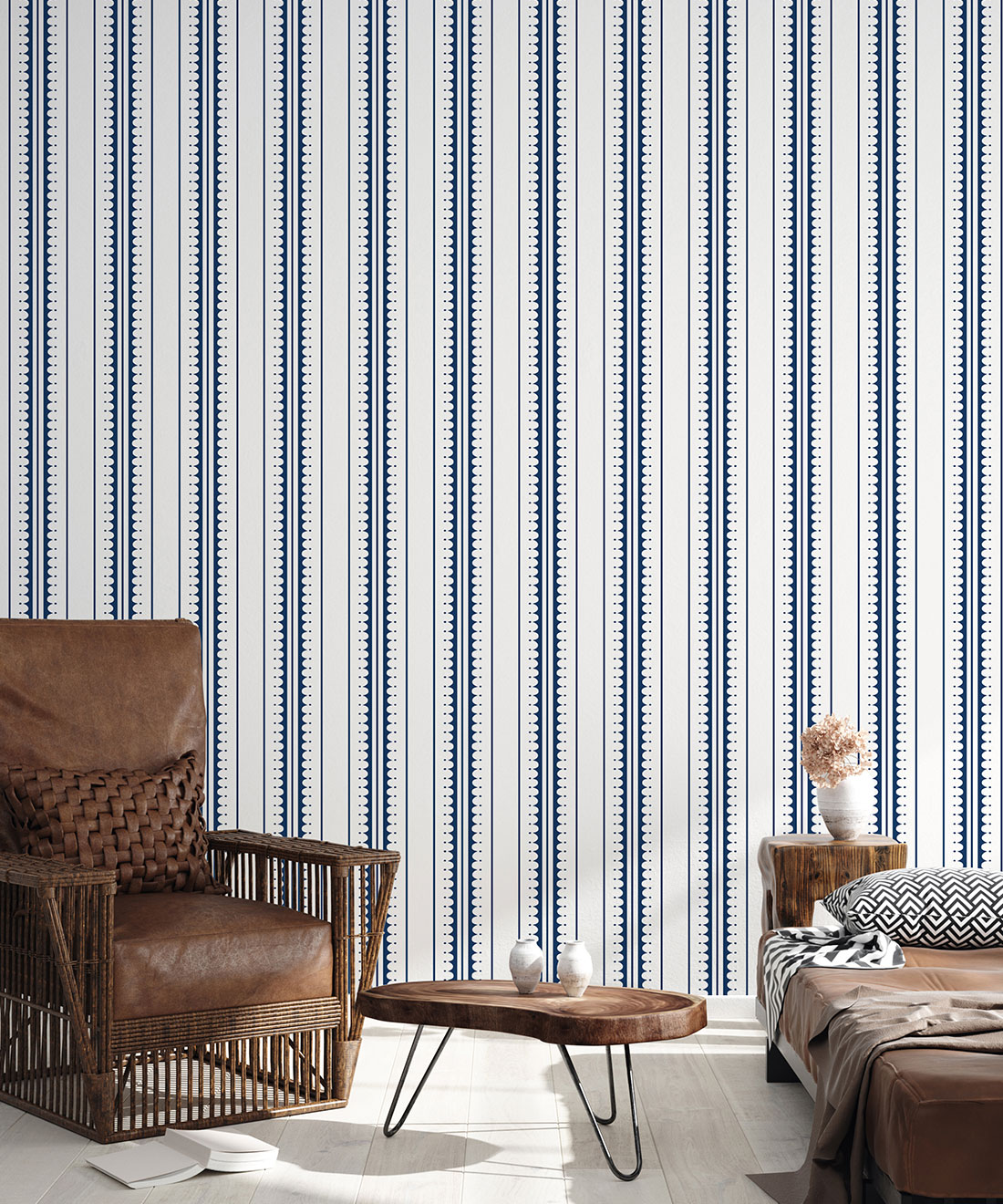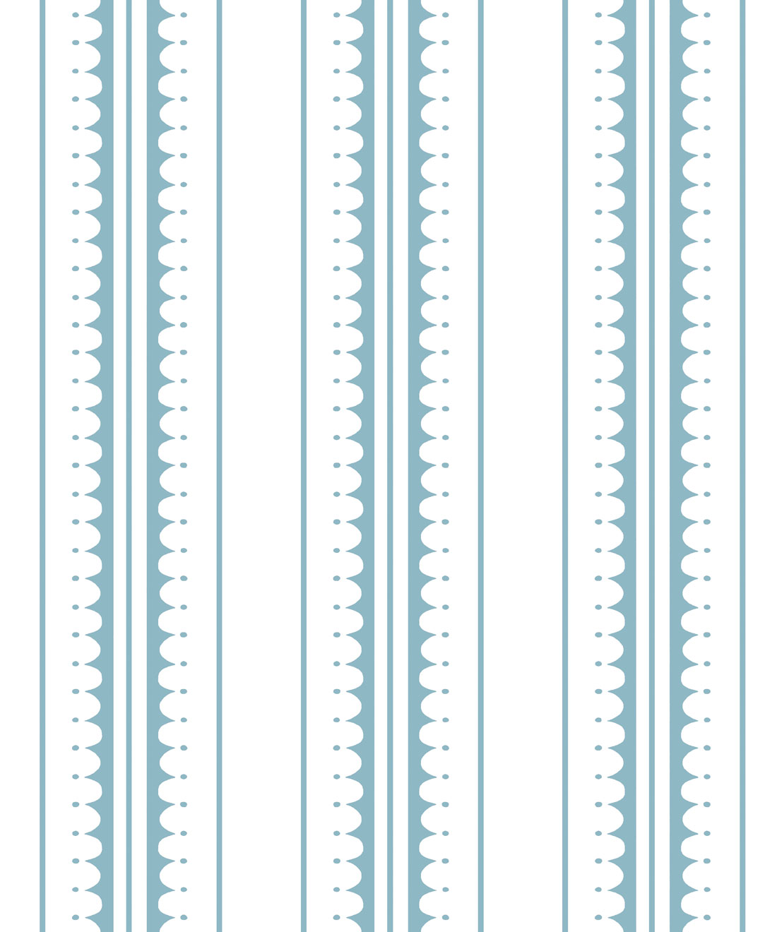 Coquille Wallpaper is the kissing cousin of La Grand Coquille Wallpaper. A simpler but no less charming scallop wallpaper ready to decorate every room in your home. A perfect way to add detail, structure and whimsy to any scenario with this clever combination of scallop and stripe – impossible not to love!