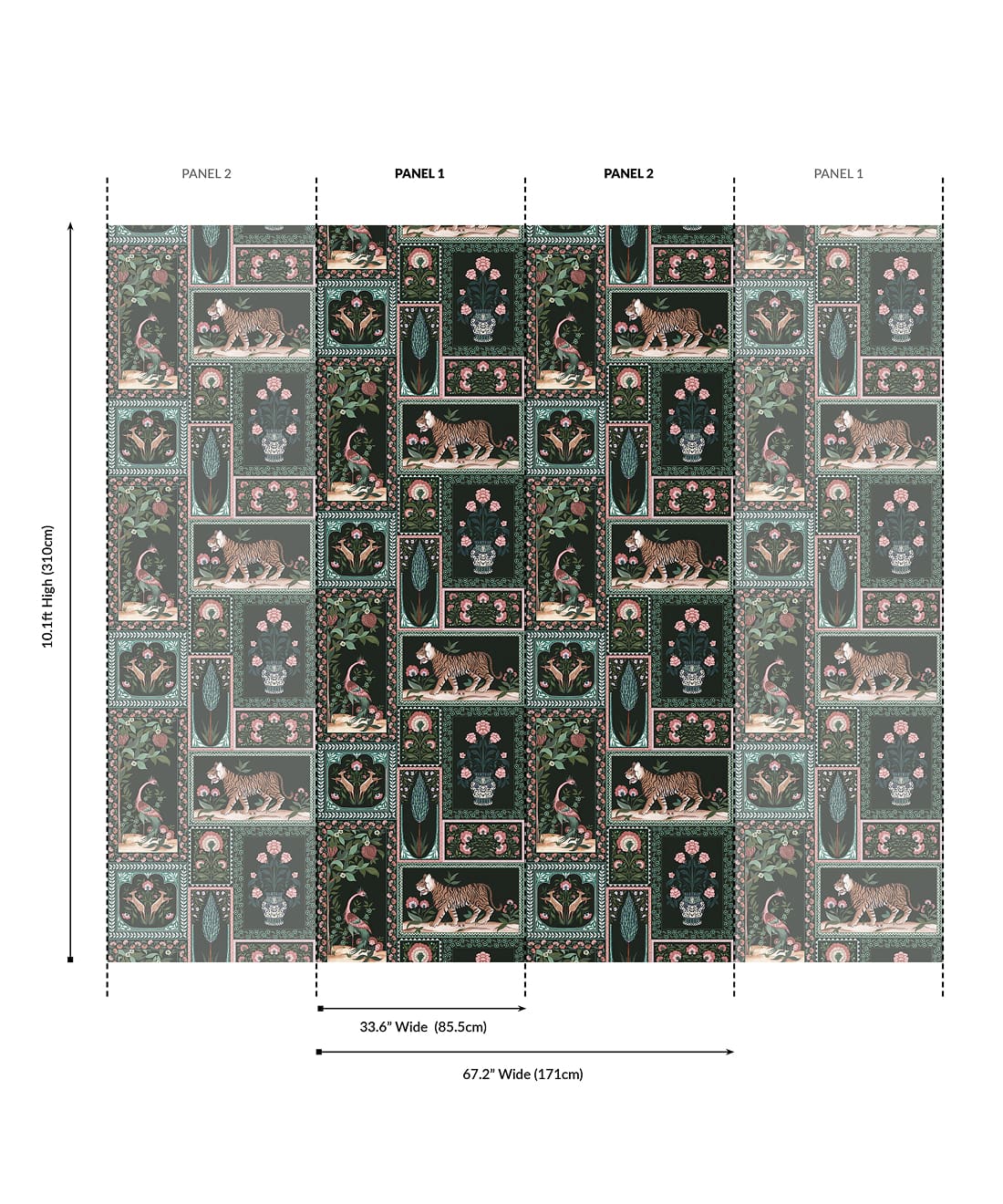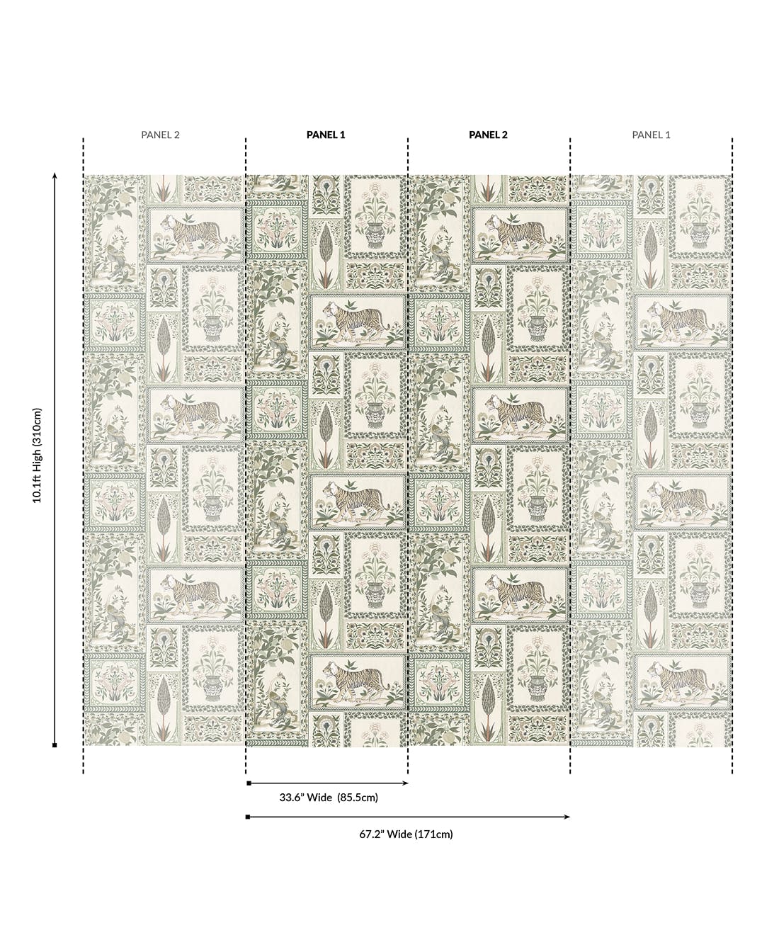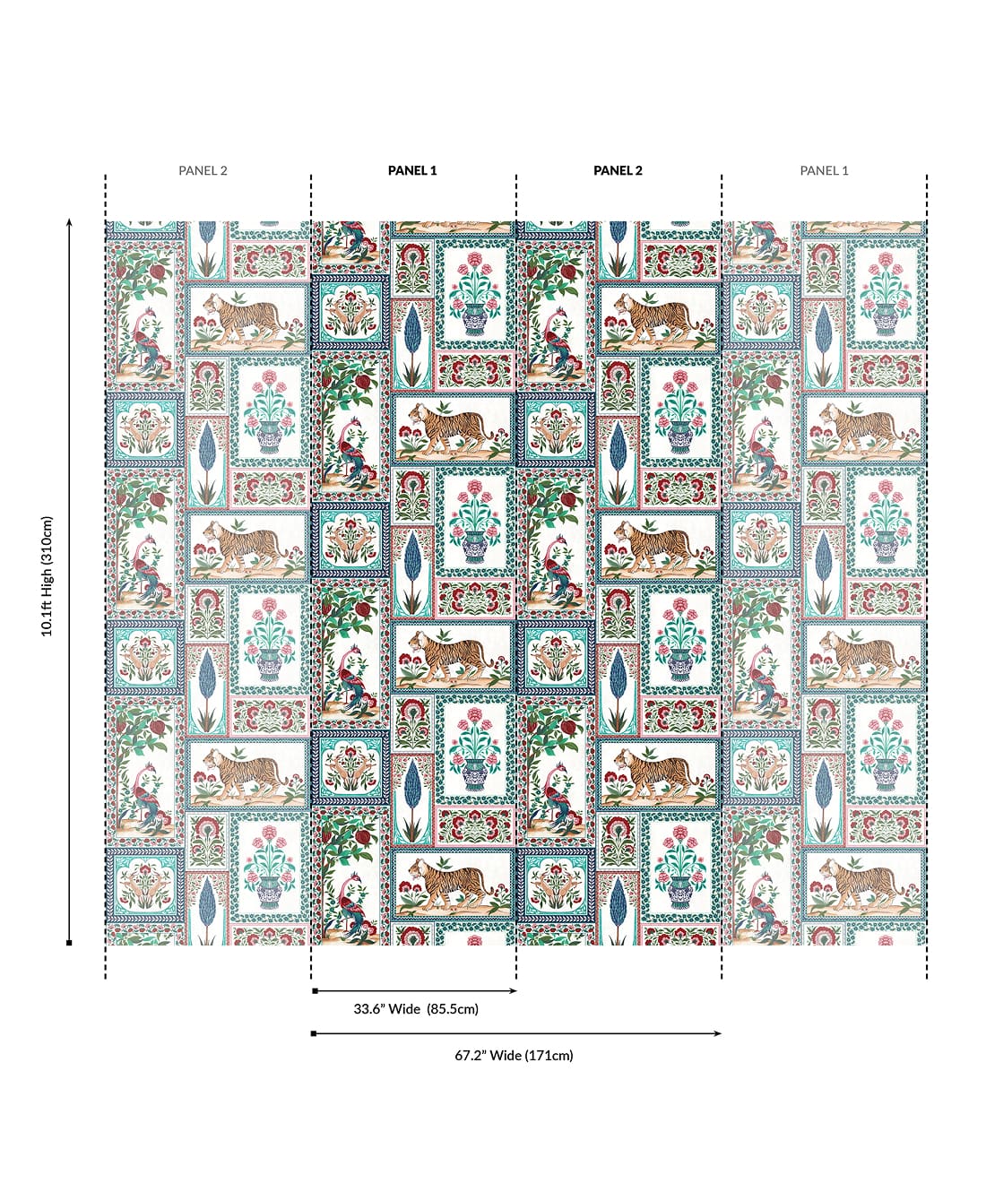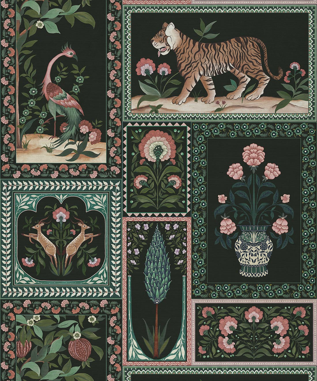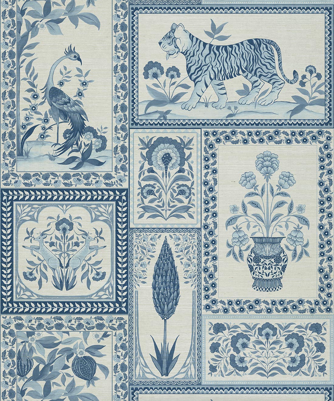 The Courtyard Grasscloth wallpaper is a delicate, hand-painted design inspired by traditional Indo-Persian artworks, featuring delicate flora and fauna native to the region. Individual elements are enveloped in frames of leaves and flowers, effortlessly creating a sense of beauty and balance, and the natural woven background is reminiscent of traditional tapestries and embroidery. This design pairs perfectly with the entire Palace Grove collection, allowing you to create a harmonious and elegant interior that breathes warmth and romance throughout.
