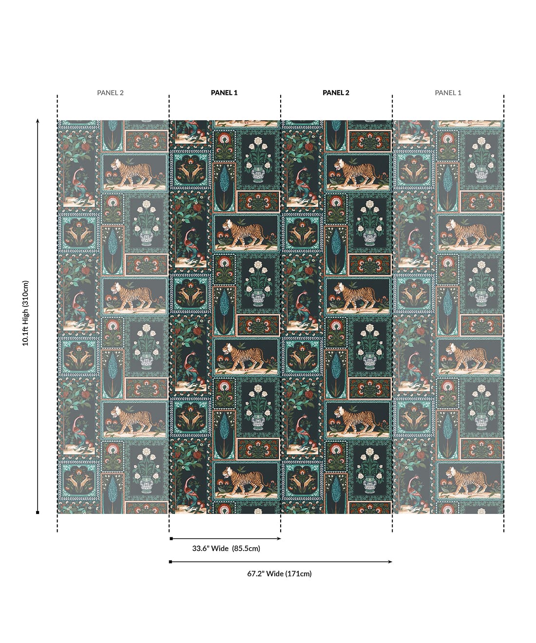 Designed as panels that are 33.6″ (85.5cm) wide x 10.1ft (310cm) high.