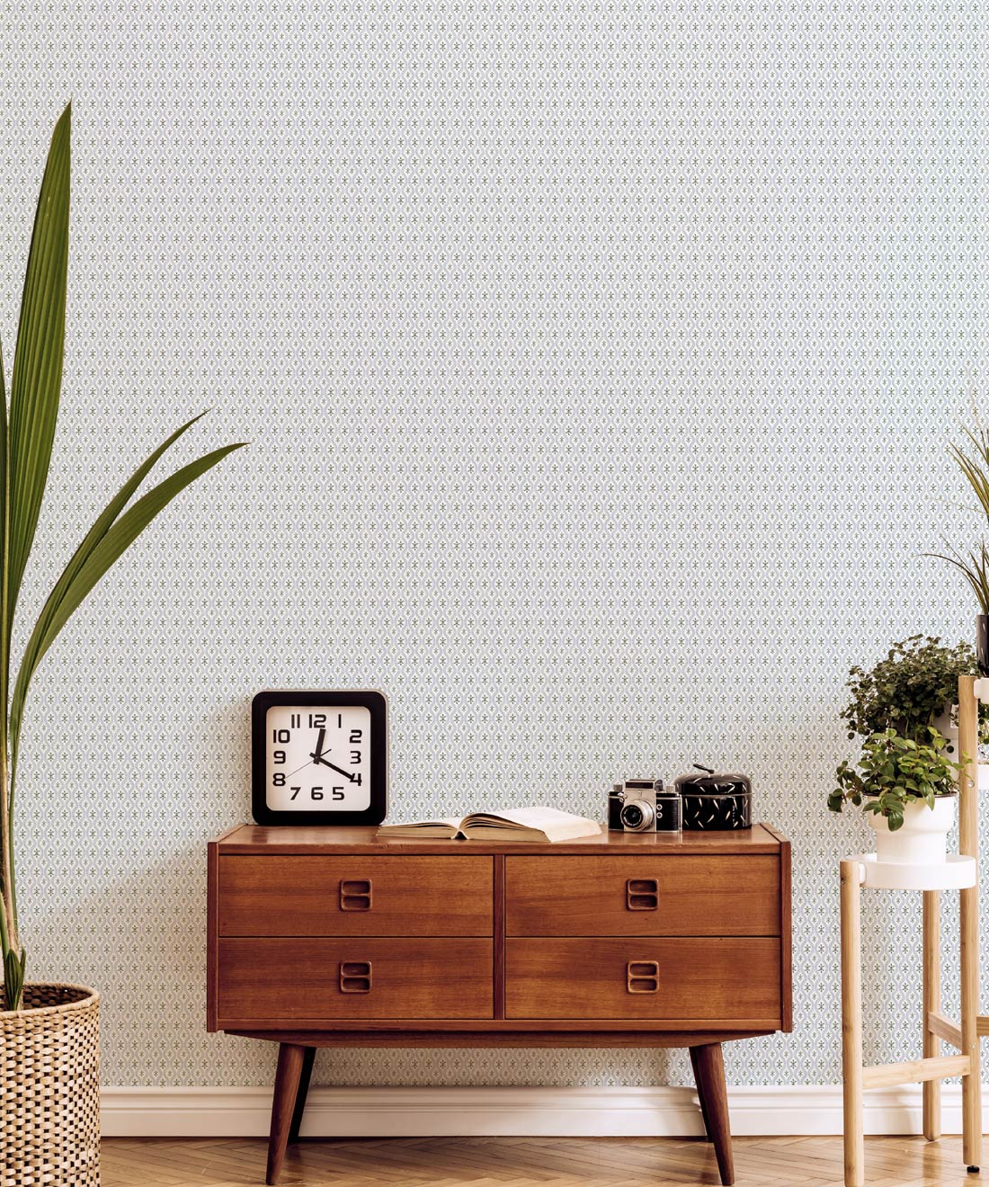 Dausa Wallpaper is a delicate small scale pattern that features a contemporary vertical wavy pattern surrounding an ornamental accent creating a timeless backdrop in any room. We love it in living rooms, bedrooms and entryways.
