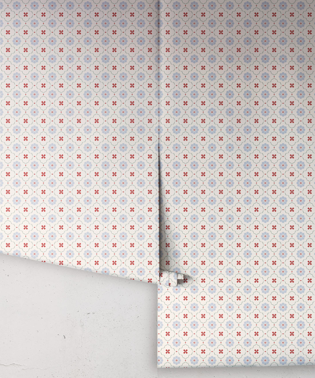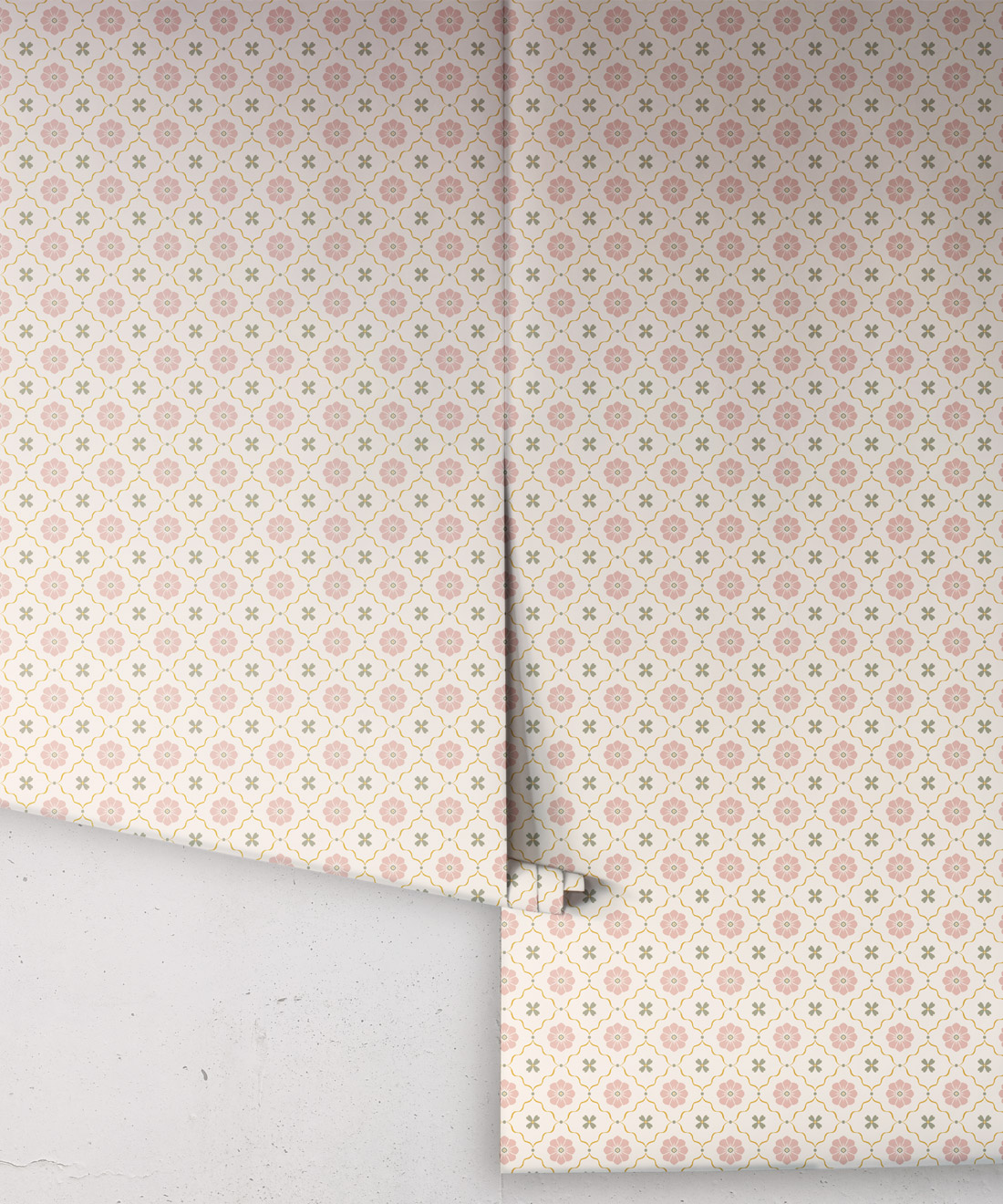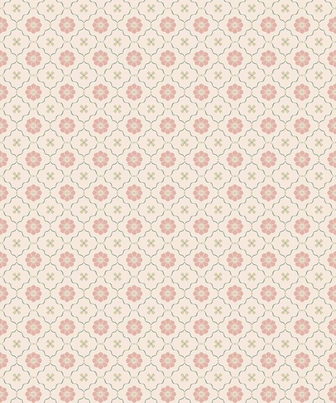 Esme Wallpaper brings together hand-drawn blossoms in a cute, timeless repeat evocative of vintage tiles. Both sweet and sophisticated, it’s a versatile floral that pairs beautifully with other Petite prints.