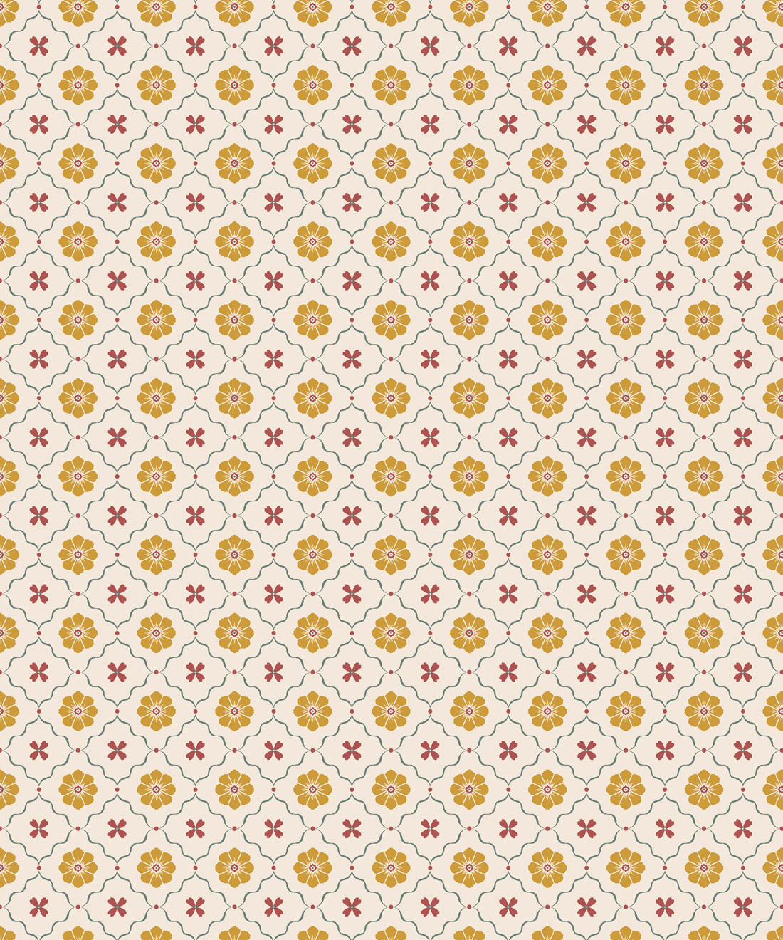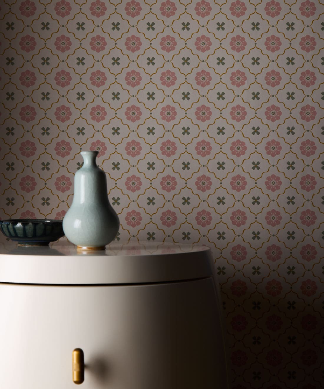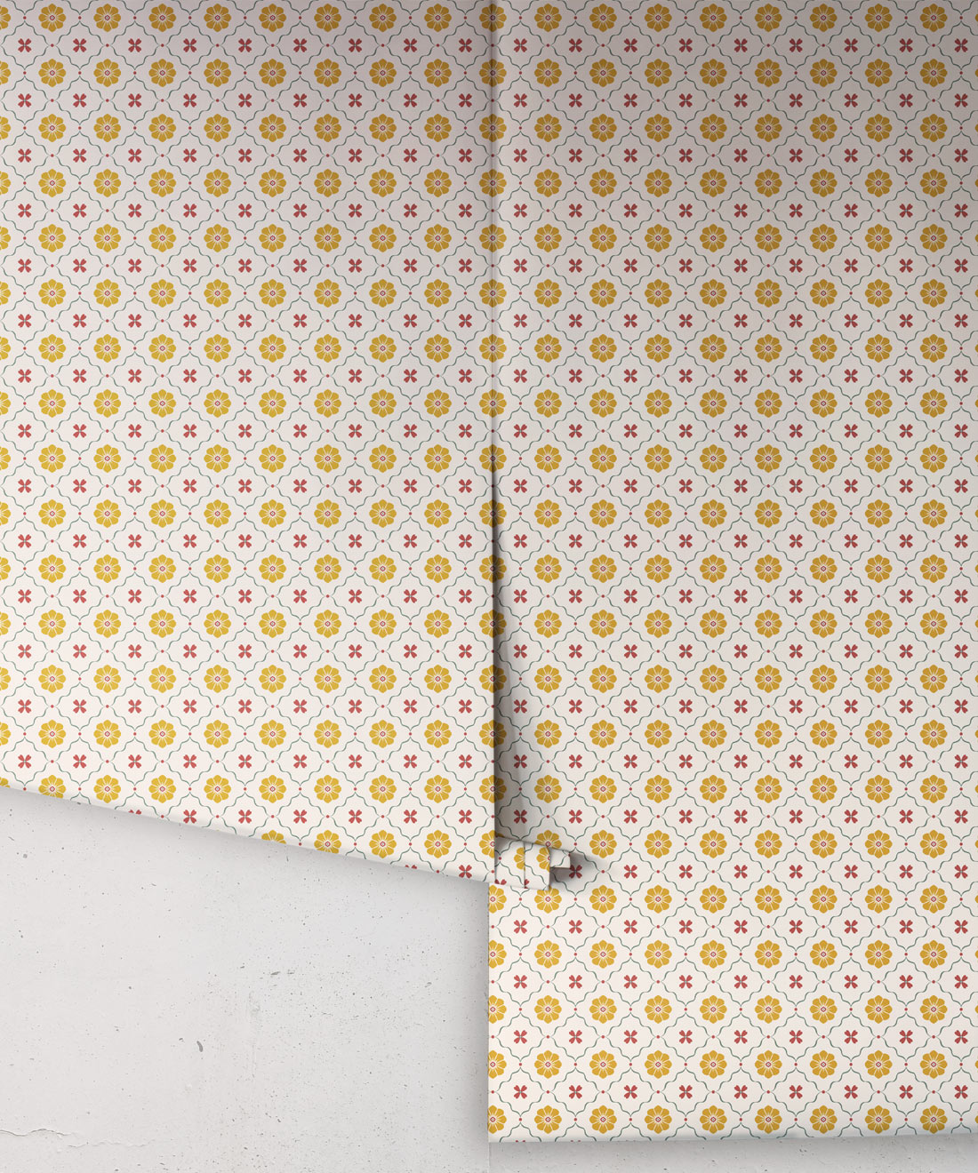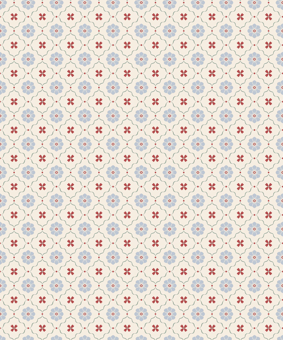 Esme Wallpaper brings together hand-drawn blossoms in a cute, timeless repeat evocative of vintage tiles. Both sweet and sophisticated, it’s a versatile floral that pairs beautifully with other Petite prints.