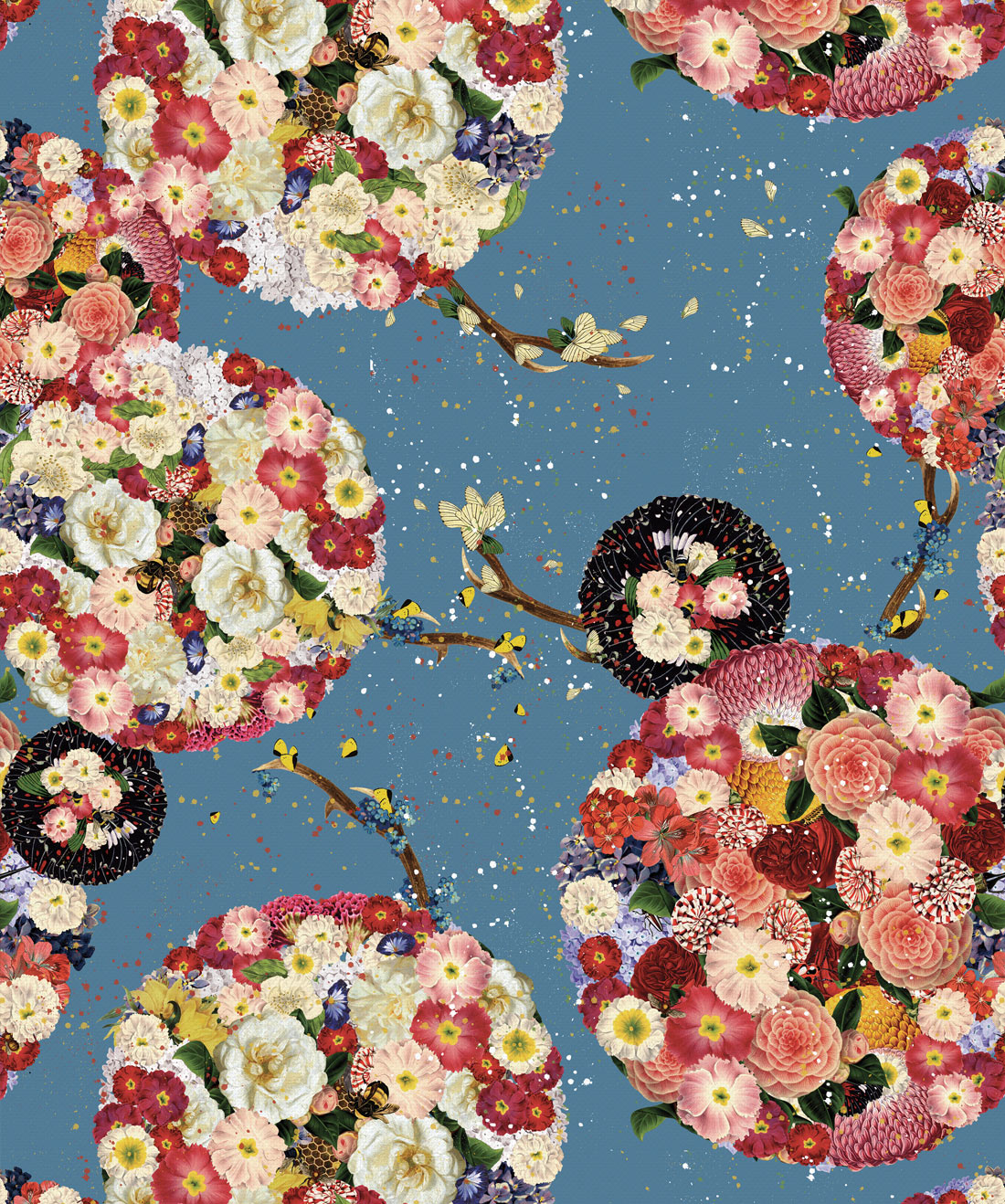 As the name suggests, Flower Bomb is a statement wallpaper that features an explosion and celebration of floral and Colors. Look closer and you will not only discover flowers in all shapes, sizes and Colors but some very well hidden insects lured to investigate these impressive, vivid and lively bouquets.