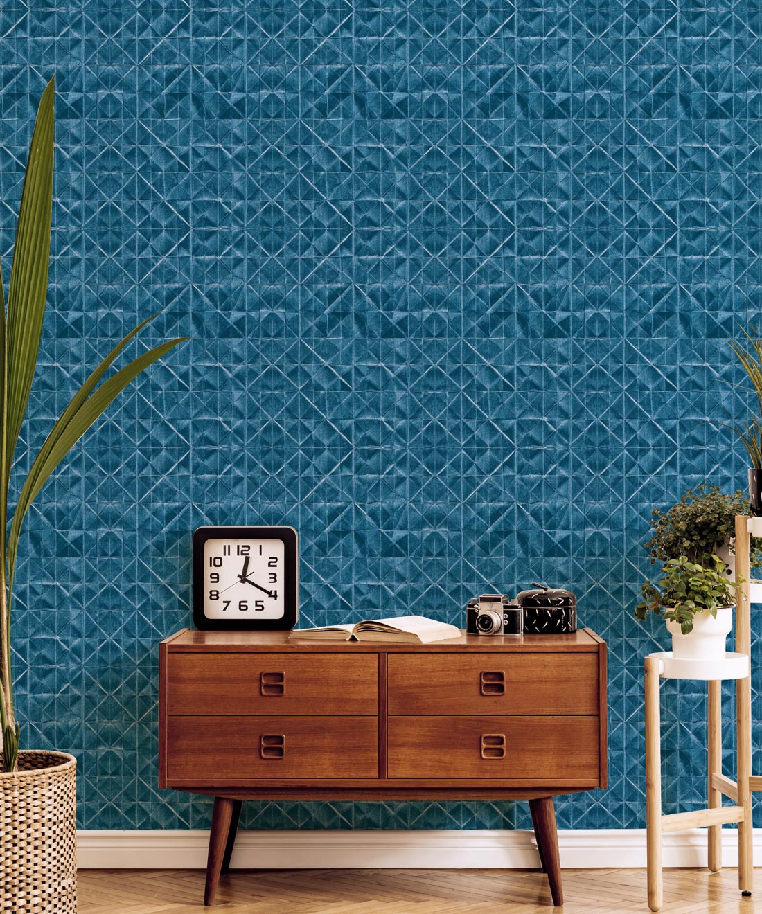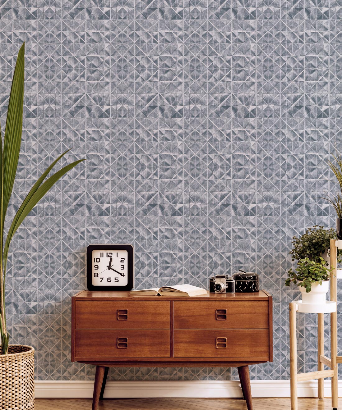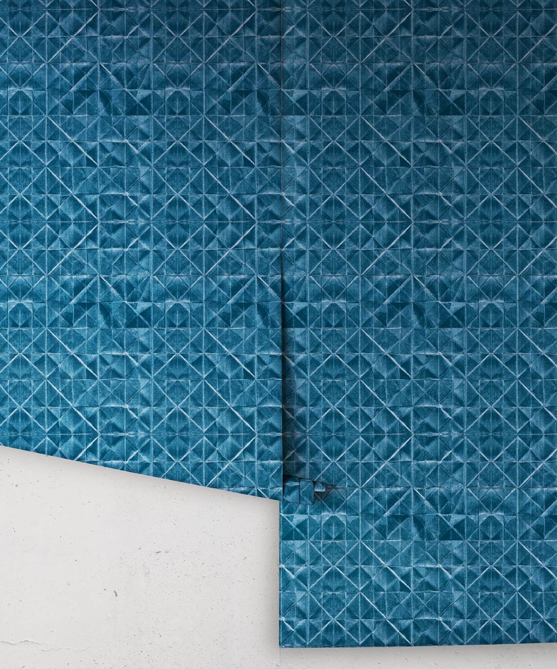 A combination of two traditional art techniques, shibori and origami, Fold Wallpaper is a handsome design with symmetry, harmony and rhythm in simplicity. By tightly folding the cloth and binding it prior to submerging in the dye pot, the artists from Shibori have crafted a minimalist design that will instantly add texture to the walls of any space. The visual aesthetic of this wallpaper is rustic and earthy, perfect for those who love a boho style interior with a geometric twist. Four colorways are available.