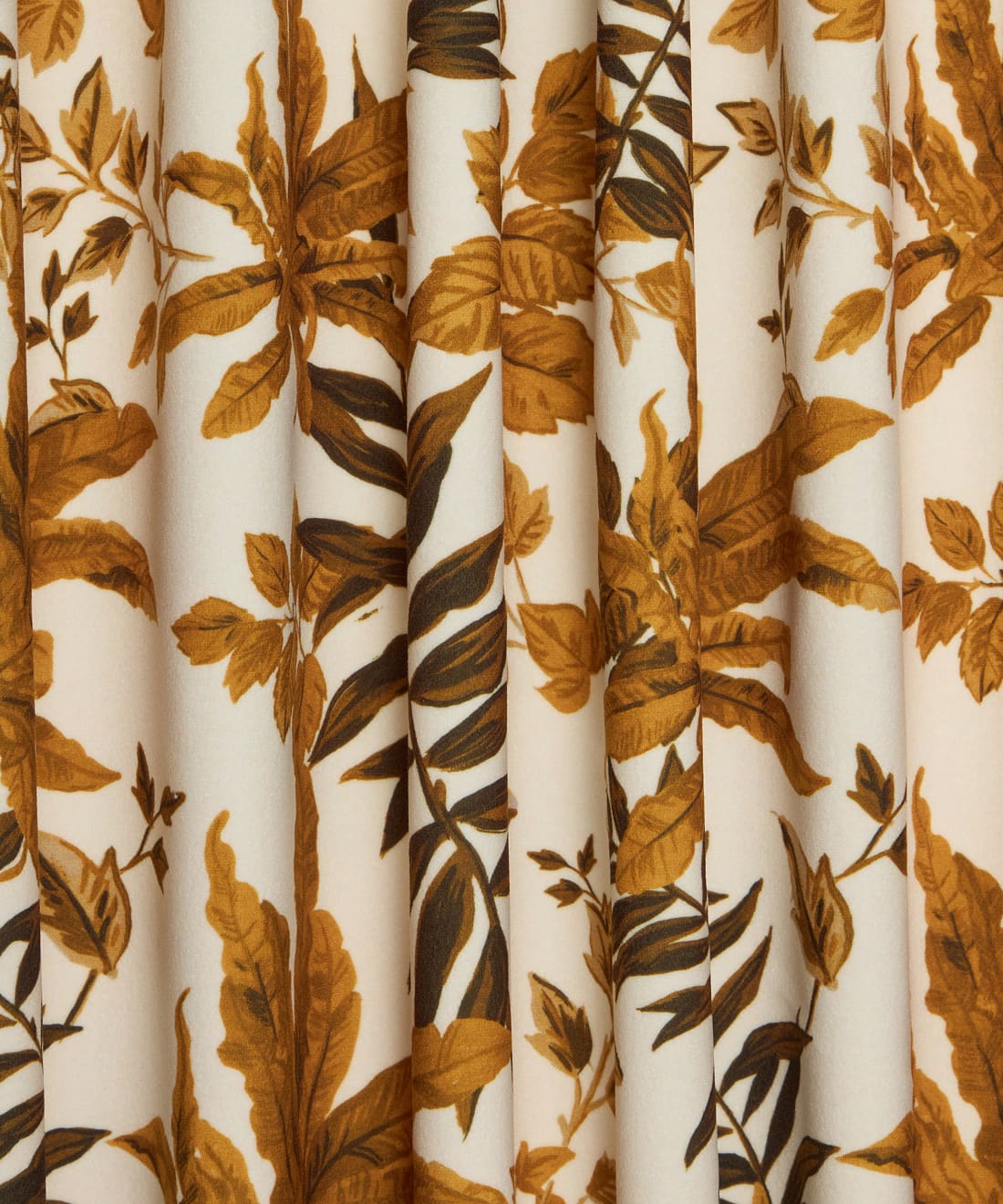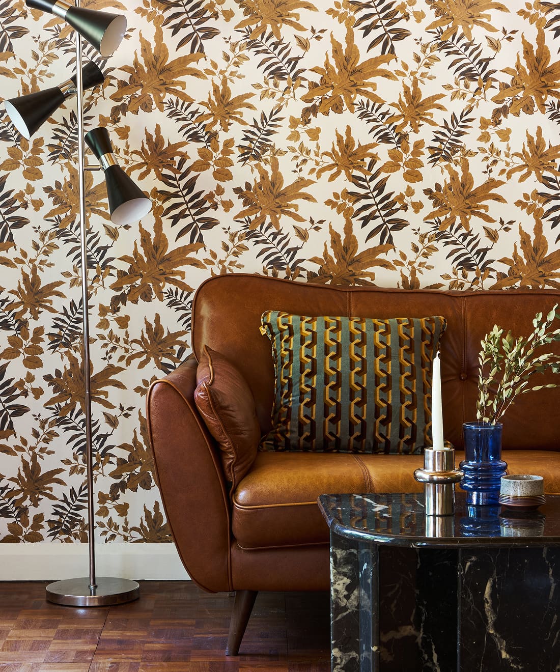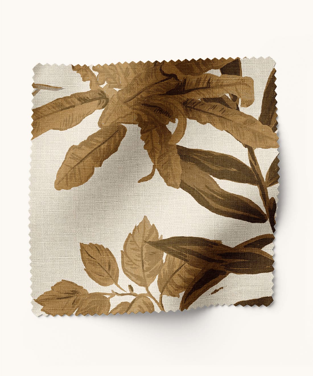 Follywood Foliage channels 70s sophistication with elegant monochrome leaves and a distinctly British sensibility. Calm grounded and refined, this fabric is perfect for drapery upholstery or interiors that prefer understated botanical texture.