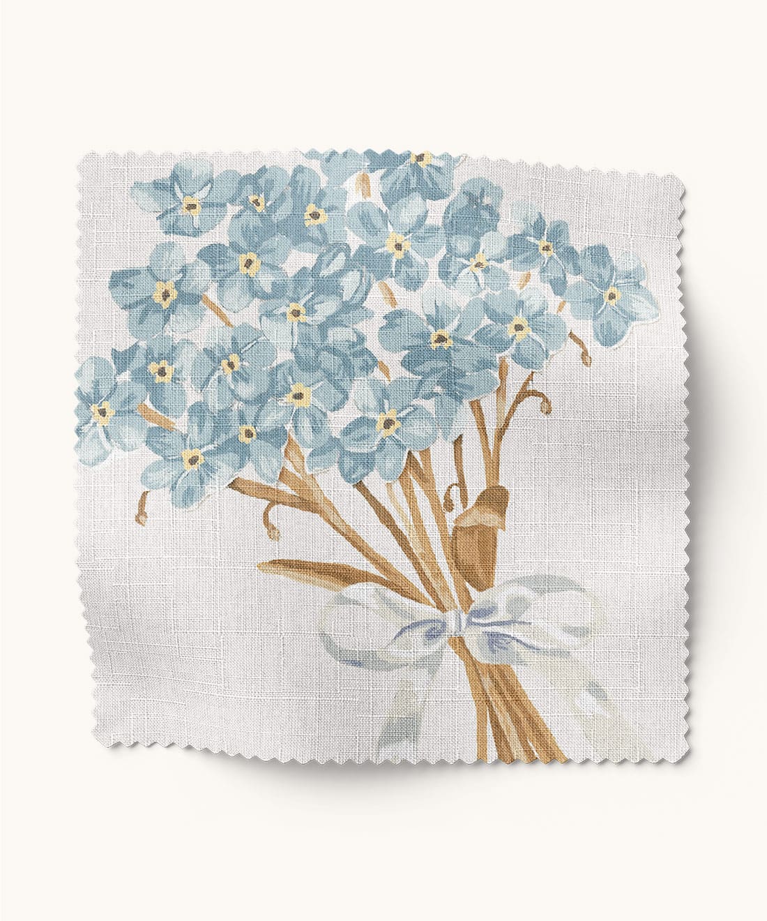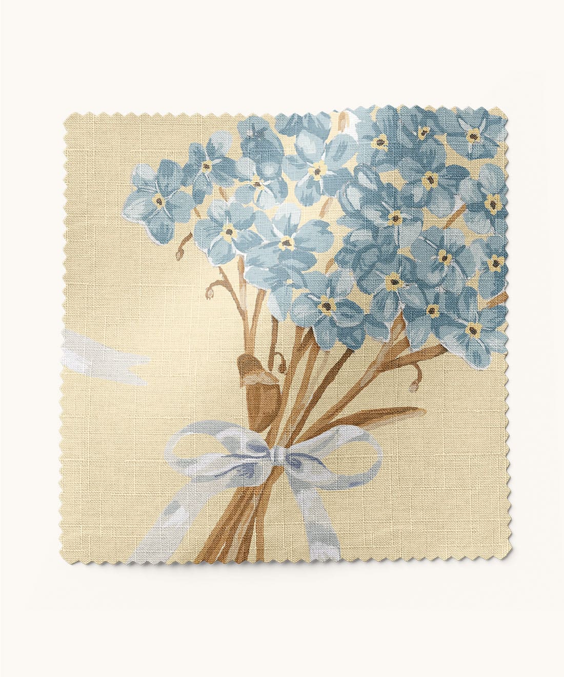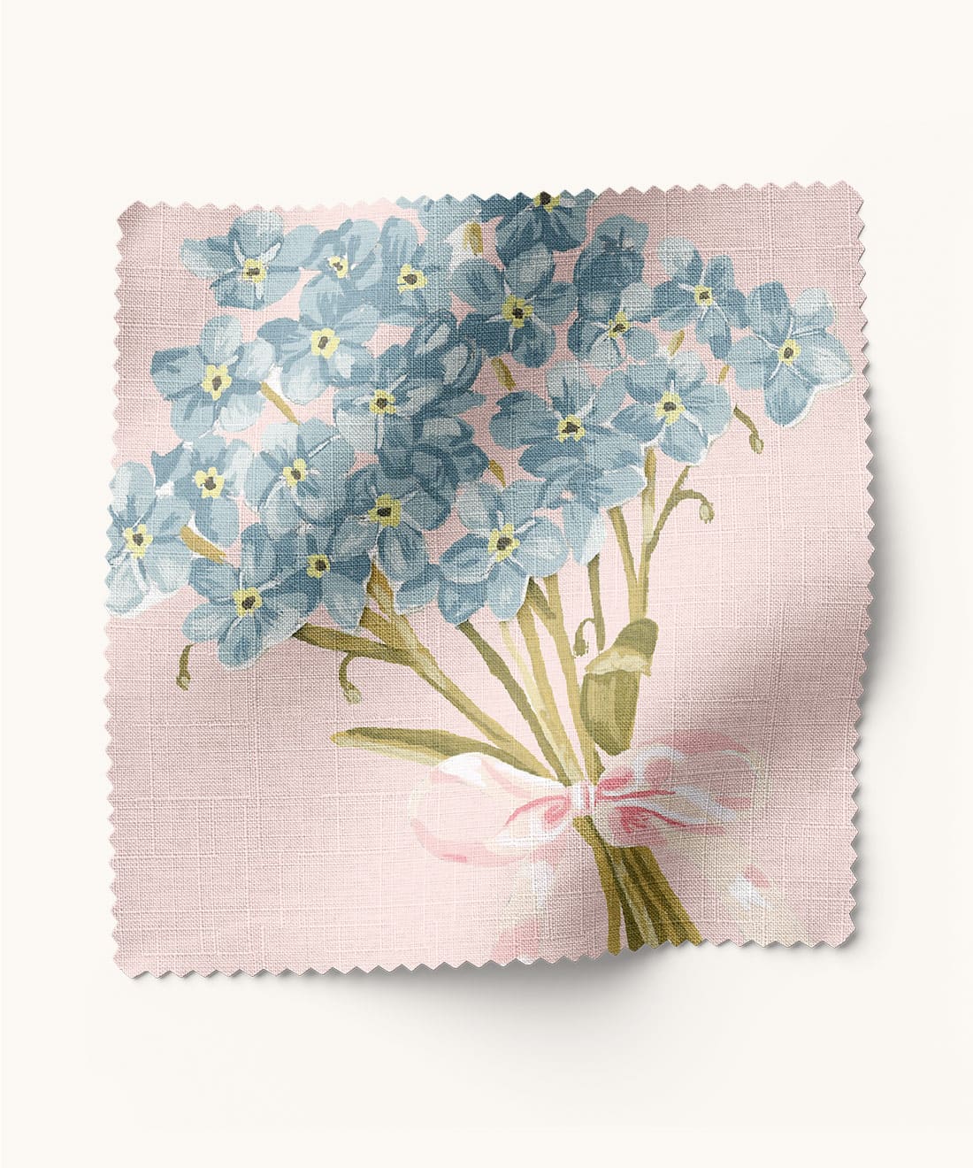 Forget Me Notes is sweet sentimental and full of heart. Hand-painted bouquets tied with ribbons bring vintage gifting traditions to life across the fabric. A charming choice for cushions drapery or spaces that celebrate warmth nostalgia and kindness.