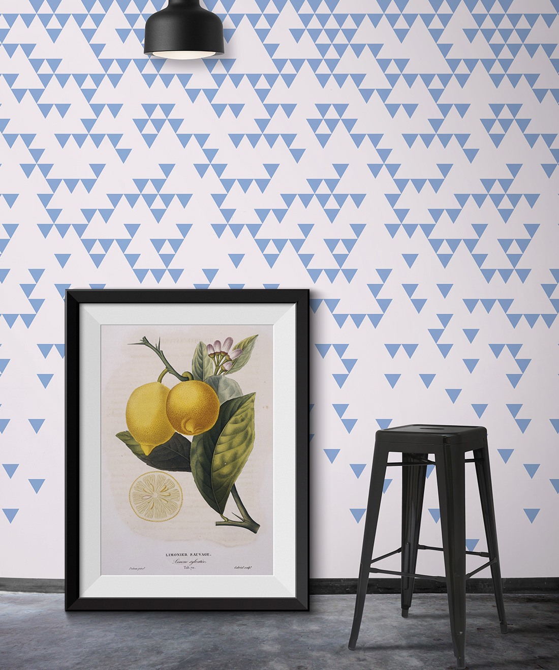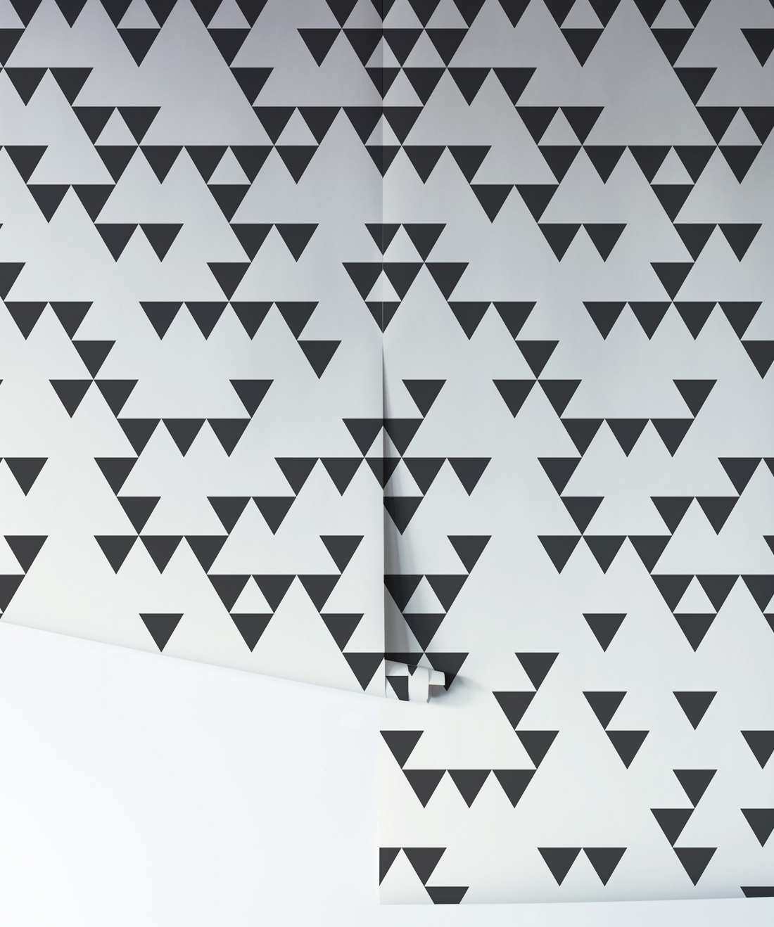 This stunning geometric triangle wallpaper is ideal for creating a unique, minimal and individual aesthetic. Like falling rain, these triangles are heavy at the top reducing to a light fall at the bottom. A strong relationship with nature is visible in this mixture of abstraction and shape.