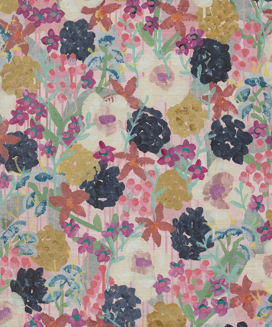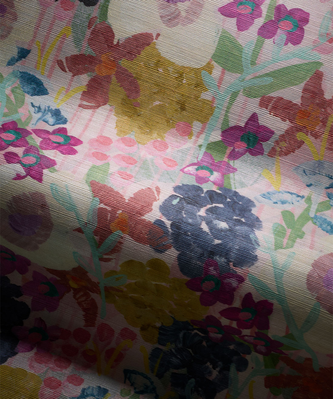 Garden State is a full-floral mural bursting with painterly movement and layered brushwork. Featuring rich maroons, golden mustards, and delicate pinks, the design balances playful energy with bold elegance. The expressive florals bloom across the grasscloth texture, turning walls into an artistic feature. Ideal for bedrooms, bathrooms, or creative living areas, it’s a vibrant celebration of floral form.