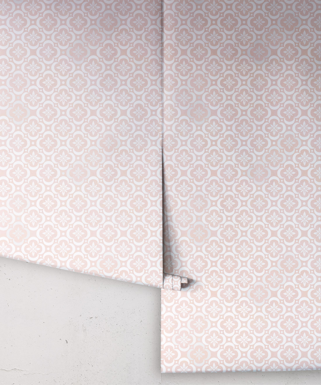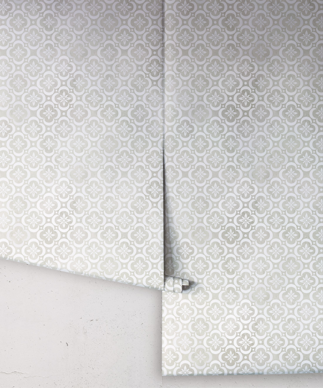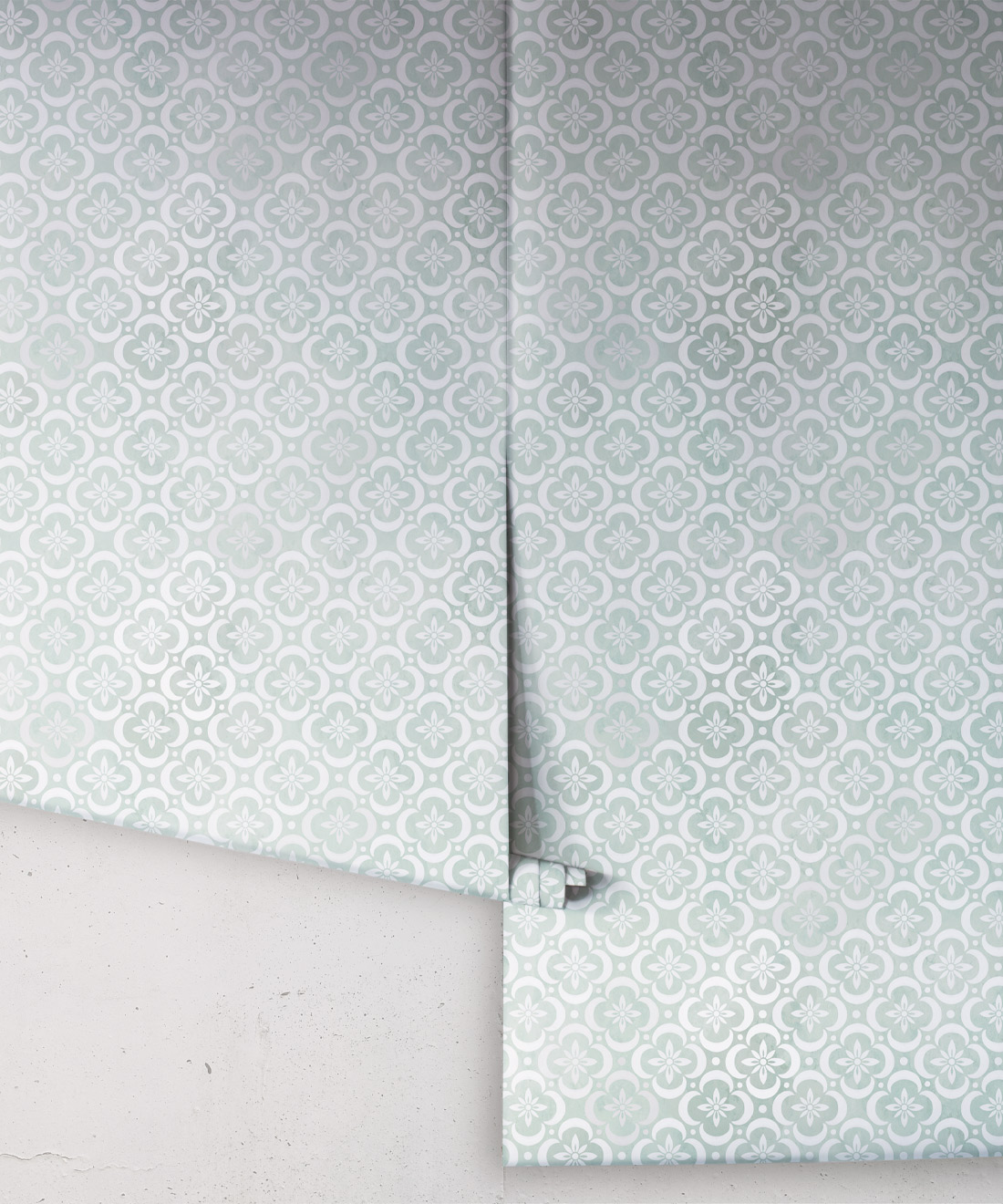 Garden Tiles Wallpaper is a geometric design inspired by European courtyards. It is created not as a perfect pattern, but with the illusion of wear and tear, to emulate the effects of exposure to the environment and constant use. Available in Beige, Charcoal, Cream, Mint and Pink, this design will add an instant touch of history and class to any space.