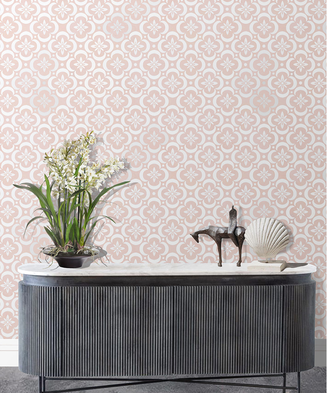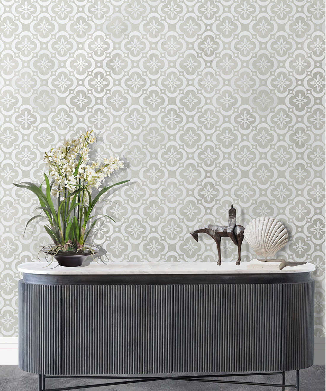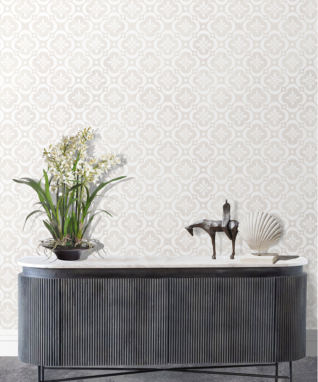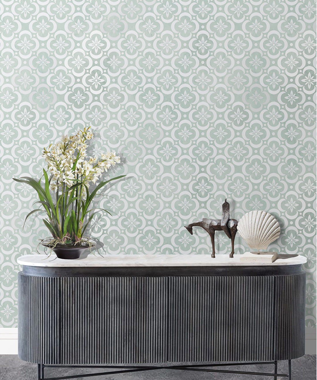 Garden Tiles Wallpaper is a geometric design inspired by European courtyards. It is created not as a perfect pattern, but with the illusion of wear and tear, to emulate the effects of exposure to the environment and constant use. Available in Beige, Charcoal, Cream, Mint and Pink, this design will add an instant touch of history and class to any space.