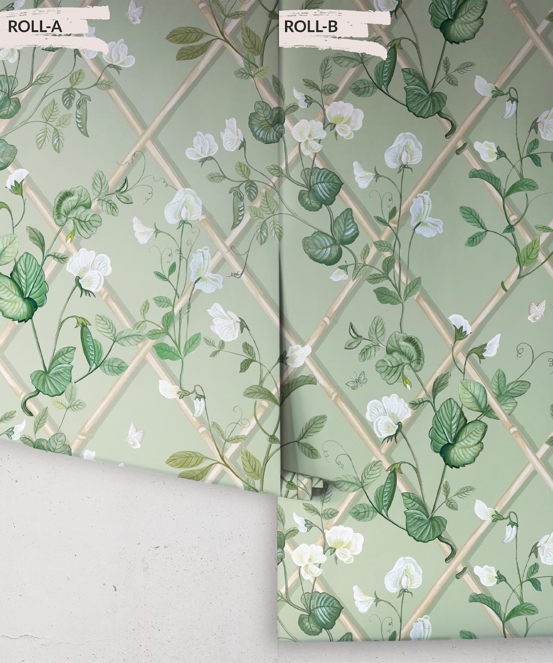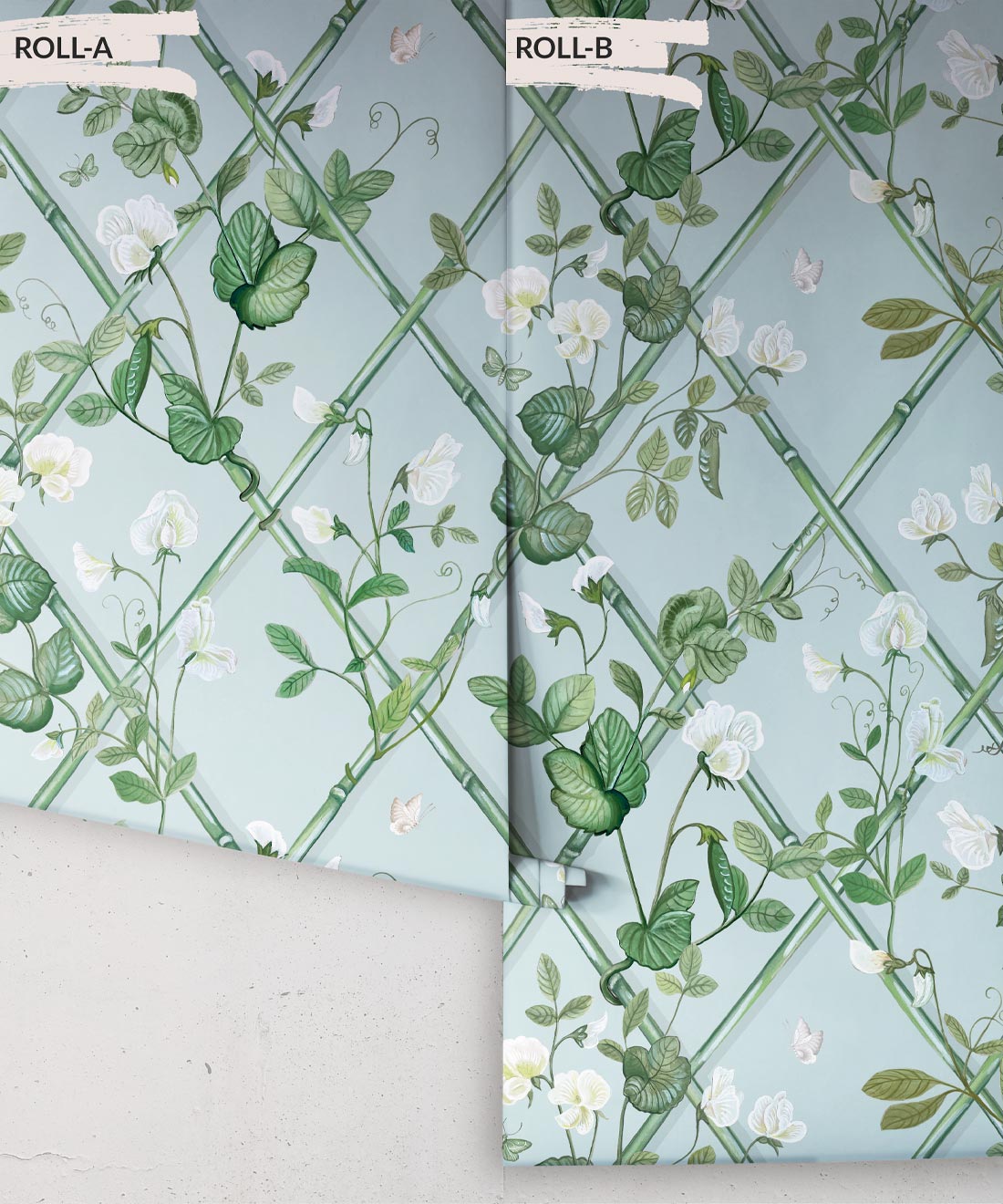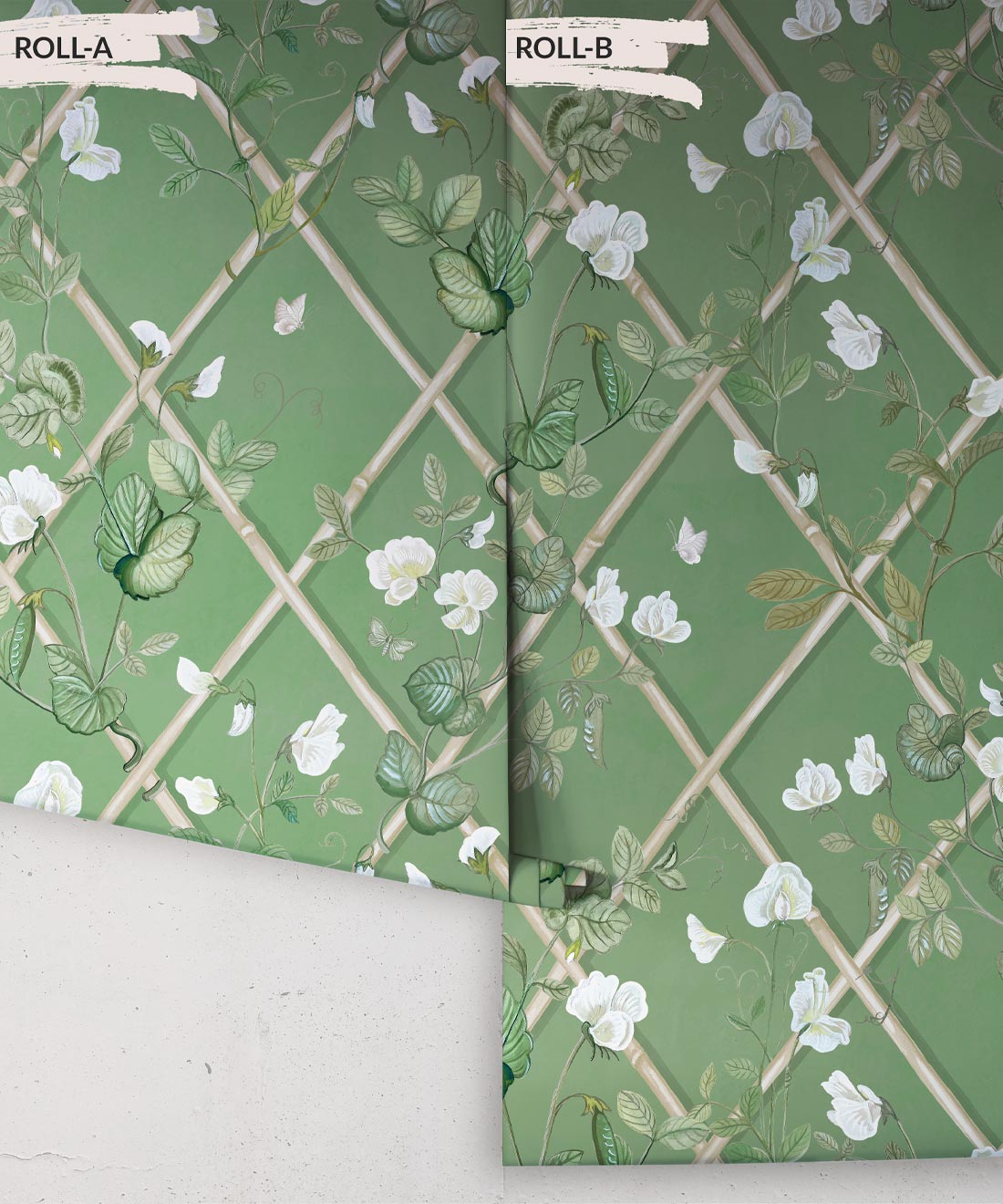 Manufactured as a double width design (set) requiring 2 rolls, A+B to complete the horizontal repeat. One set is equivalent to 133 sq. ft. or (12.3 sq. m.).