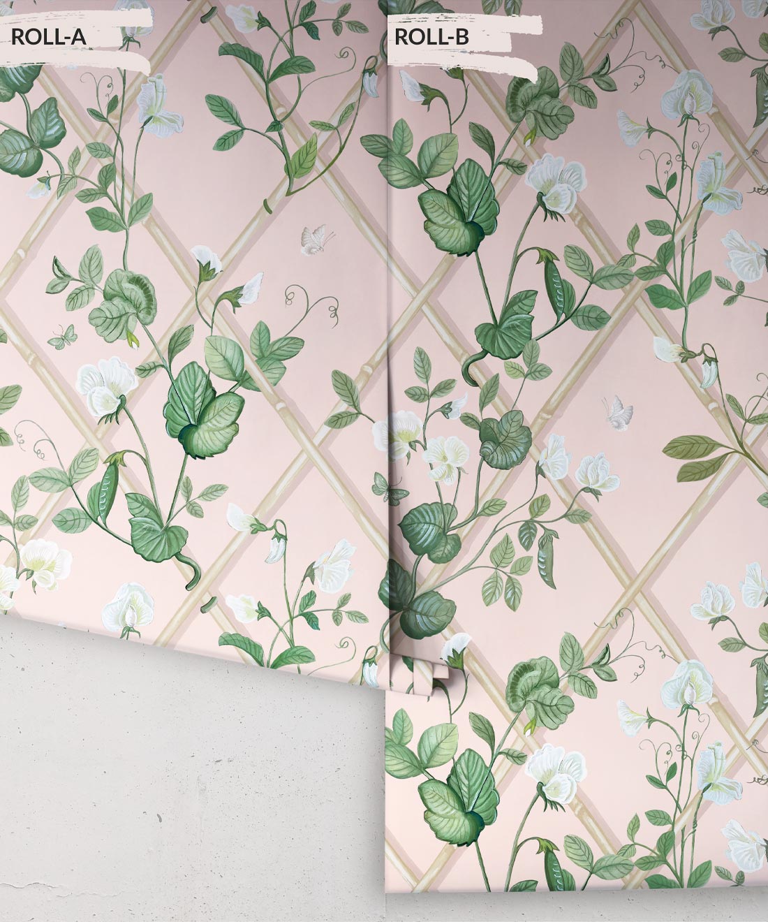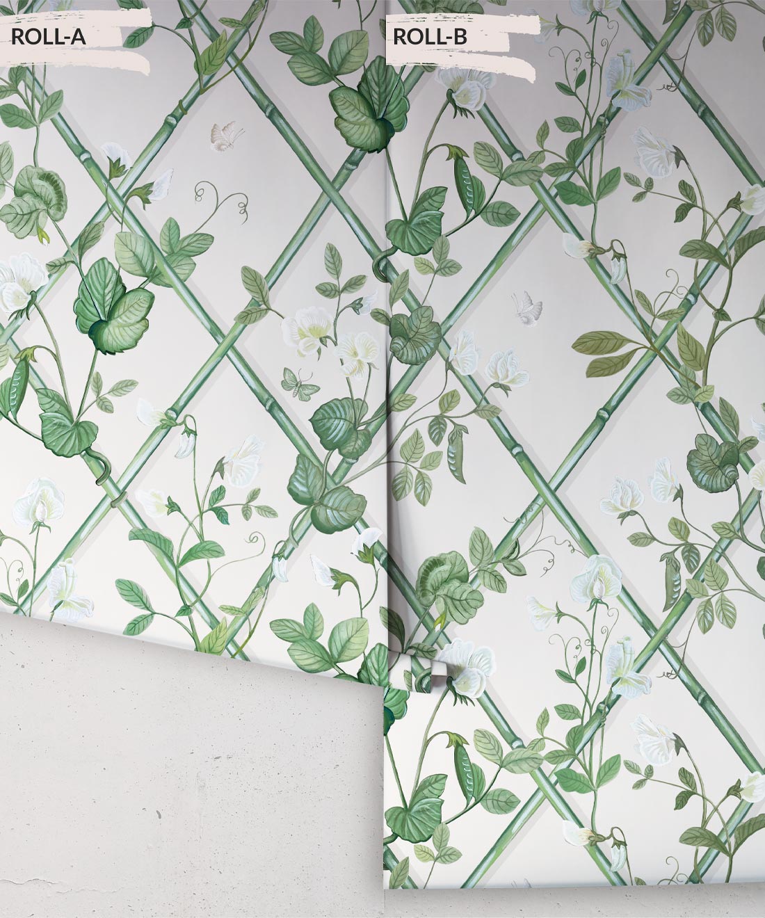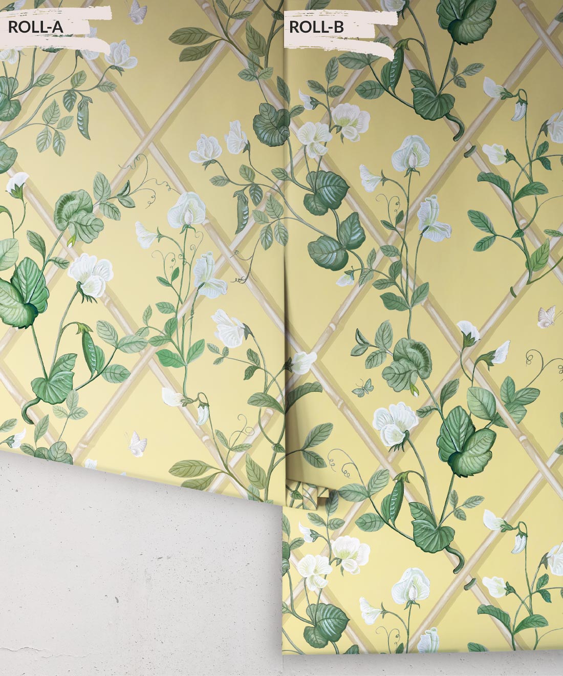 Manufactured as a double width design (set) requiring 2 rolls, A+B to complete the horizontal repeat. One set is equivalent to 133 sq. ft. or (12.3 sq. m.).