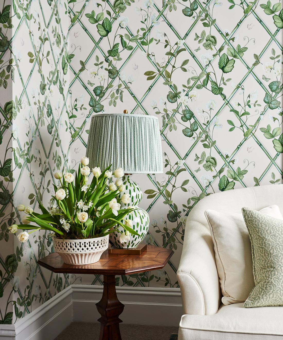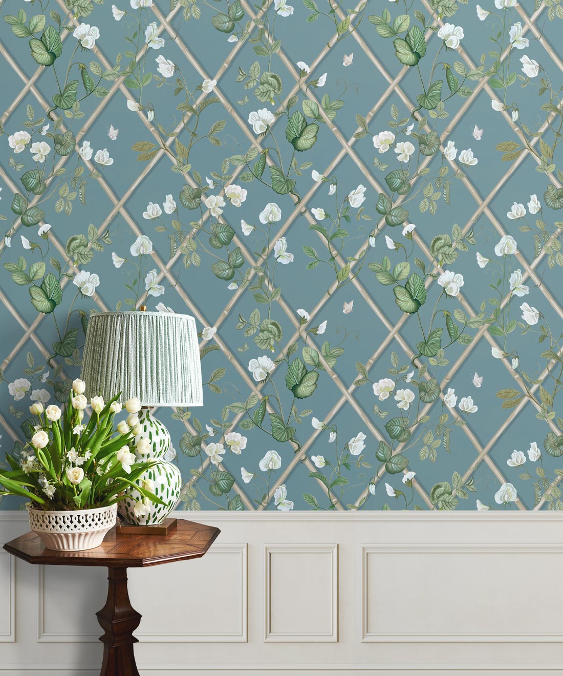 The Grande Climbing Sweet Pea Wallpaper from Maine House Interiors is a larger-than-life tribute to a delicate floral from designer Amy Spargo’s very own backyard. Each meticulously hand-painted detail captures the essence of sweet pea flowers in various stages of growth, showcasing their charm and exquisite form. Intertwining vines and blossoming flowers create an enchanting backdrop that will make your interior feel more sophisticated, tranquil and add a touch of botanical splendour. Available in a range of colourways to suit all interiors, from rich, moody blues to soft, airy pastels and creams.