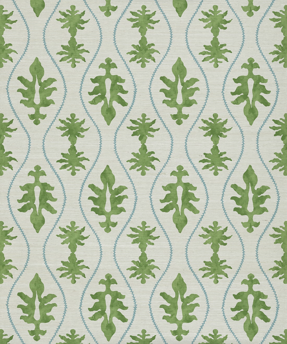 Great Jones brings together leaf-like forms and subtle vertical waves to create a serene yet structured design. Drawing inspiration from Indian woodblock traditions, the pattern introduces movement and texture that enhance the sense of height in a room. Ideal for larger spaces, this wallpaper adds depth, vibrancy, and a natural sense of rhythm to any interior.