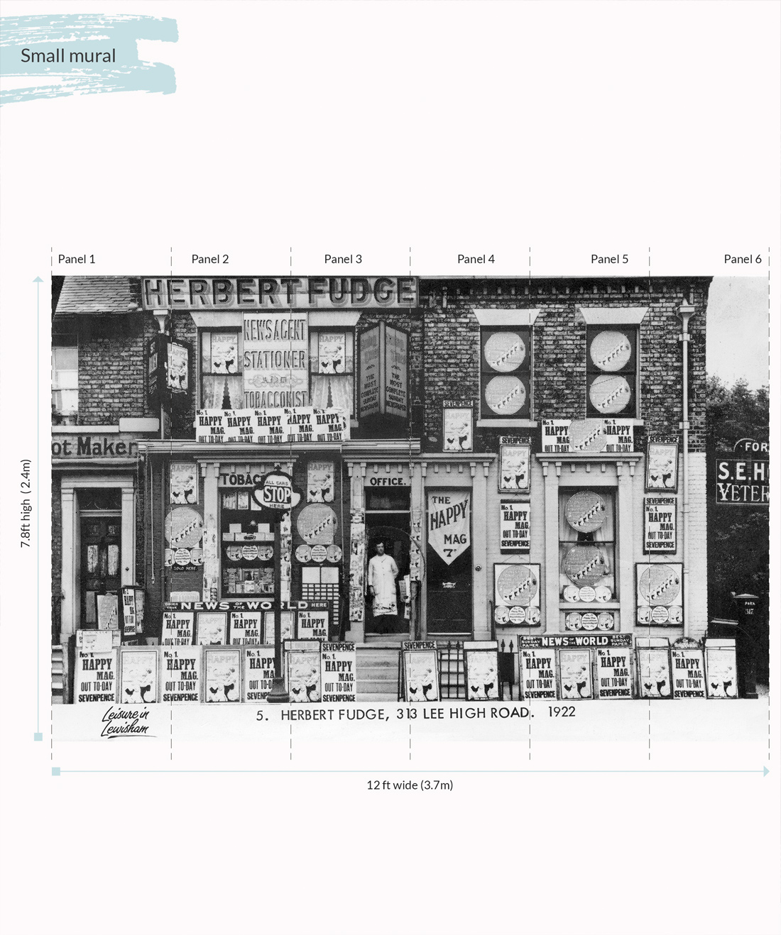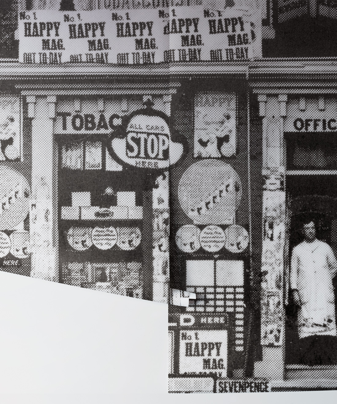 This halftone newsprint mural depicts your neighbourhood general store of yesteryear. Sure to service any of your immediate needs, be it milk, the newspaper or bread, Herbert’s has you covered. Now brought into your home with this black & white vintage mural.