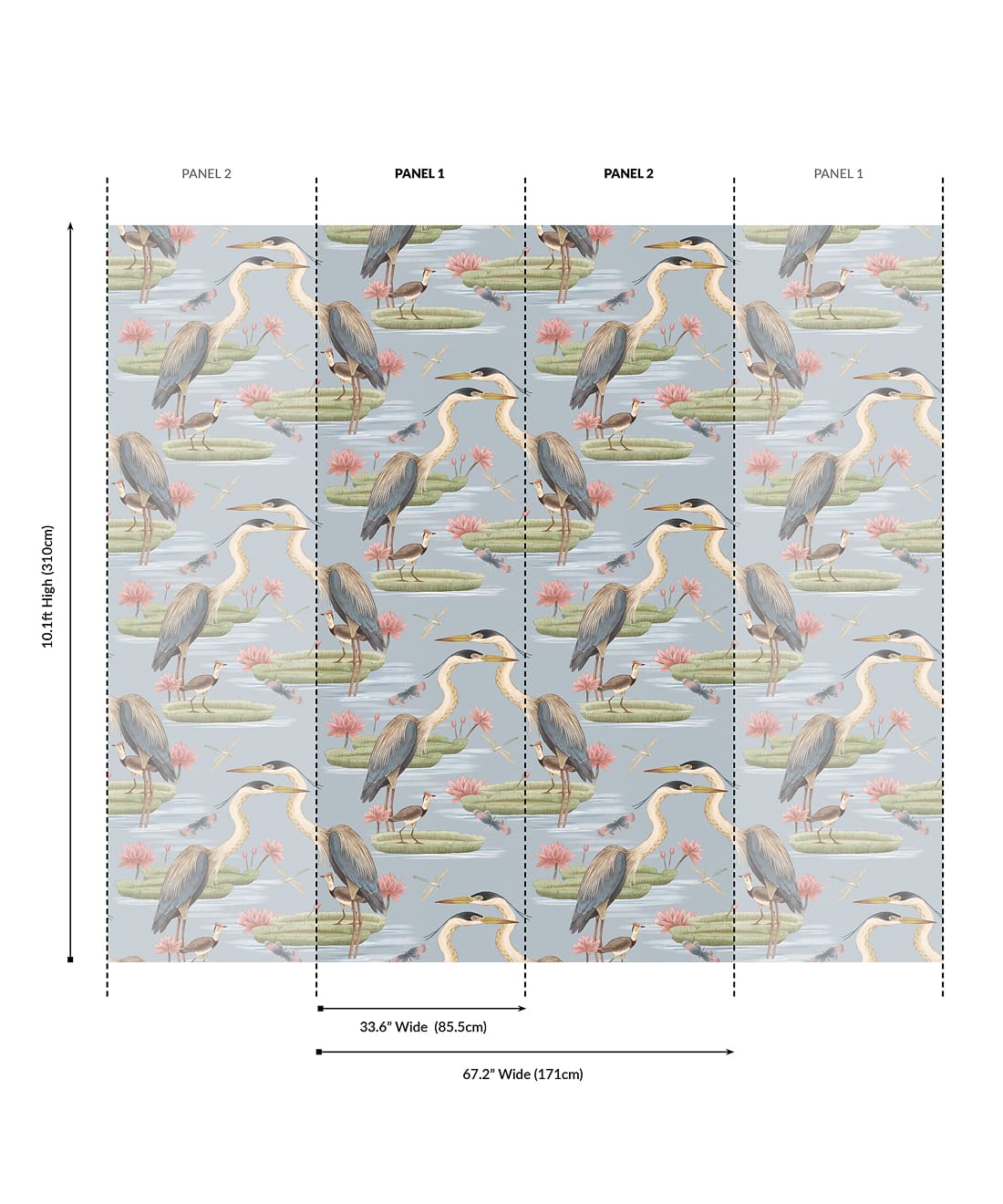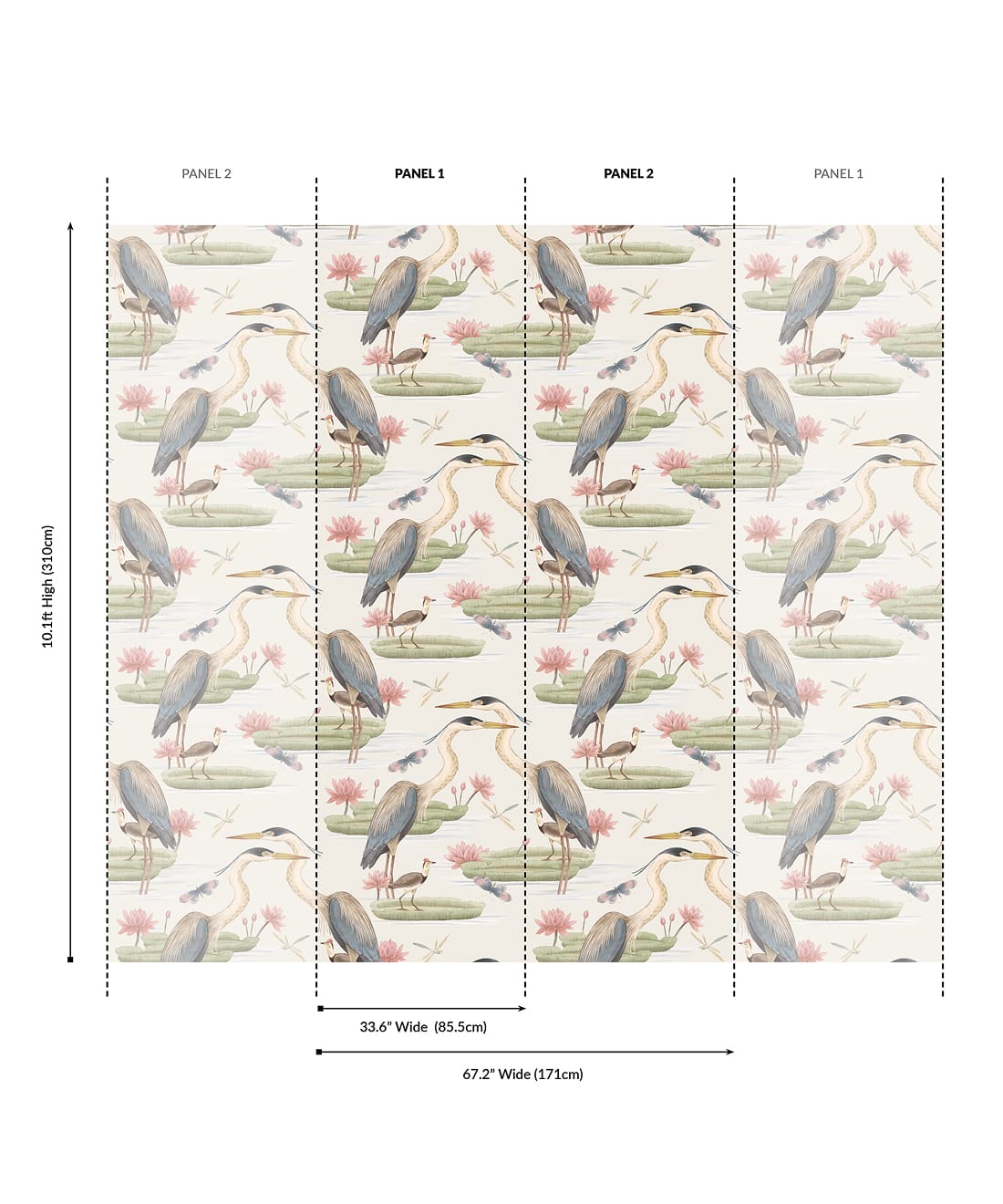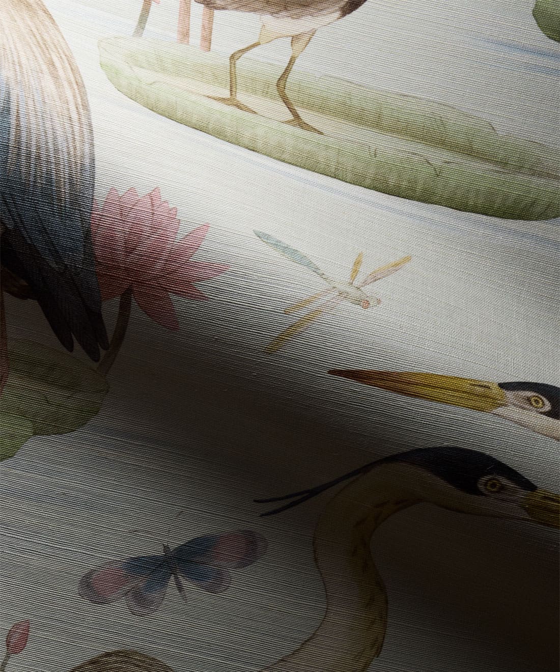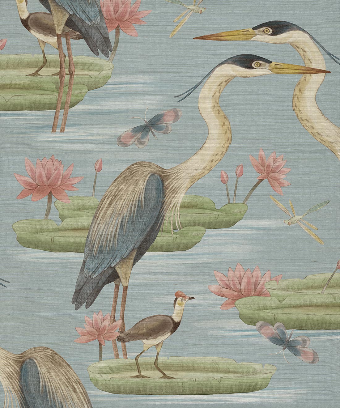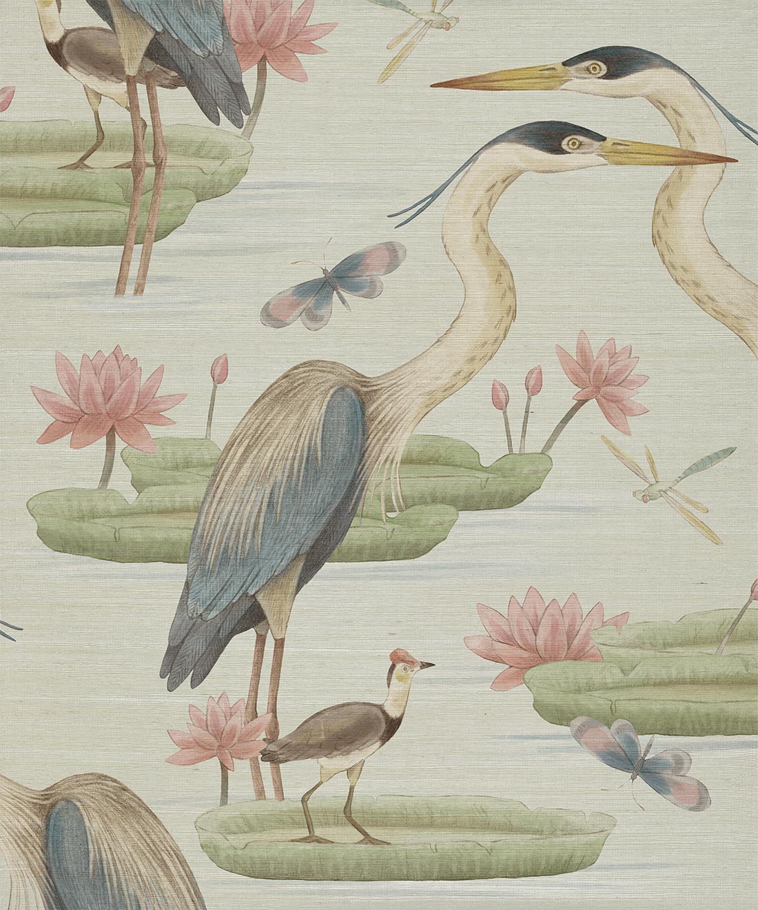Heron, Jacana & Giant Lilypad Grasscloth Wallpaper