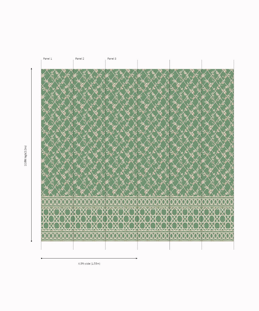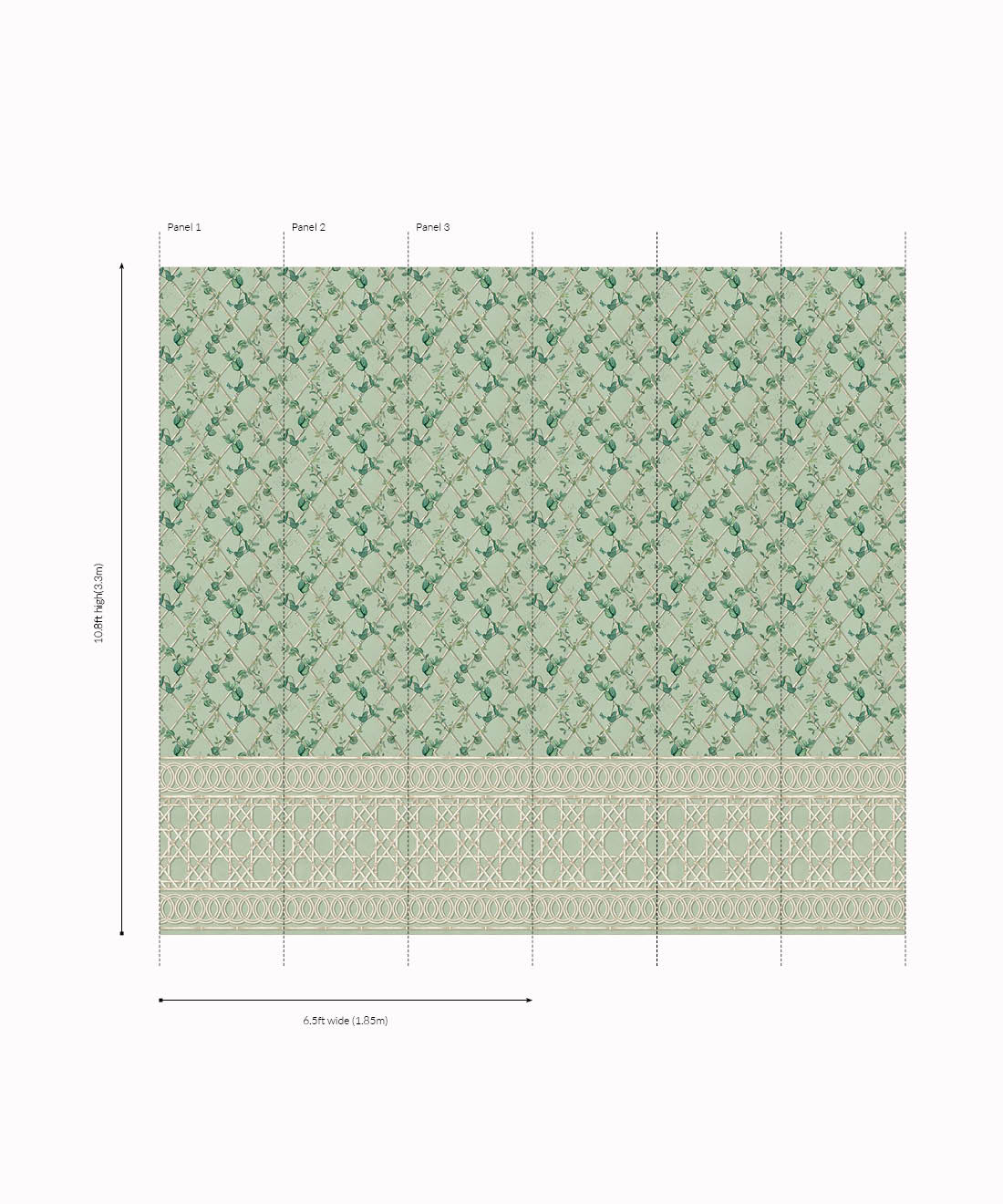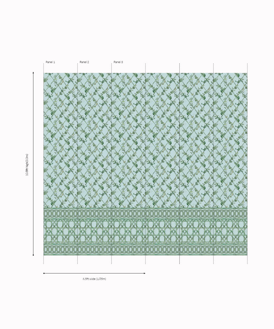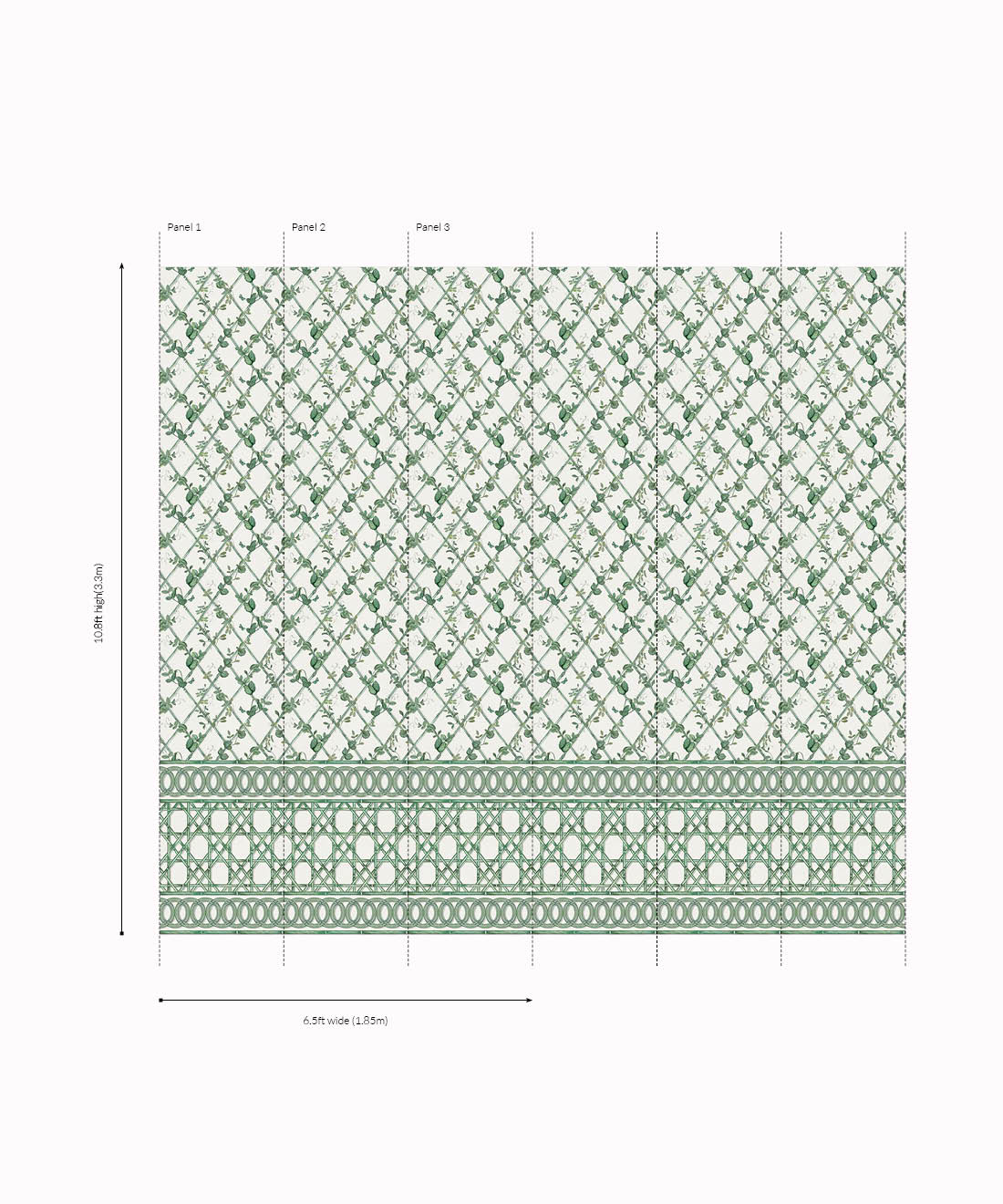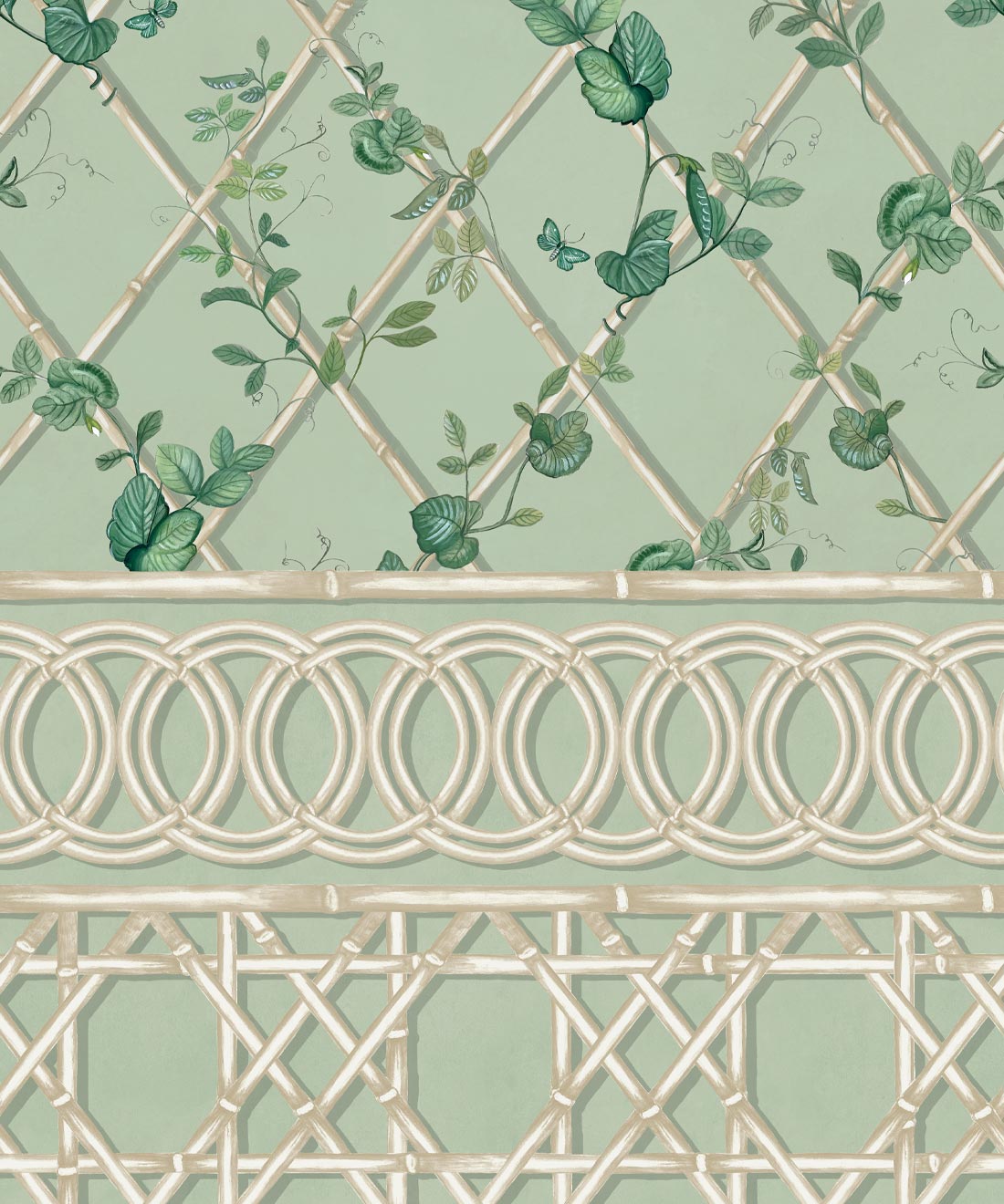 The Ivy Frieze Mural from Maine House Interiors is a captivating design that will add depth and sophistication to any space. Transform your interior into a relaxing garden pavilion with this beautifully hand-painted design, which perfectly captures the tranquil allure and organic appeal of ivy vines intertwining around a bamboo trellis. Connect with nature and create a rejuvenating and relaxing interior with the lush greenery of the ivy plant, a beloved symbol of growth and vitality. Add a touch of architectural elegance and sophistication to your space by utilizing this expertly crafted border design, which extends to a full dado height. The verdant foliage will effortlessly transport you to a serene sanctuary, where you can embrace and be nurtured by the revitalizing power of nature.