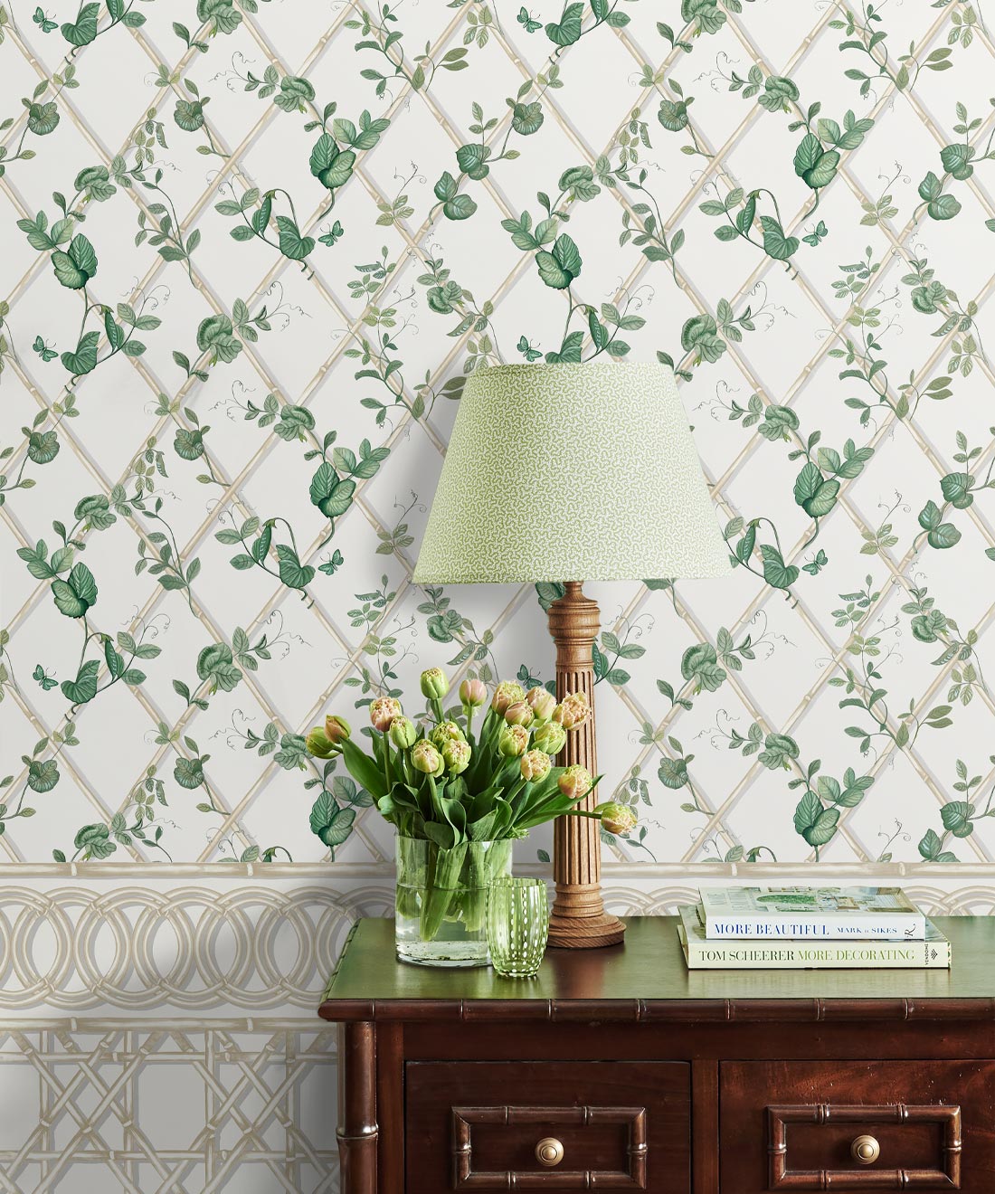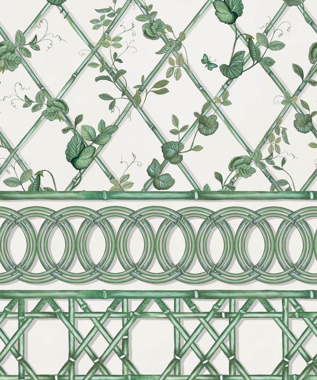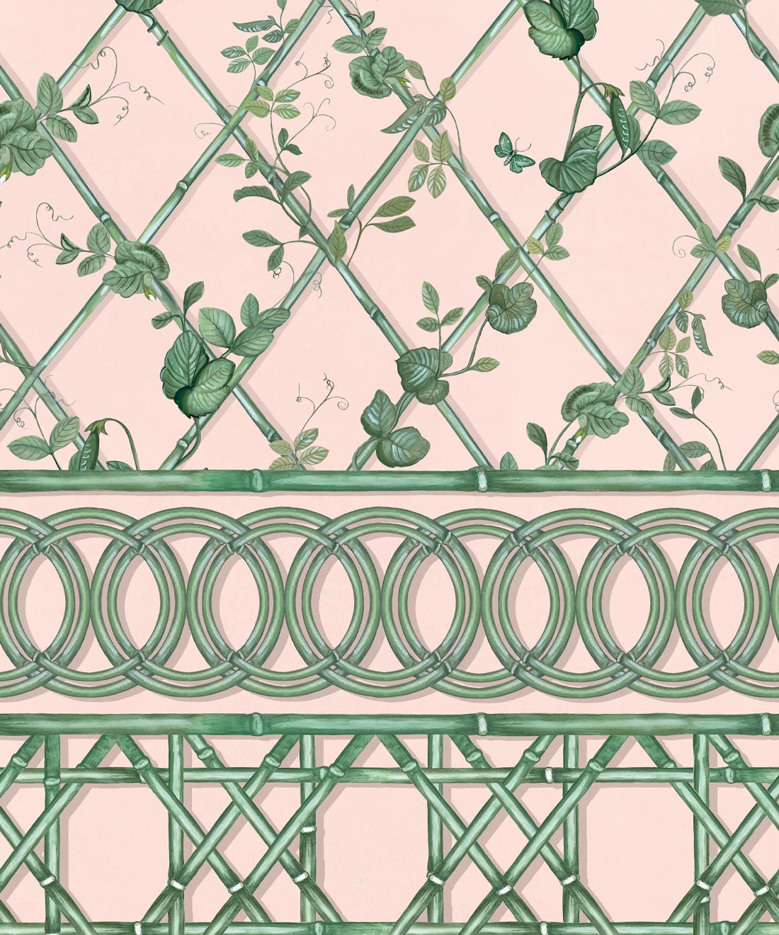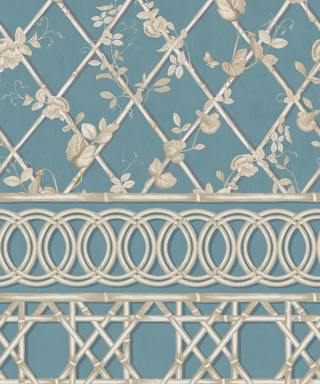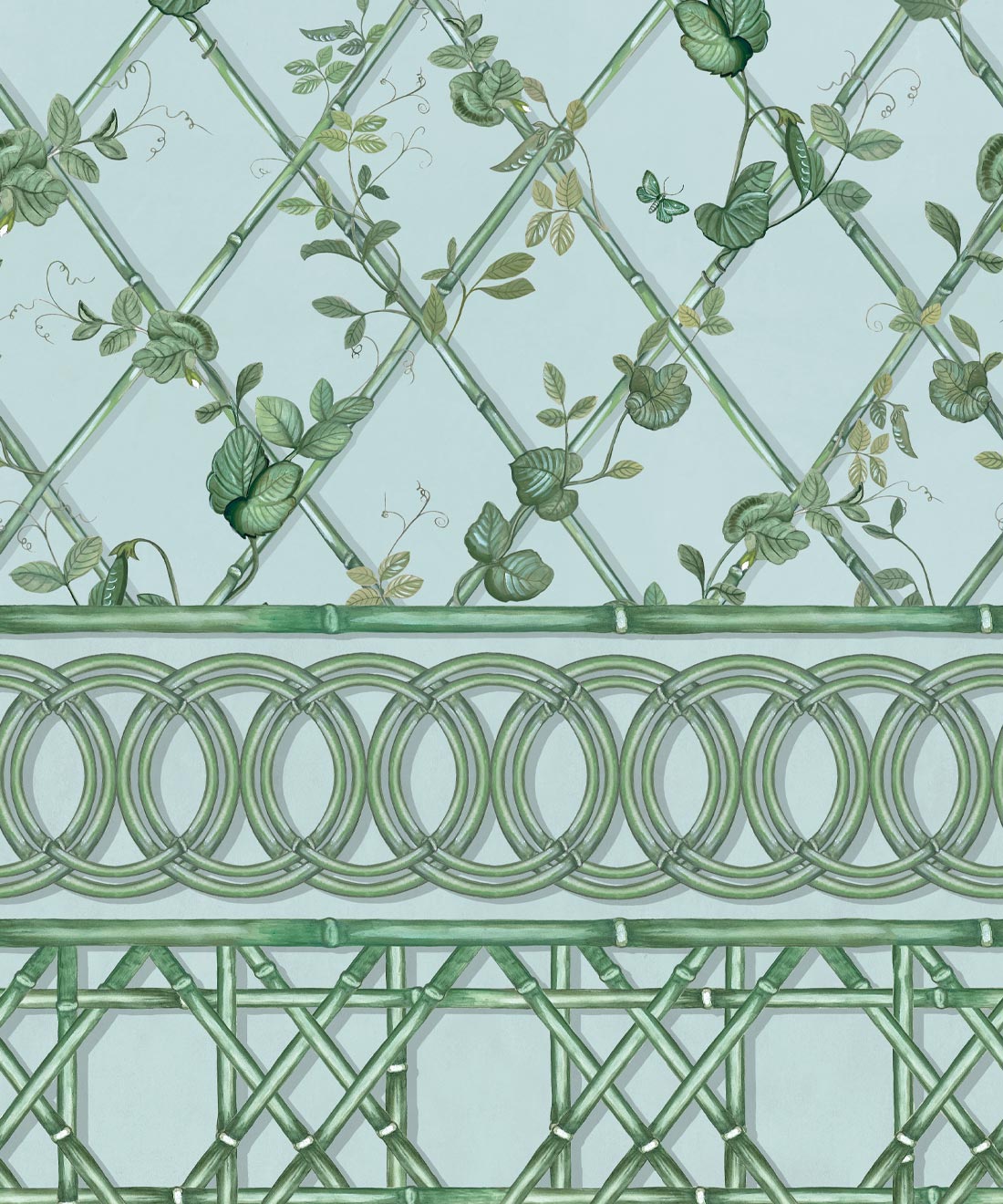 The Ivy Frieze Mural from Maine House Interiors is a captivating design that will add depth and sophistication to any space. Transform your interior into a relaxing garden pavilion with this beautifully hand-painted design, which perfectly captures the tranquil allure and organic appeal of ivy vines intertwining around a bamboo trellis. Connect with nature and create a rejuvenating and relaxing interior with the lush greenery of the ivy plant, a beloved symbol of growth and vitality. Add a touch of architectural elegance and sophistication to your space by utilizing this expertly crafted border design, which extends to a full dado height. The verdant foliage will effortlessly transport you to a serene sanctuary, where you can embrace and be nurtured by the revitalizing power of nature.