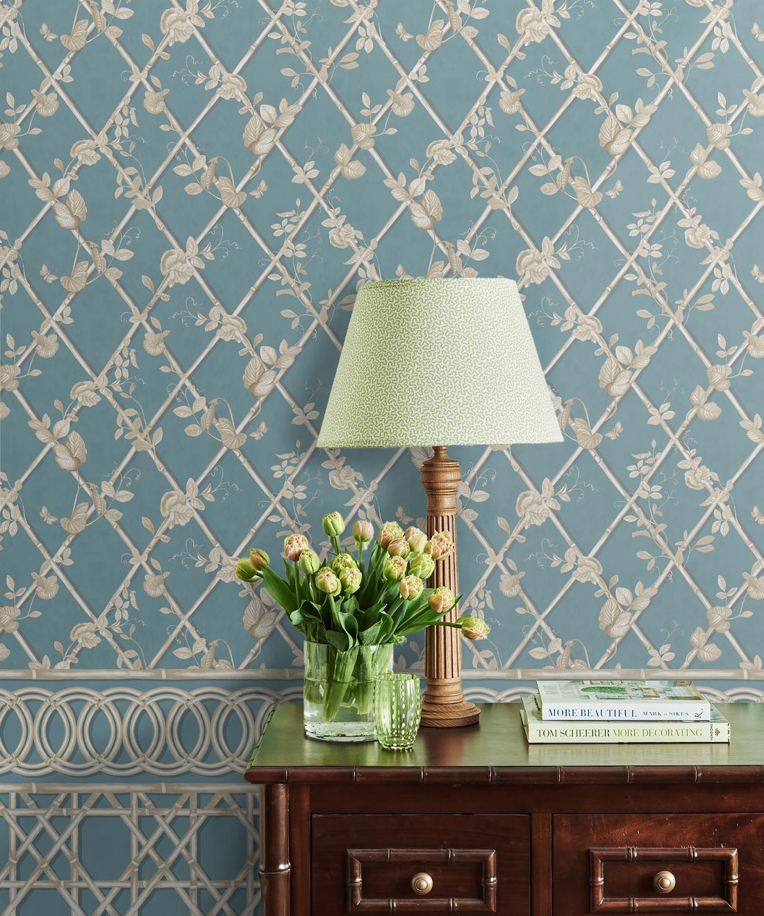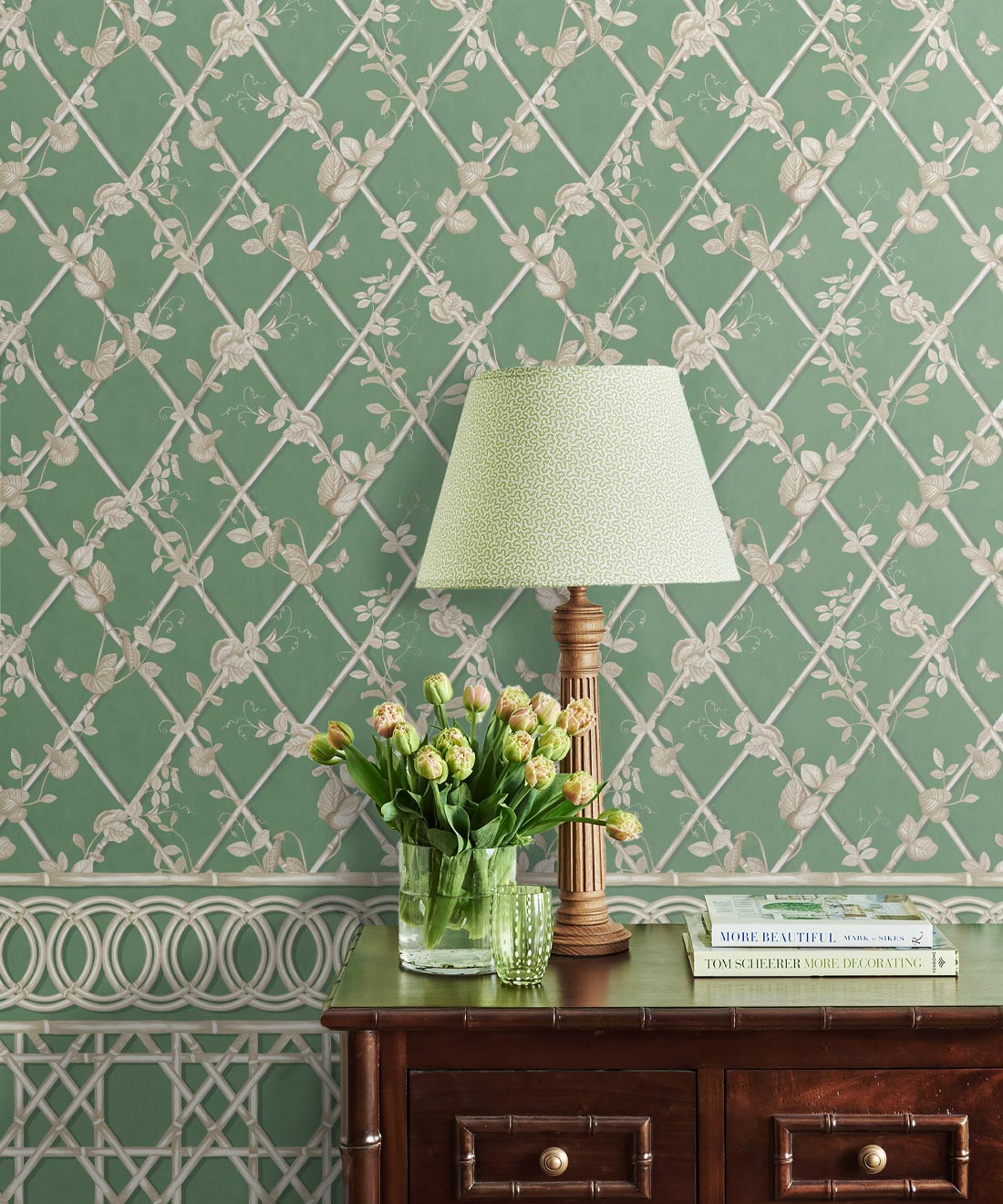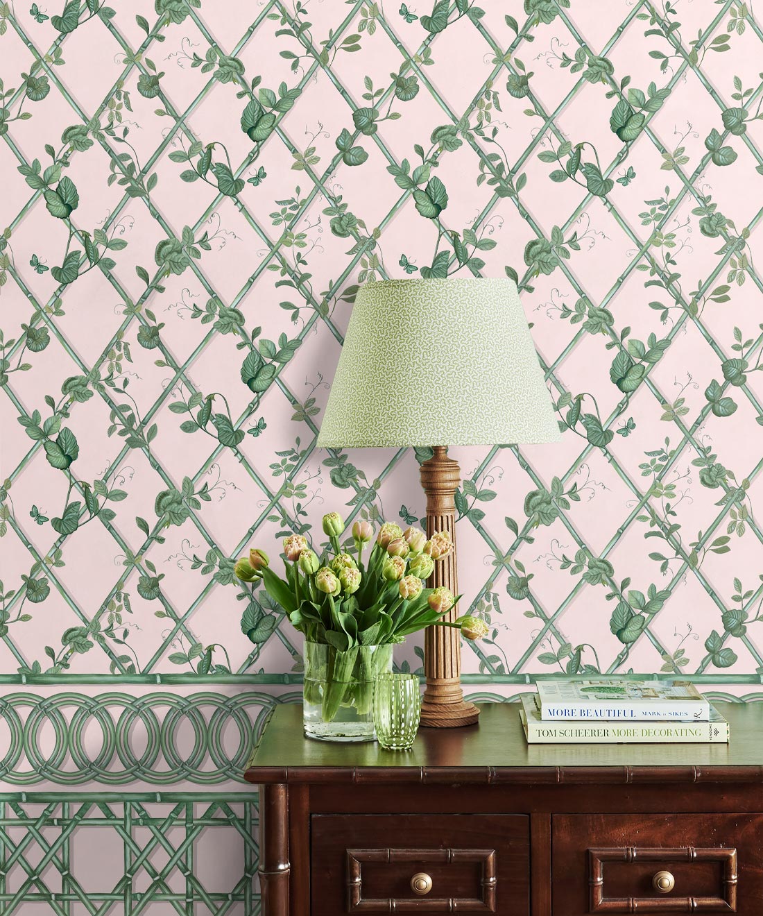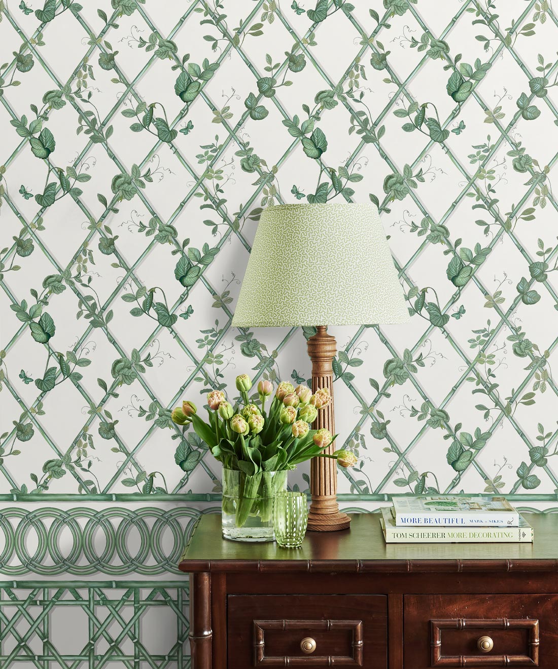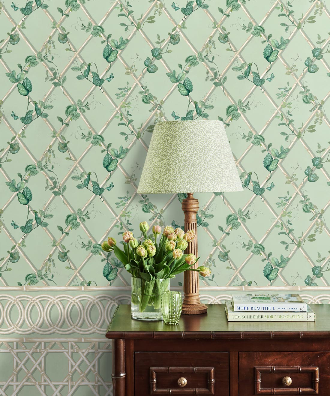 The Ivy Frieze Mural from Maine House Interiors is a captivating design that will add depth and sophistication to any space. Transform your interior into a relaxing garden pavilion with this beautifully hand-painted design, which perfectly captures the tranquil allure and organic appeal of ivy vines intertwining around a bamboo trellis. Connect with nature and create a rejuvenating and relaxing interior with the lush greenery of the ivy plant, a beloved symbol of growth and vitality. Add a touch of architectural elegance and sophistication to your space by utilizing this expertly crafted border design, which extends to a full dado height. The verdant foliage will effortlessly transport you to a serene sanctuary, where you can embrace and be nurtured by the revitalizing power of nature.