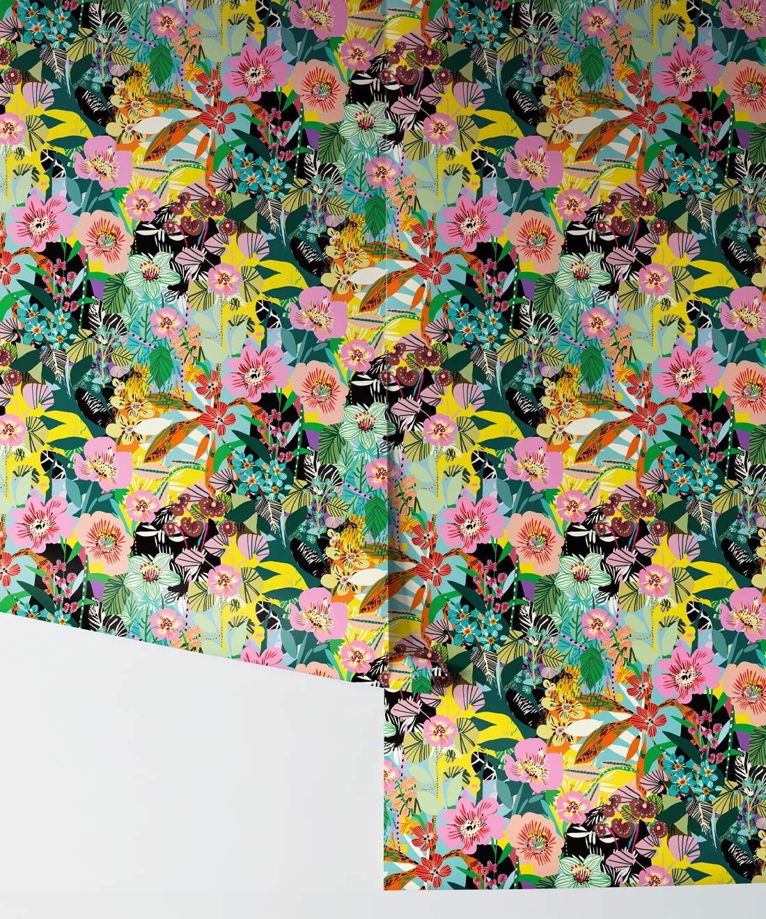 Catherine Nice, also known as Kitty McCall, is a graphic print designer with over 14 years experience in the creative industry. If there is one word that comes to mind when we see art from Kitty McCall, it's COLOR! It is undeniably the trait which explodes from her art to your eyes. But there is more to Kitty and her art than just bold color. That is only scratching the surface. Milton & King is proud to bring to you a brand new line of colorful wallpapers by Kitty McCall.