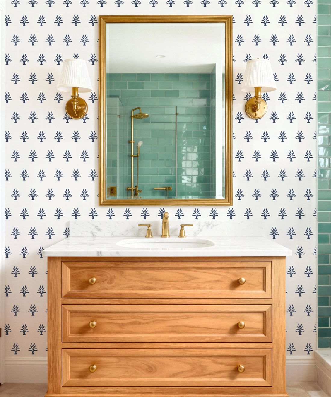 June is a petite hand-painted pattern inspired by traditional woodblock printing. Its subtle design adds texture and refinement without overpowering a space. Balancing classic craft with modern sensibility, June is perfect for layering and works beautifully in powder rooms, kitchens or bedrooms where understated pattern elevates the composition.