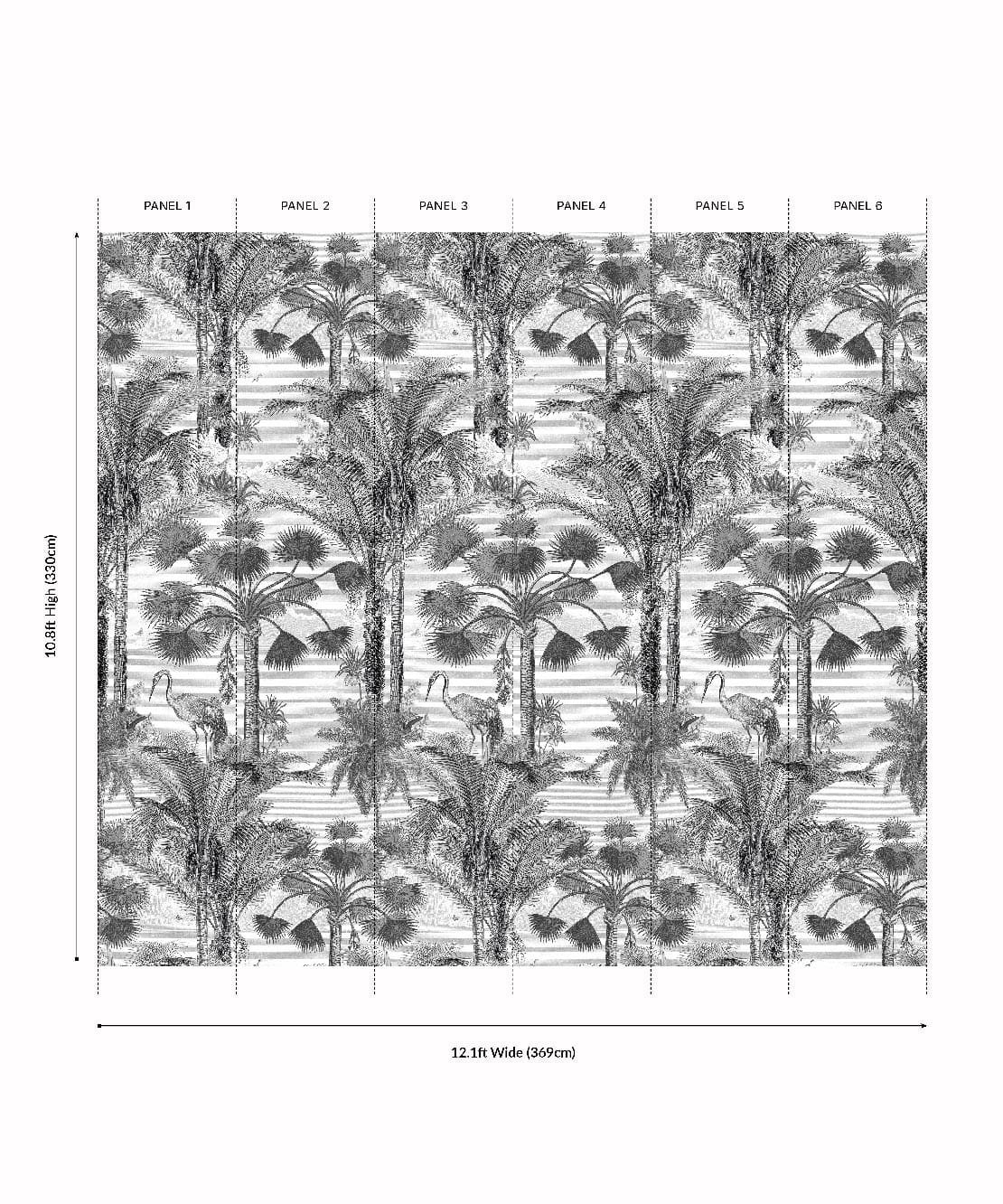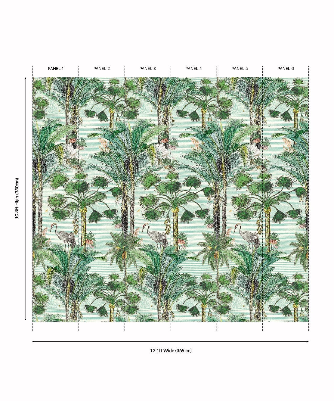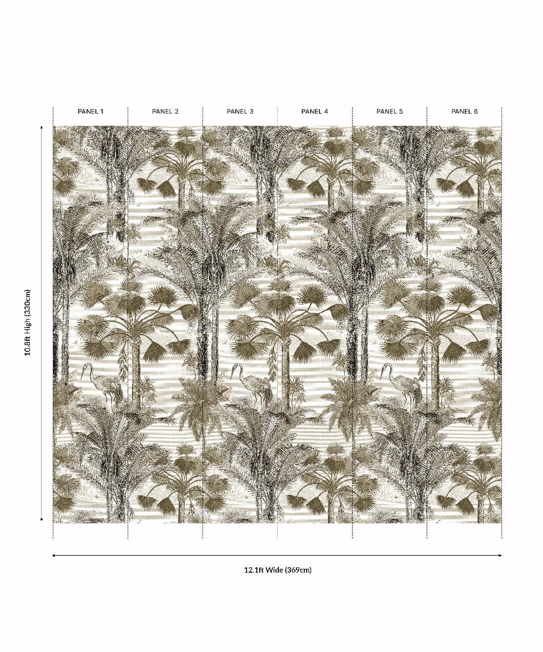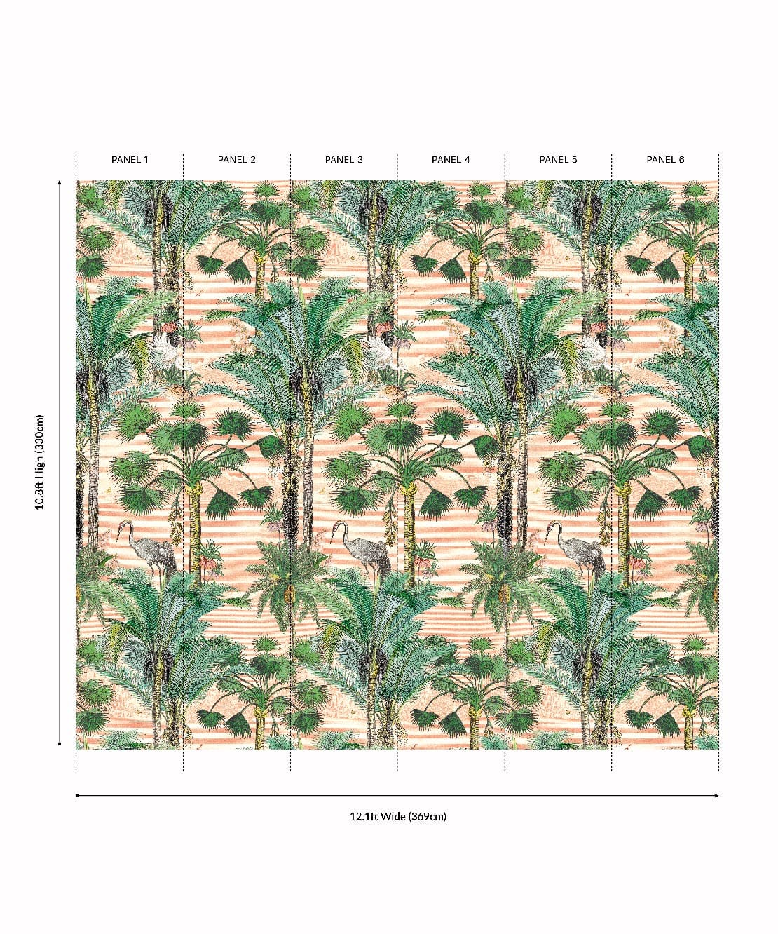 Kerala Palms really showcases the tropical palm trees in the Indian Subcontinent mural. Who doesn’t love a palm!? It also consists of birds and beautiful orchids cascading from the trees. This wallpaper is both tropical and timeless.