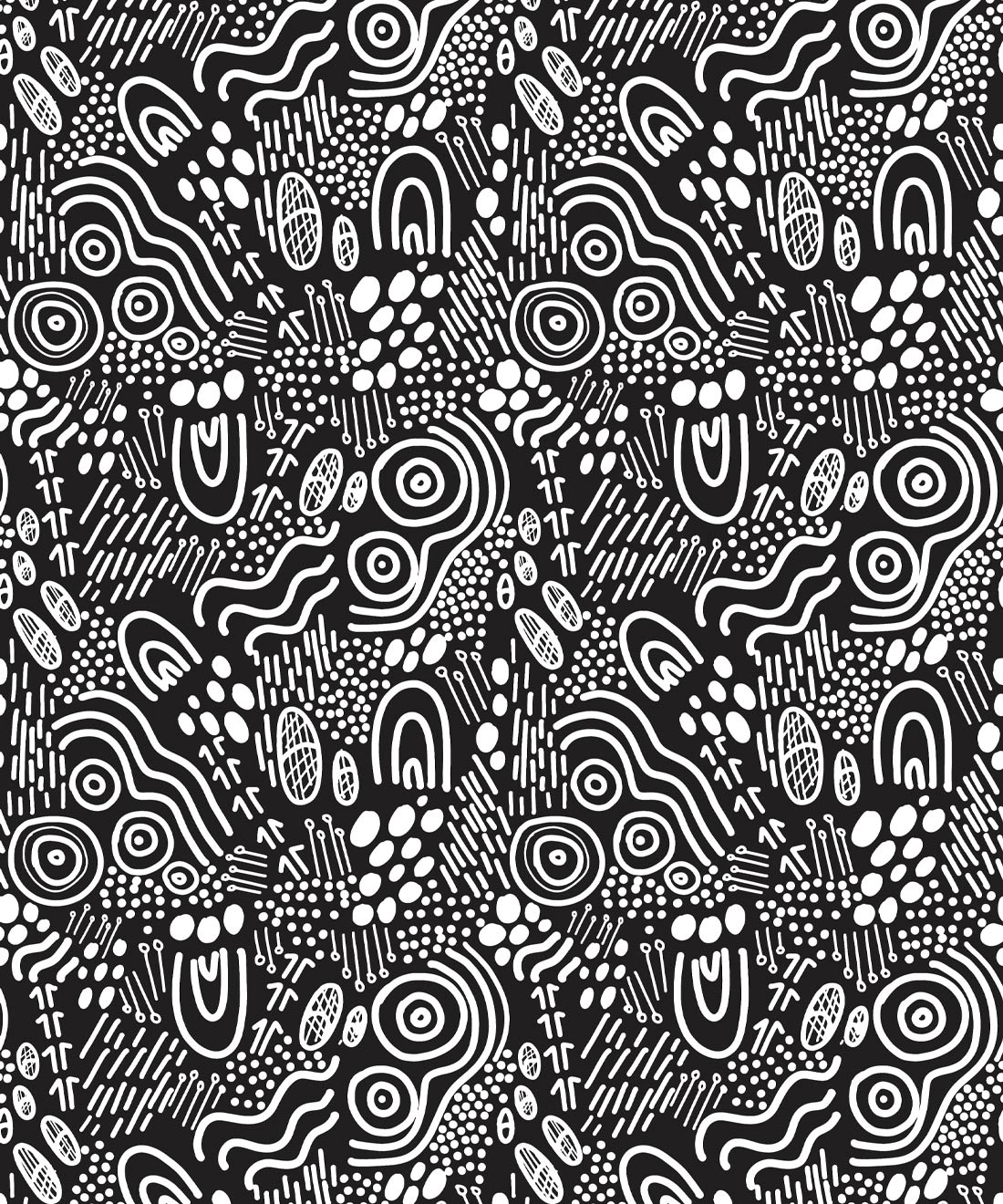 Landscapes wallpaper from Emro Designs was designed by Bidjara (Eastern Queensland, Australia) artist Sheri Skele, and features indigenous depictions of vast desert dunes, towering forests, and thundering rivers. This design is a showcase of the ever-changing Australian landscape, which is integral in shaping the unique identity of its Indigenous peoples. Landscapes perfectly captures the diversity of the plant and animal life Australia is known for, with scattered animal tracks across outback plains, human footprints in low tide, and bushlands ravaged by wildfire all coming together to show the country’s ever-changing climates and natural environment. A worldly addition to any living room or bedroom, this design is available in four colors to suit a range of interiors.
