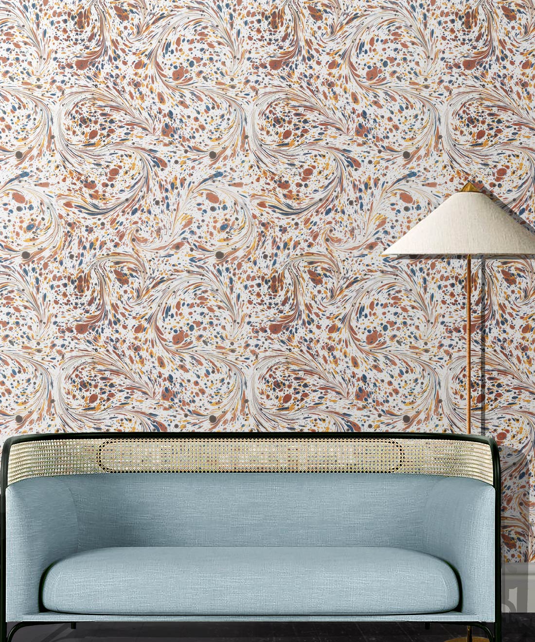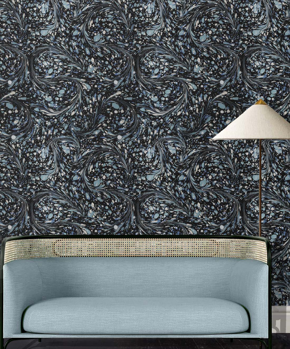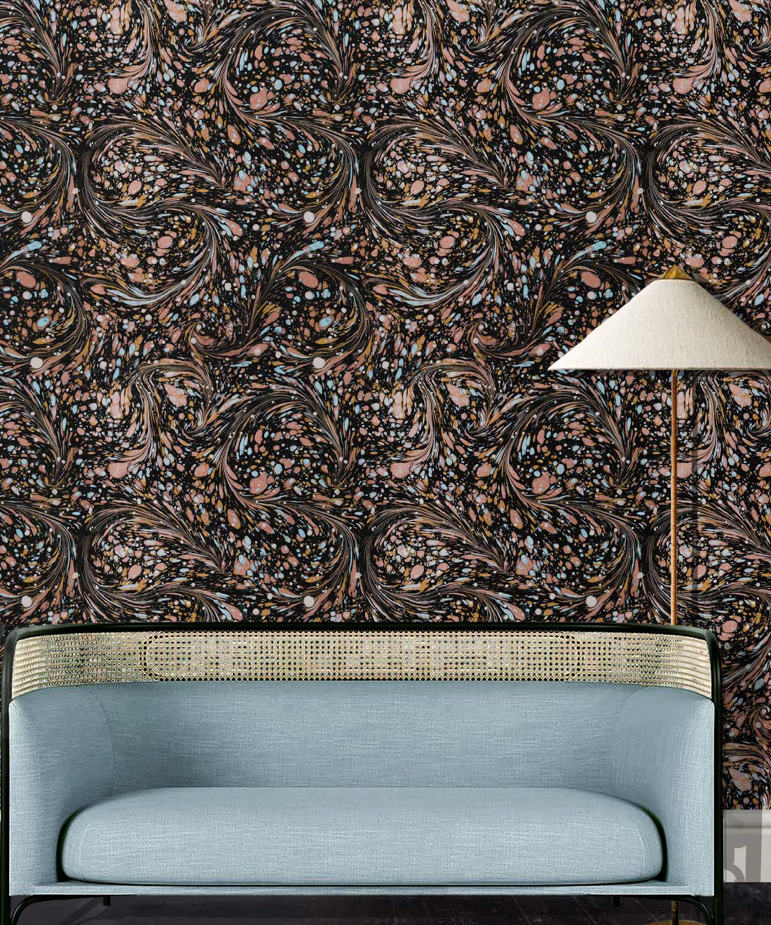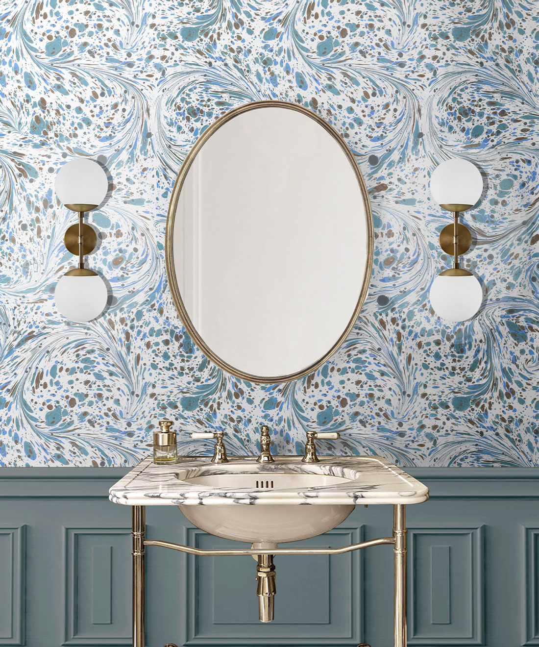 Designer Bethany Linz’s favourite pattern from her 2022 Marbling Collection, Marble Swirls wallpaper, is reminiscent of flowing water and wind blowing through the trees set into stone. Created in collaboration with Japanese marbling artist Izumi, the collection is inspired by nature and its patterns and has been recreated through the use of traditional marbling techniques. The natural motion of ink in water that has been captured in this design will add a sense of movement to a space and would be a perfect addition to a bathroom or powder room.