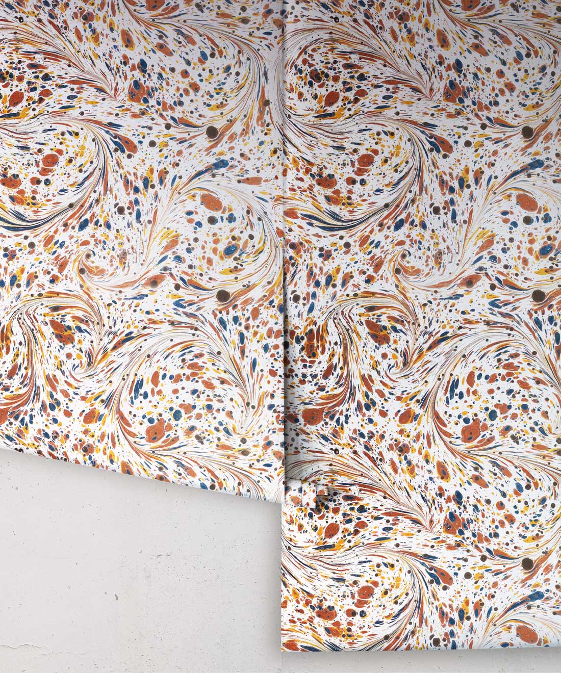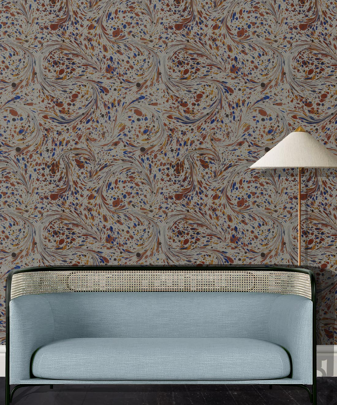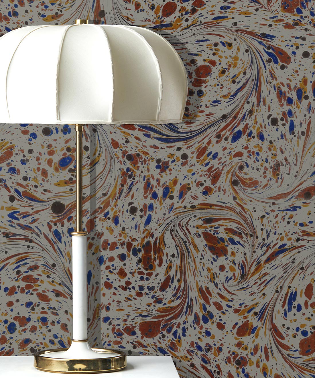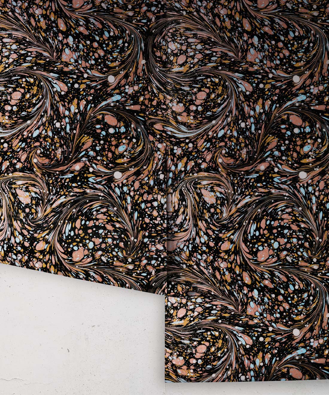 Designer Bethany Linz’s favourite pattern from her 2022 Marbling Collection, Marble Swirls wallpaper, is reminiscent of flowing water and wind blowing through the trees set into stone. Created in collaboration with Japanese marbling artist Izumi, the collection is inspired by nature and its patterns and has been recreated through the use of traditional marbling techniques. The natural motion of ink in water that has been captured in this design will add a sense of movement to a space and would be a perfect addition to a bathroom or powder room.