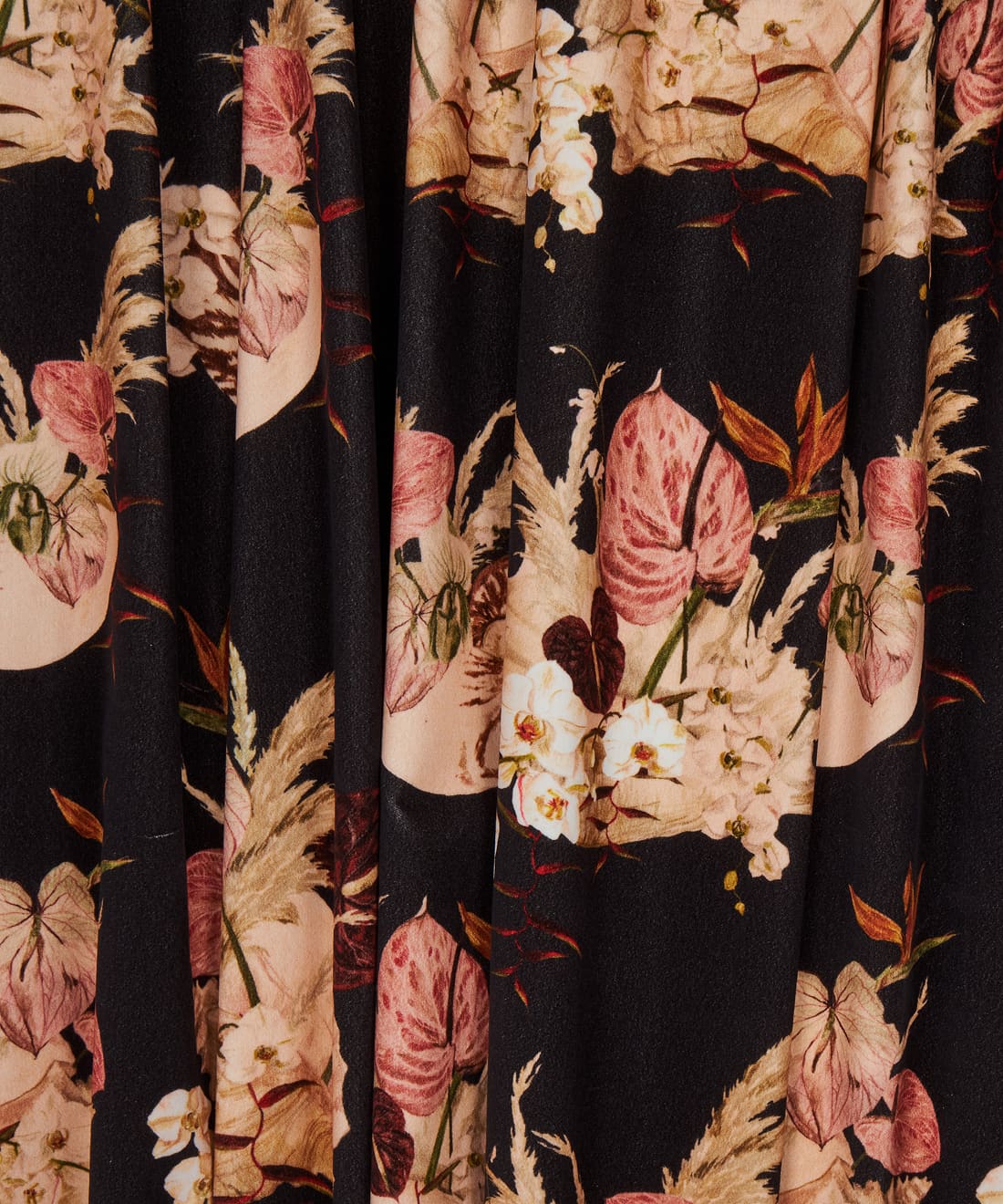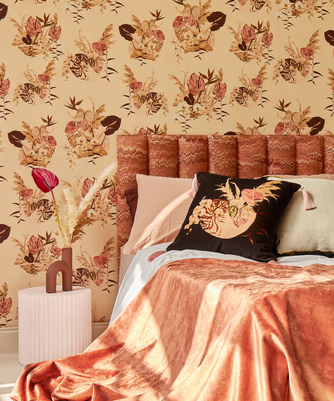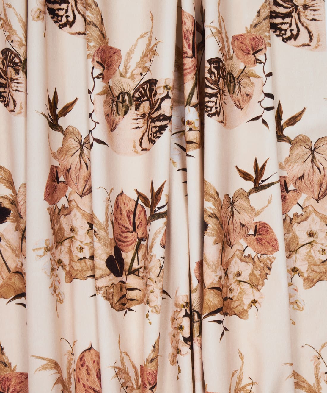 Mazzo is vintage glamour in full bloom. Exotic florals nestled in delicate shells nod to 70s and 80s Italian design with soft nostalgic colour and hand-painted detail. Designed for maximalist cushions romantic curtains and interiors that embrace layered beauty.