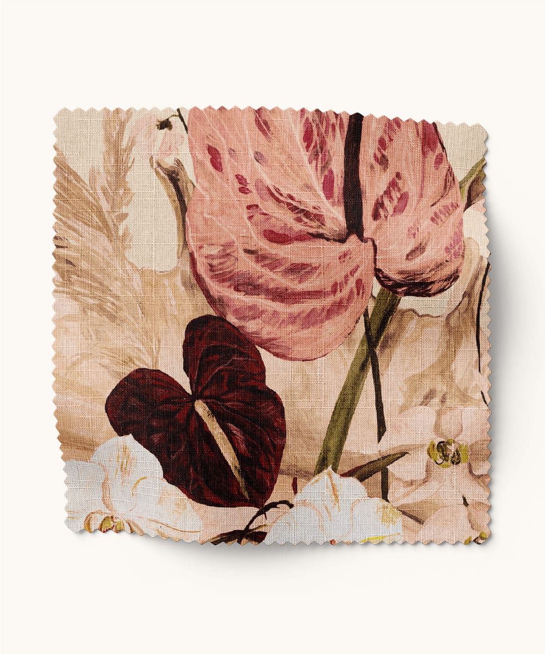 Due to the inherent properties of different textile bases, color will vary between materials. Natural fibres may display warmer undertones and subtle tonal variation compared to synthetic bases. Exact color matching across fabrics or between fabric and wallpaper cannot be guaranteed.