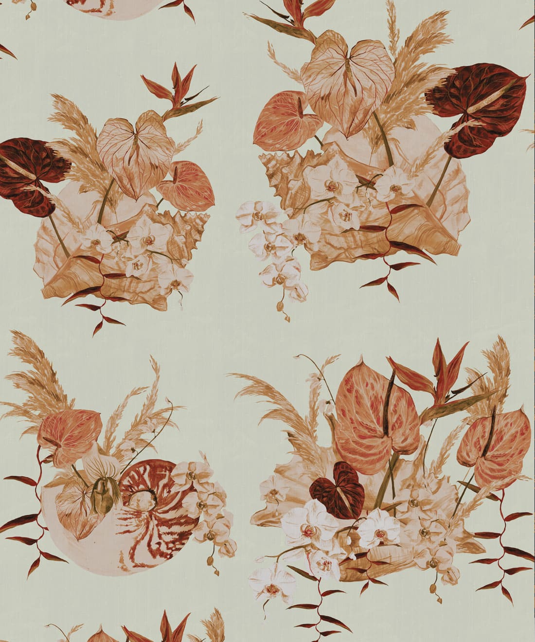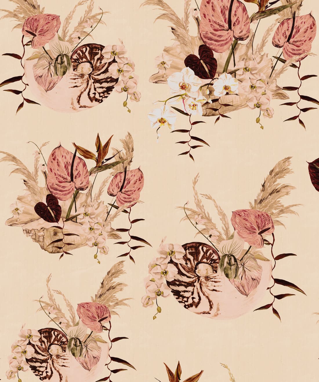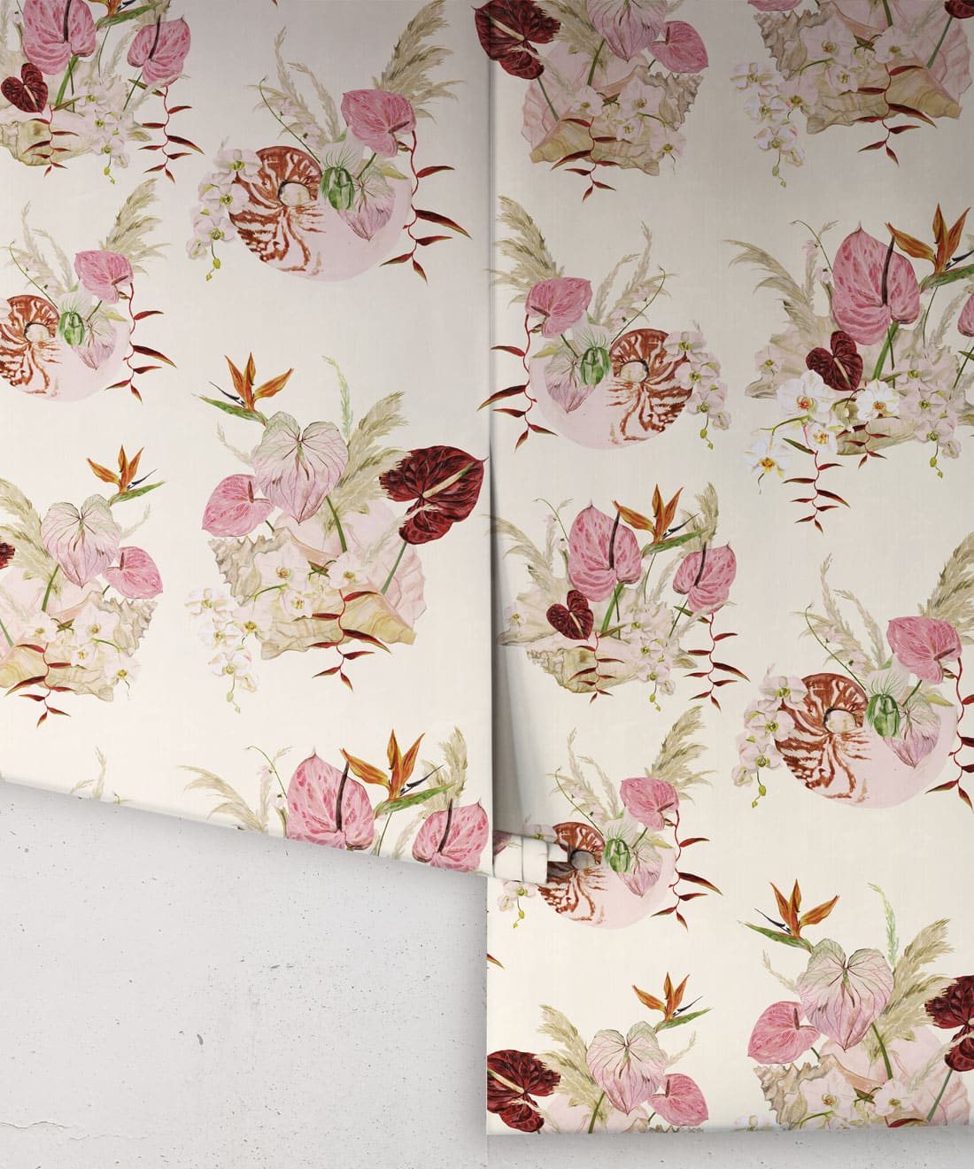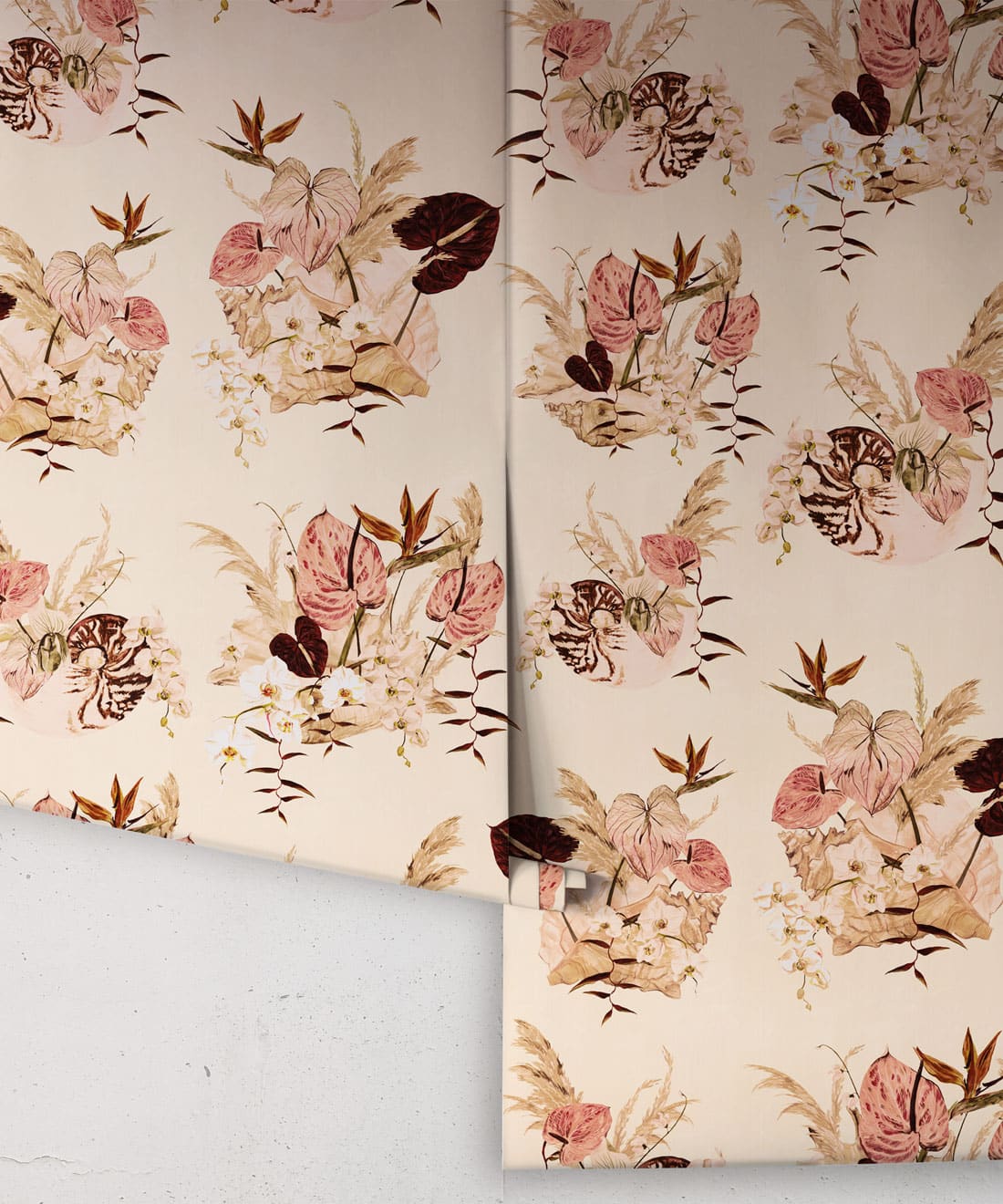 Mazzo is a celebration of vintage glamour with a playful twist. Exotic blooms nestled in delicate shells evoke the dreamy aesthetic of 70s and 80s Italian design. With ice cream tones and hand-painted detail, this print is perfect for those who love their interiors bold, nostalgic, and beautifully layered.