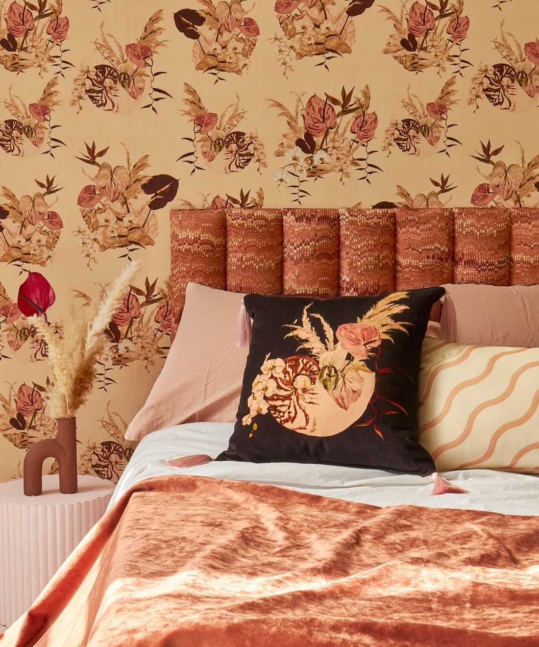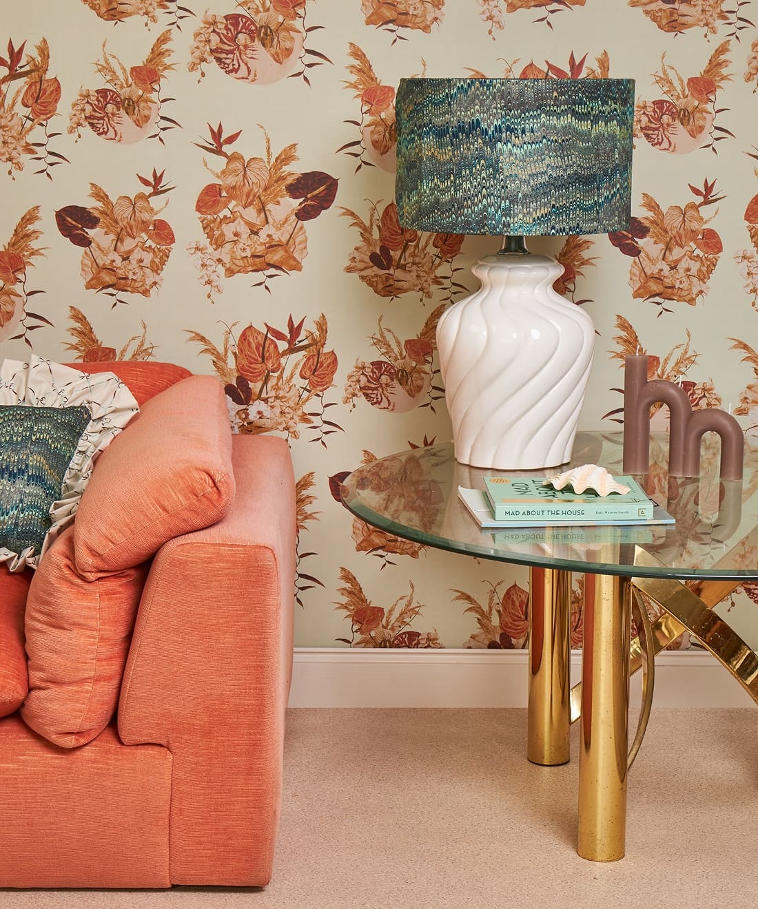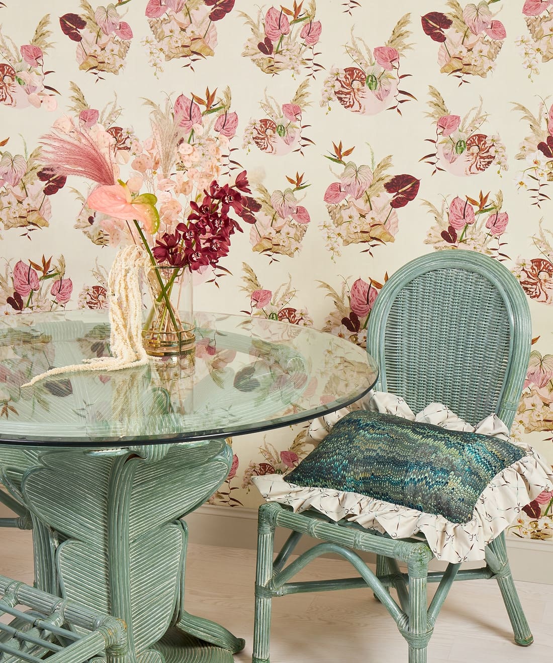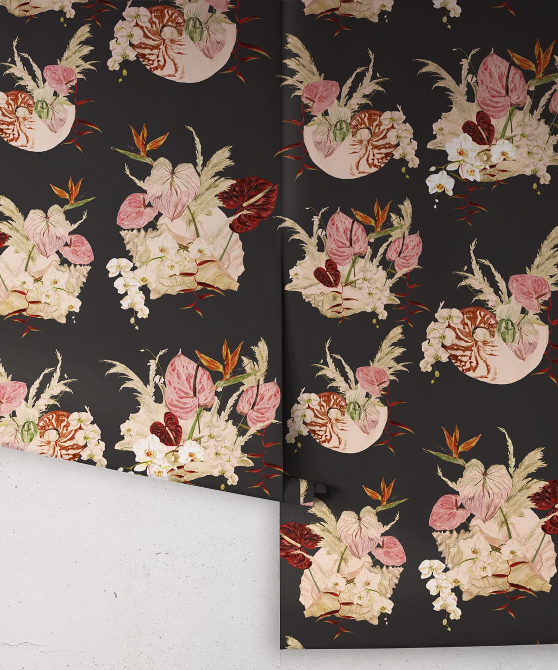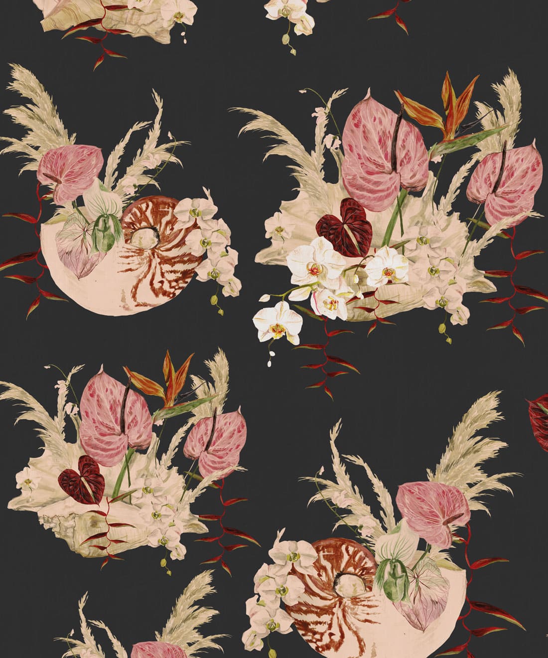 Mazzo is a celebration of vintage glamour with a playful twist. Exotic blooms nestled in delicate shells evoke the dreamy aesthetic of 70s and 80s Italian design. With ice cream tones and hand-painted detail, this print is perfect for those who love their interiors bold, nostalgic, and beautifully layered.