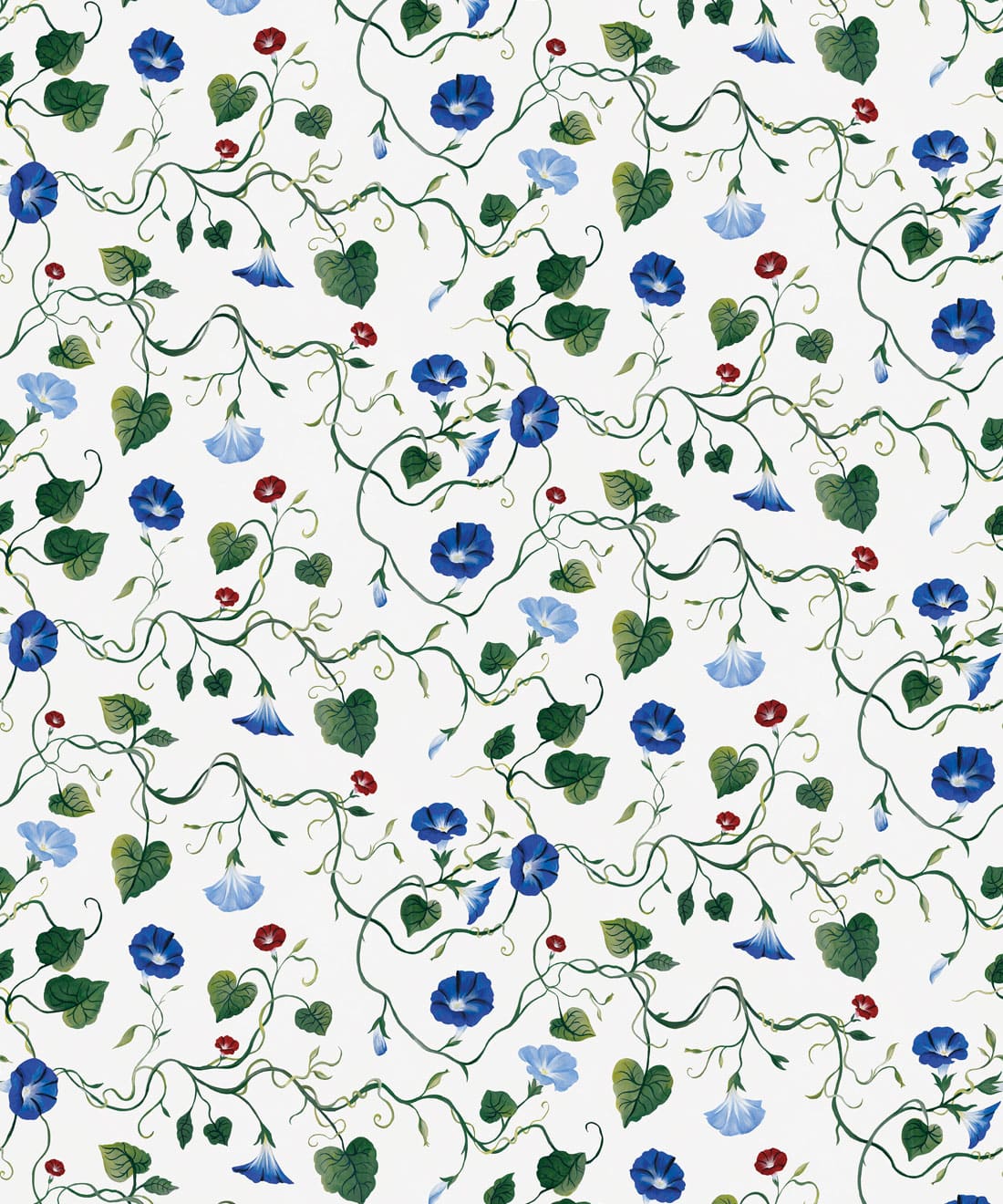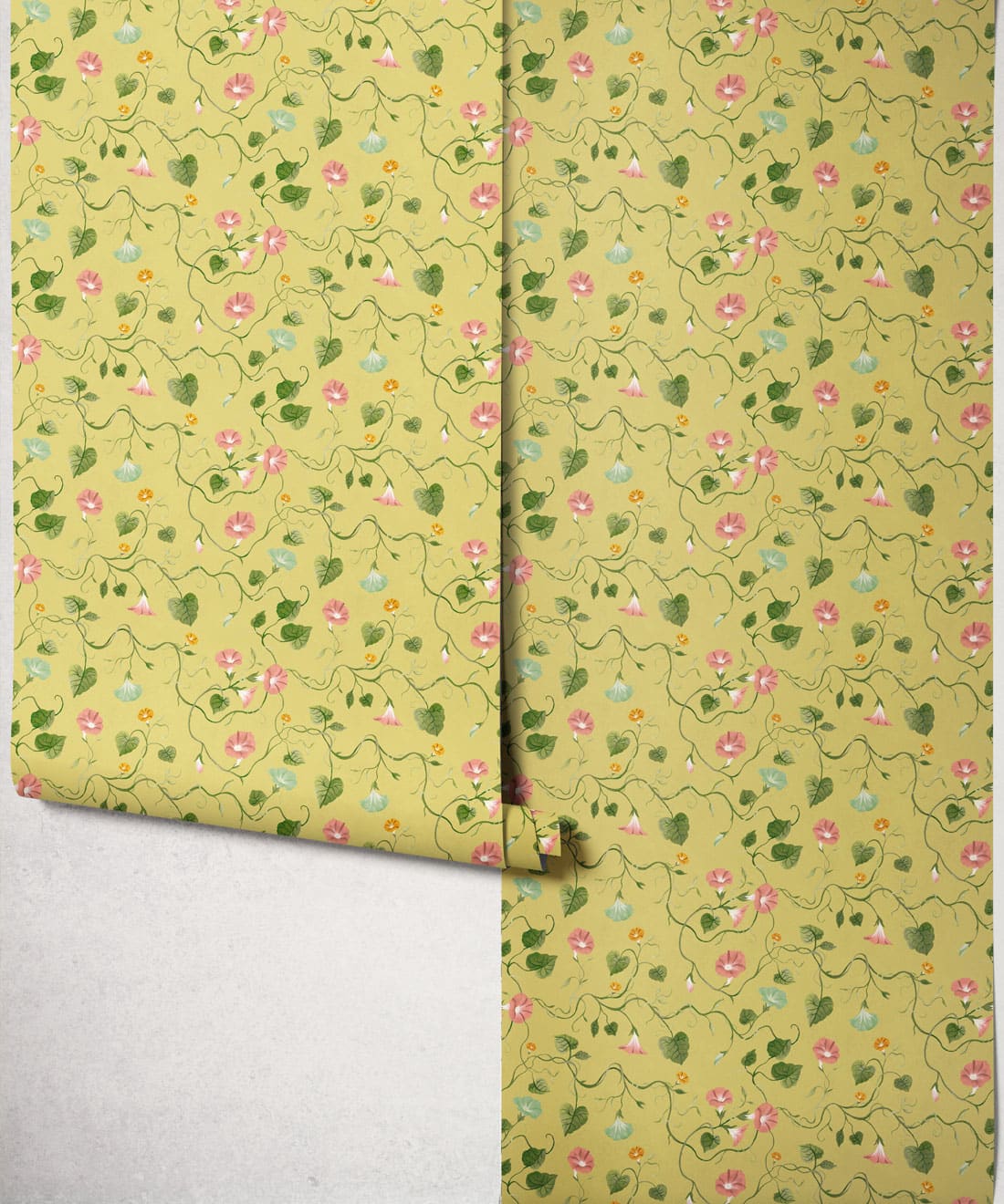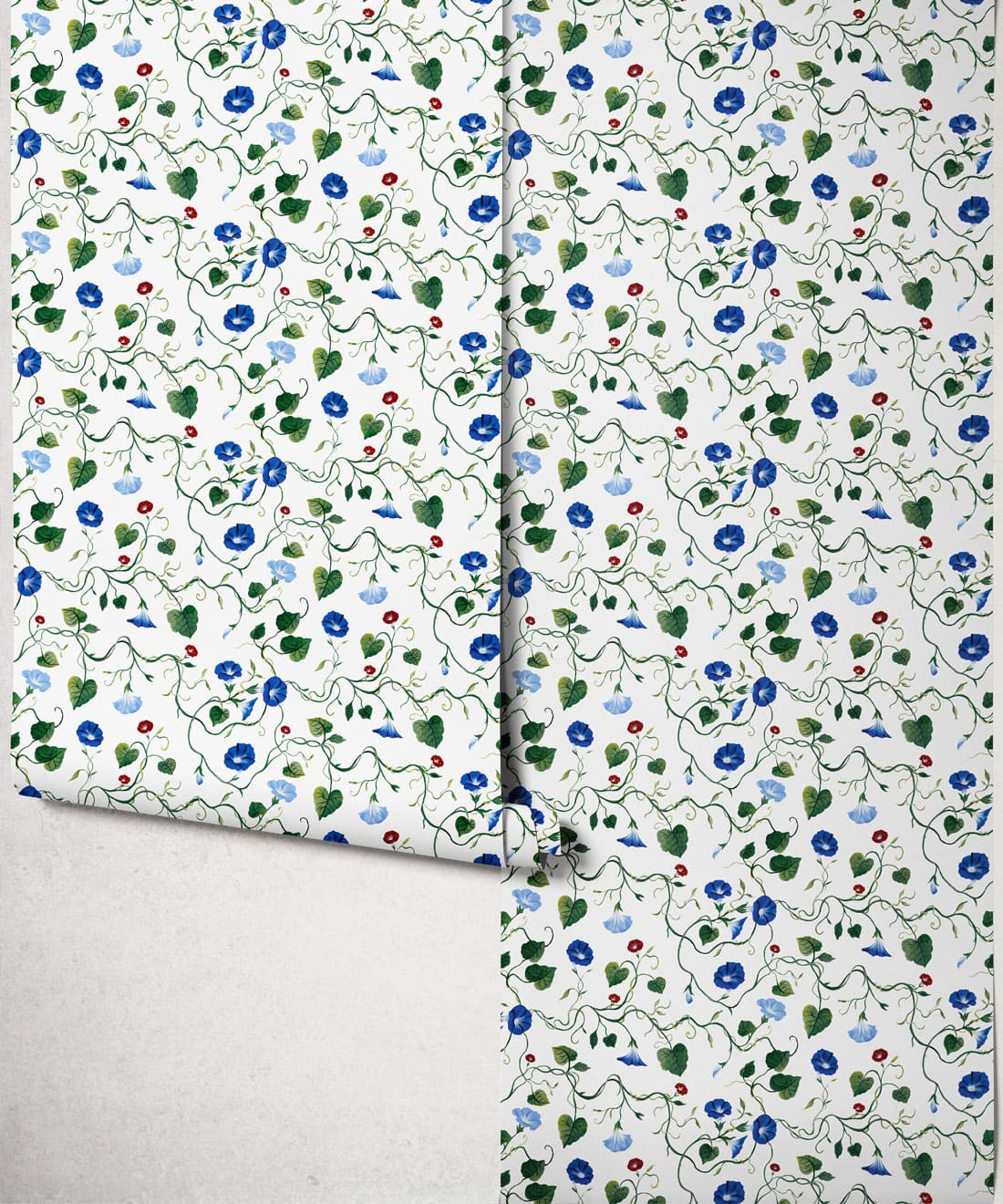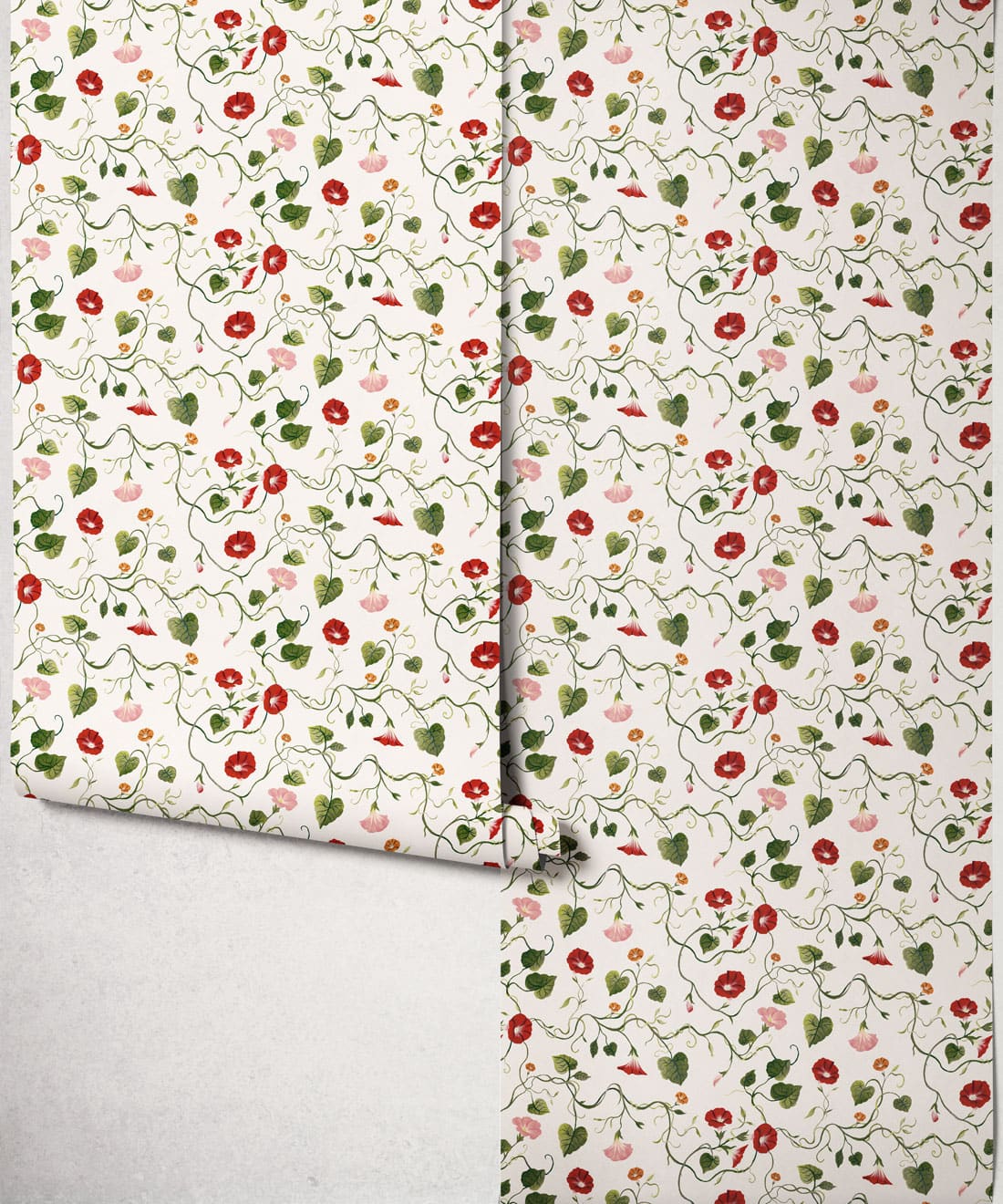 Moonflower is a botanical wallpaper inspired by the moonflower from the morning glory family. Trailing blooms and curling vines wind across the design, forming a gentle pattern of softly flowing lines.