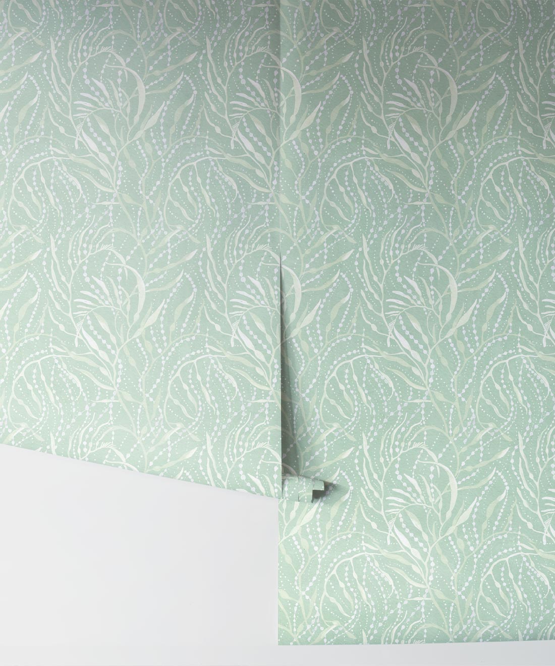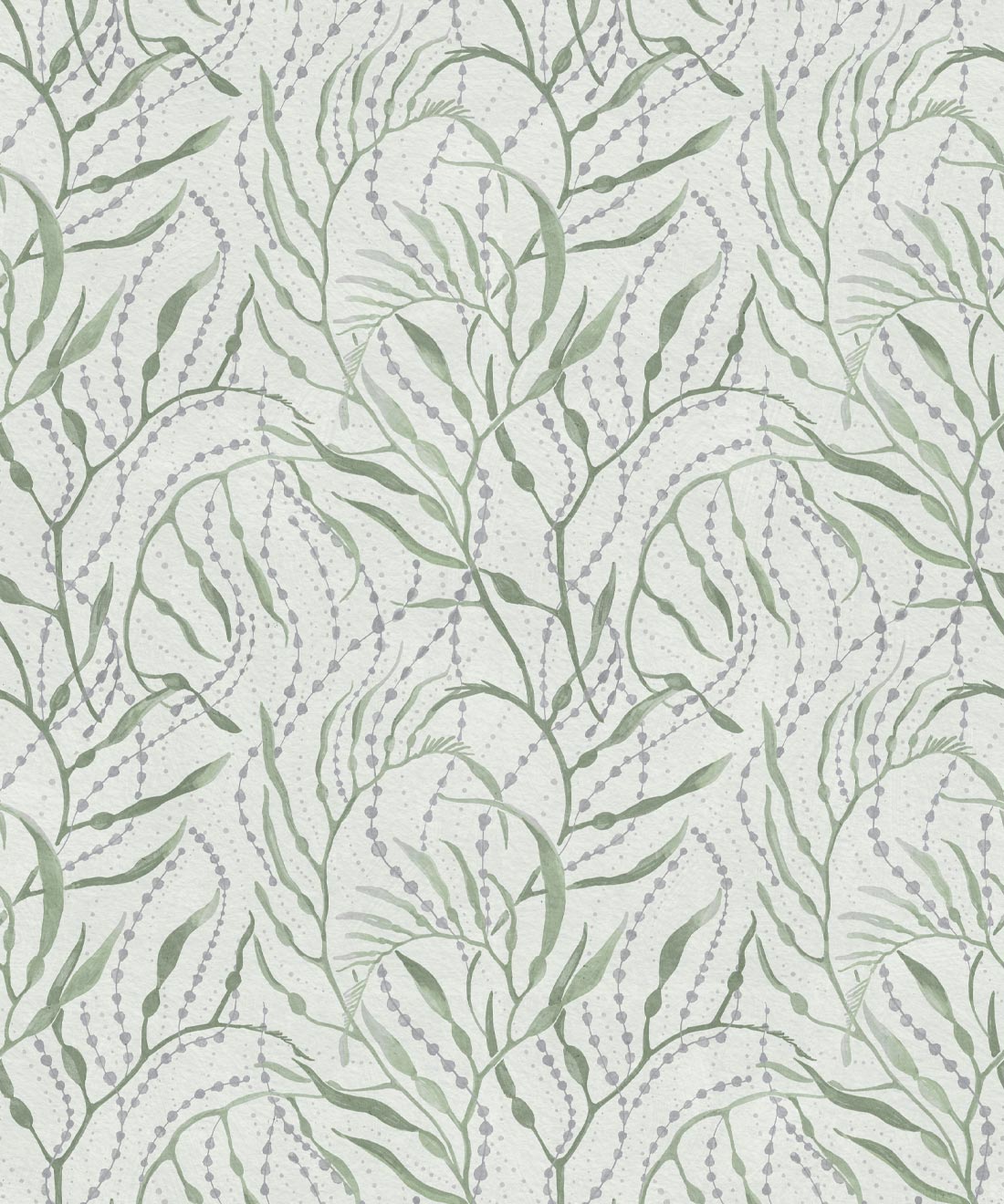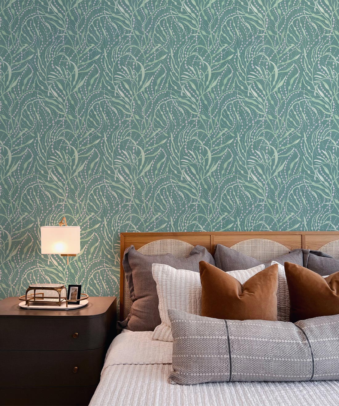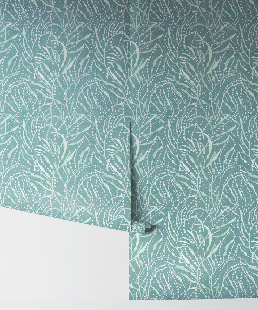 A wonderful name to describe the graceful kelp which grows on the sea bed, Neptune’s Necklace Wallpaper features a design that is constantly flowing. The pattern moves your eyes around its jewel-like shapes. Wonderfully varied in colors, it is both beautiful and functional and works in both small and large settings. It works with neutral home color palettes or certain colors could be drawn from for coordinating fabrics and home decor. It is perfect for bathroom, laundry nook or an adventurous bedroom.