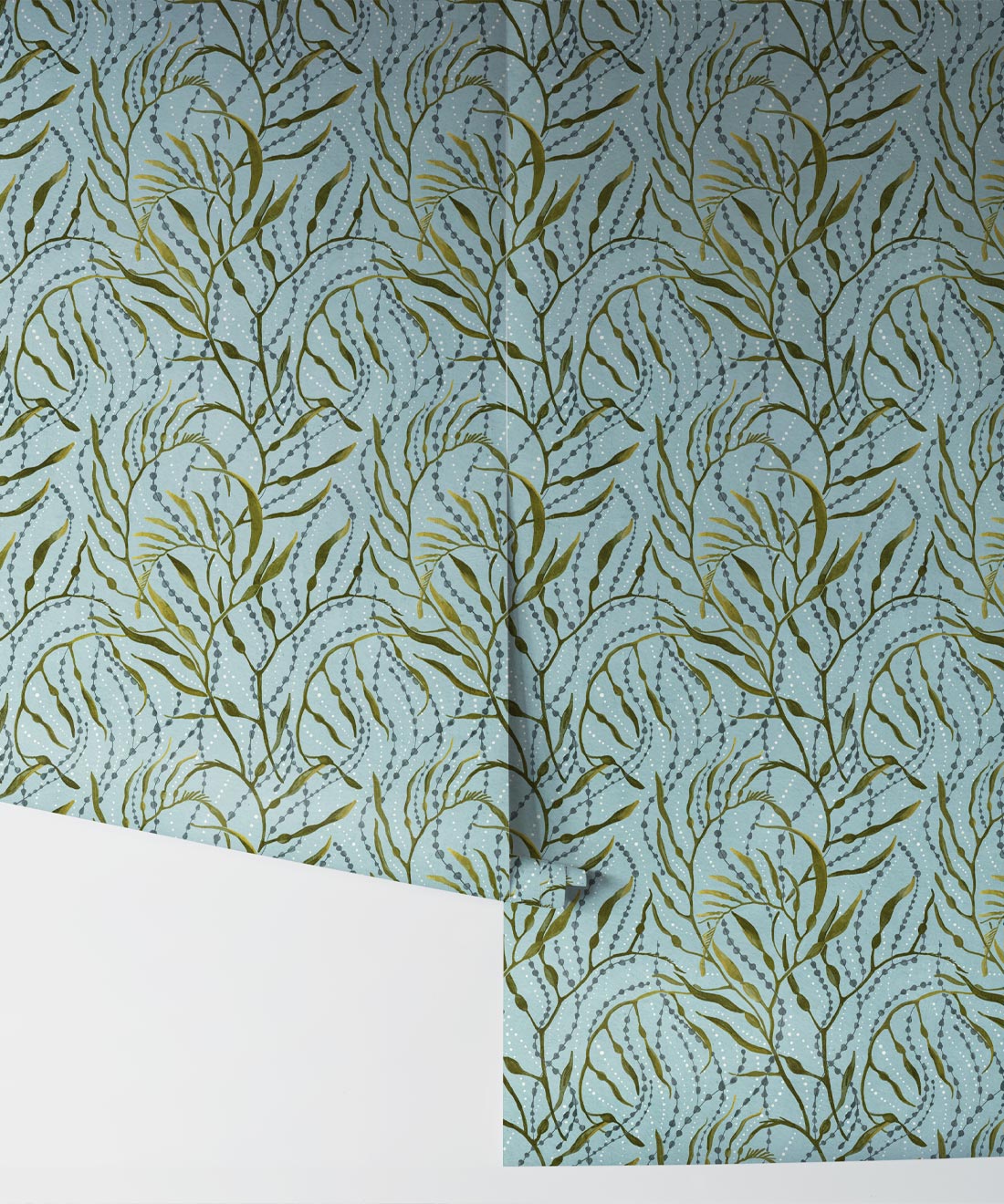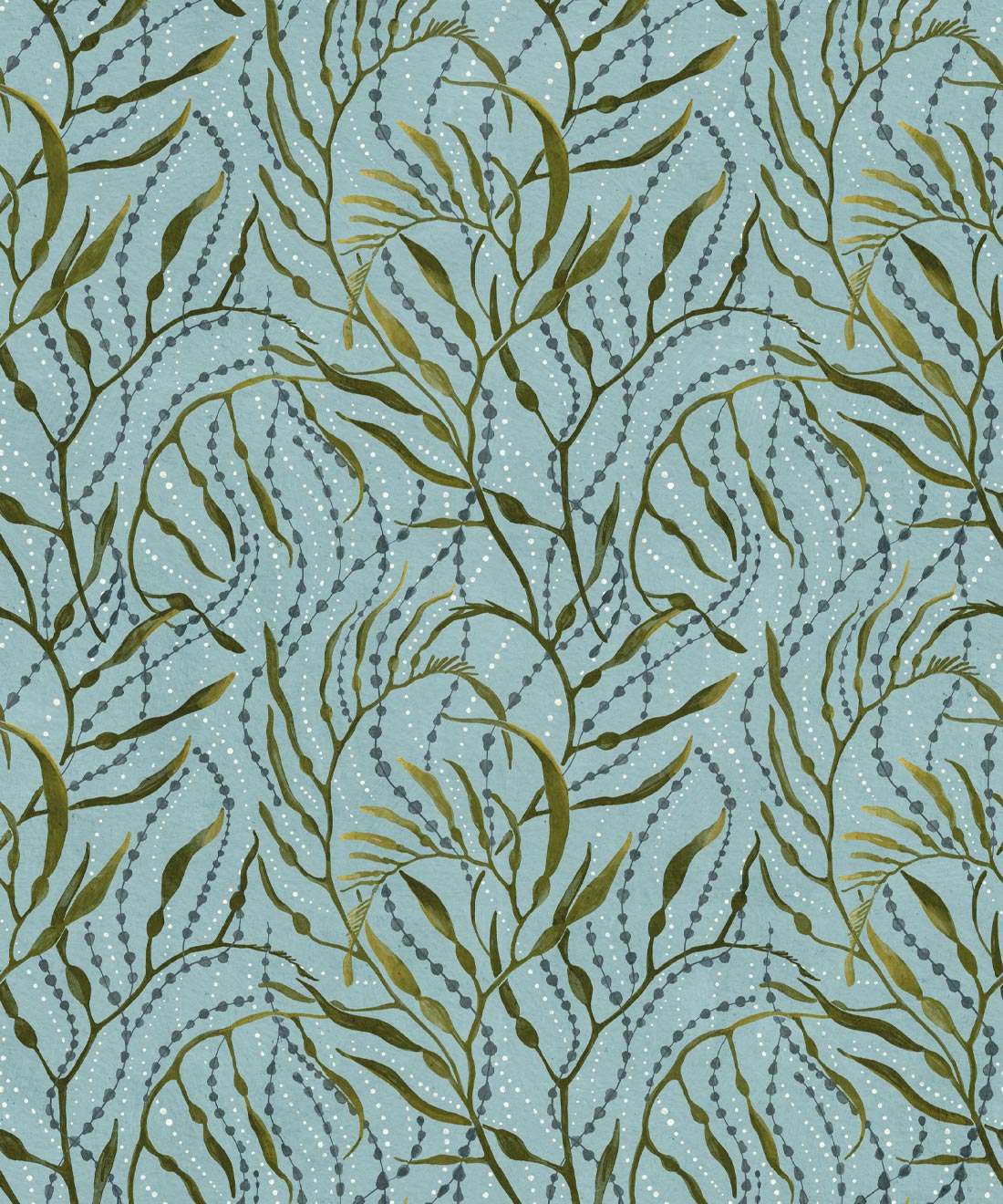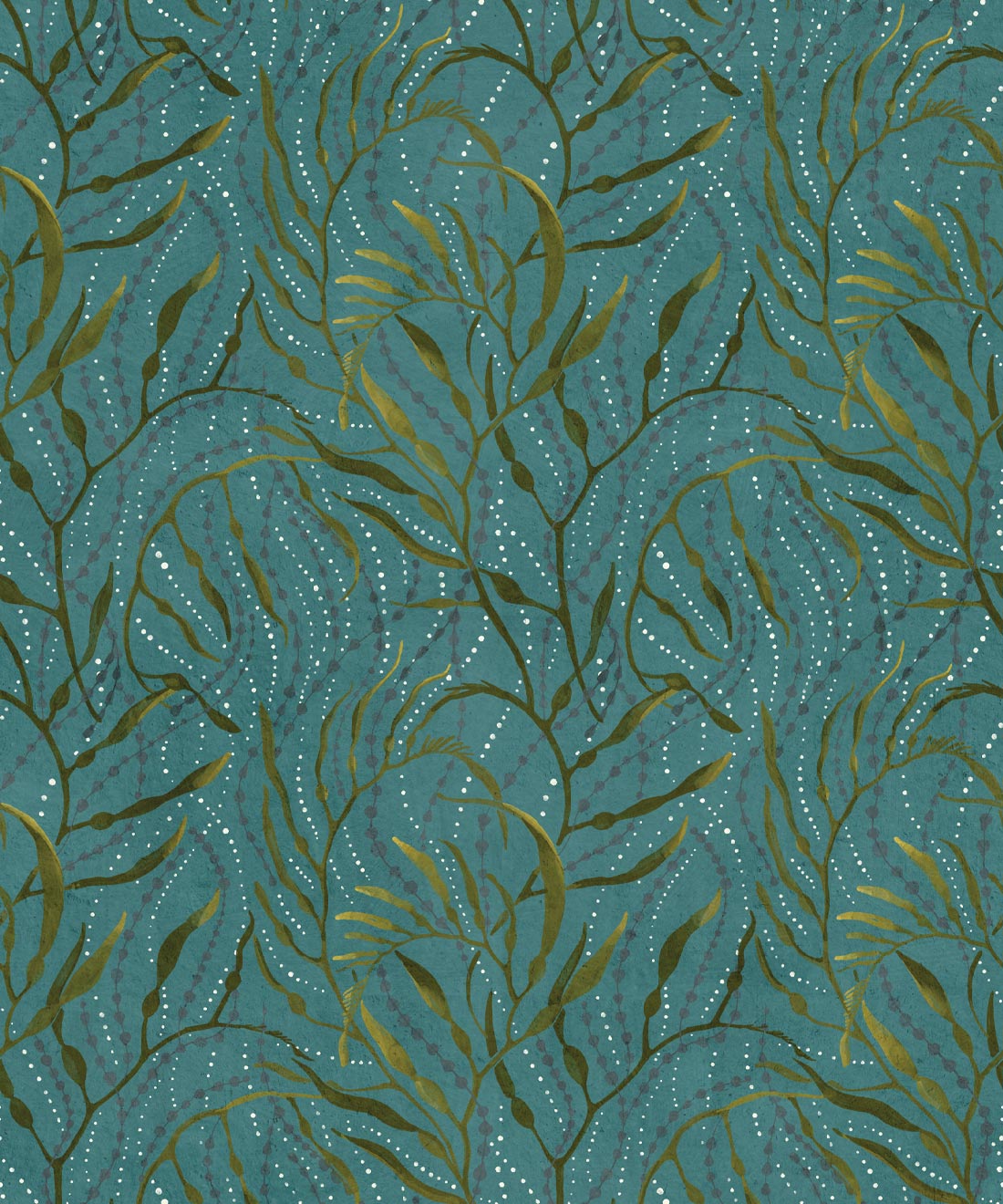 A wonderful name to describe the graceful kelp which grows on the sea bed, Neptune’s Necklace Wallpaper features a design that is constantly flowing. The pattern moves your eyes around its jewel-like shapes. Wonderfully varied in colors, it is both beautiful and functional and works in both small and large settings. It works with neutral home color palettes or certain colors could be drawn from for coordinating fabrics and home decor. It is perfect for bathroom, laundry nook or an adventurous bedroom.